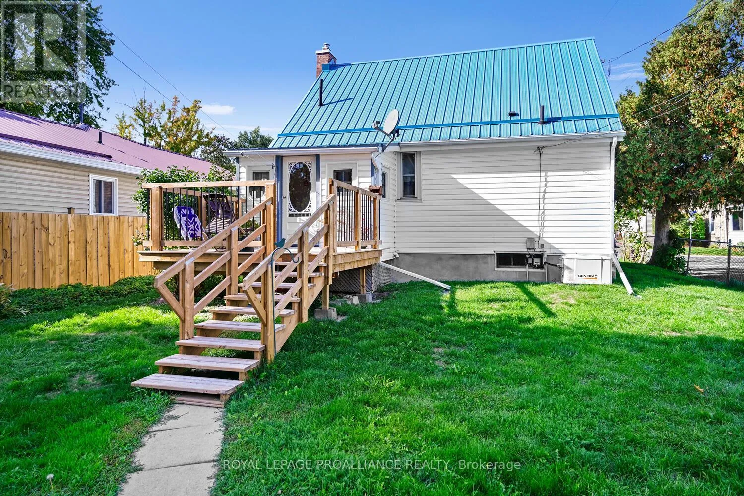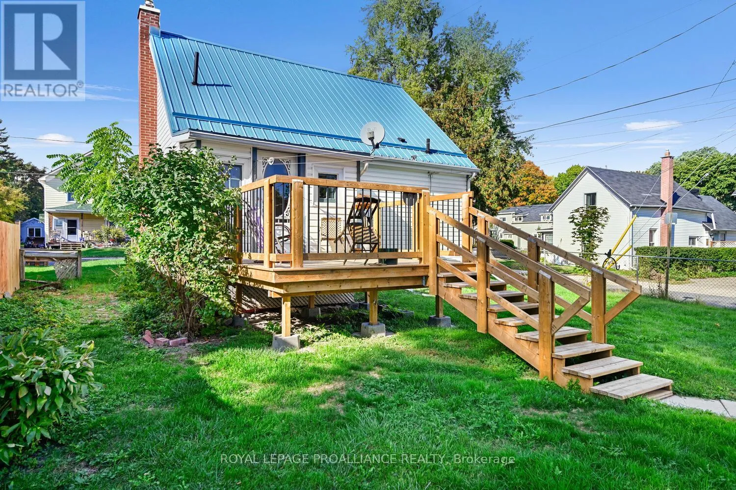 Cross Streets: Bennett. ** Directions: Corner of James East and Bennett Street. OPPORTUNITY TO LIVE IN THE HEART OF BROCKVILLE! DONT MISS THIS AFFORDABLE HOME PERFECT FOR FIRST TIME BUYERS OR THOSE LOOKING TO DOWNSIZE. LOCATED ON DESIRABLE JAMES STREET EAST. THIS CHARMING PROPERTY OFFERS COMFORT, CHARACTER AND CONVENIENCE. THE MAIN FLOOR FEATURES A SPACIOUS LIVING ROOM AND DININD ROOM BOTH WITH WOOD FLOORS. A BRIGHT KITCHEN (APPLIANCES INCLUDED) OPENS TO A 3 SEASON PORCH, LEADING TO A NEWER DECK, REAR YARD AND DETACHED GARAGE. YOULL ALSO FIND A 4 PIECE BATHROOM ON THE MAIN LEVEL. UPSTAIRS THE PRIMARY BEDROOM INCLUDES A FULL WALL OF CLOSETS. THE SECOND BEDROOM HAS ITS OWN 2 PIECE ENSUITE. ADDITIONAL FEATURES: FULL BASEMENT, NEW FURNACE (OCTOBER 2024), METAL ROOF, NEW SEWER PIPE FROM HOUSE TO ROAD 2 YEARS AGO. (id:27476)