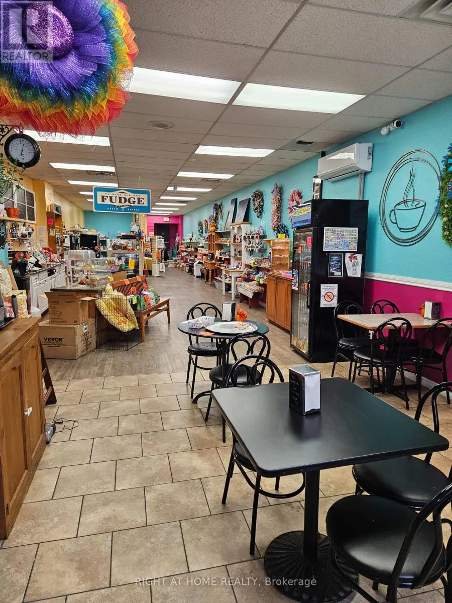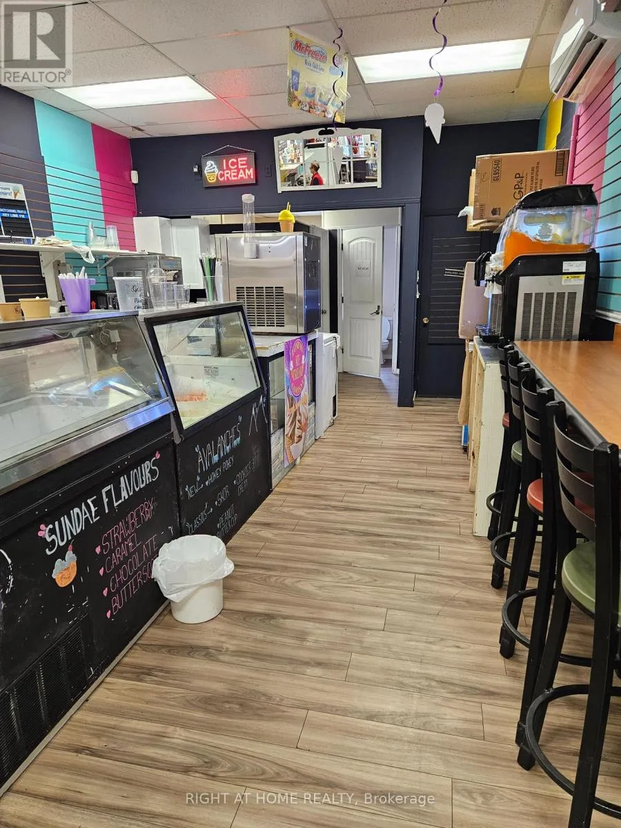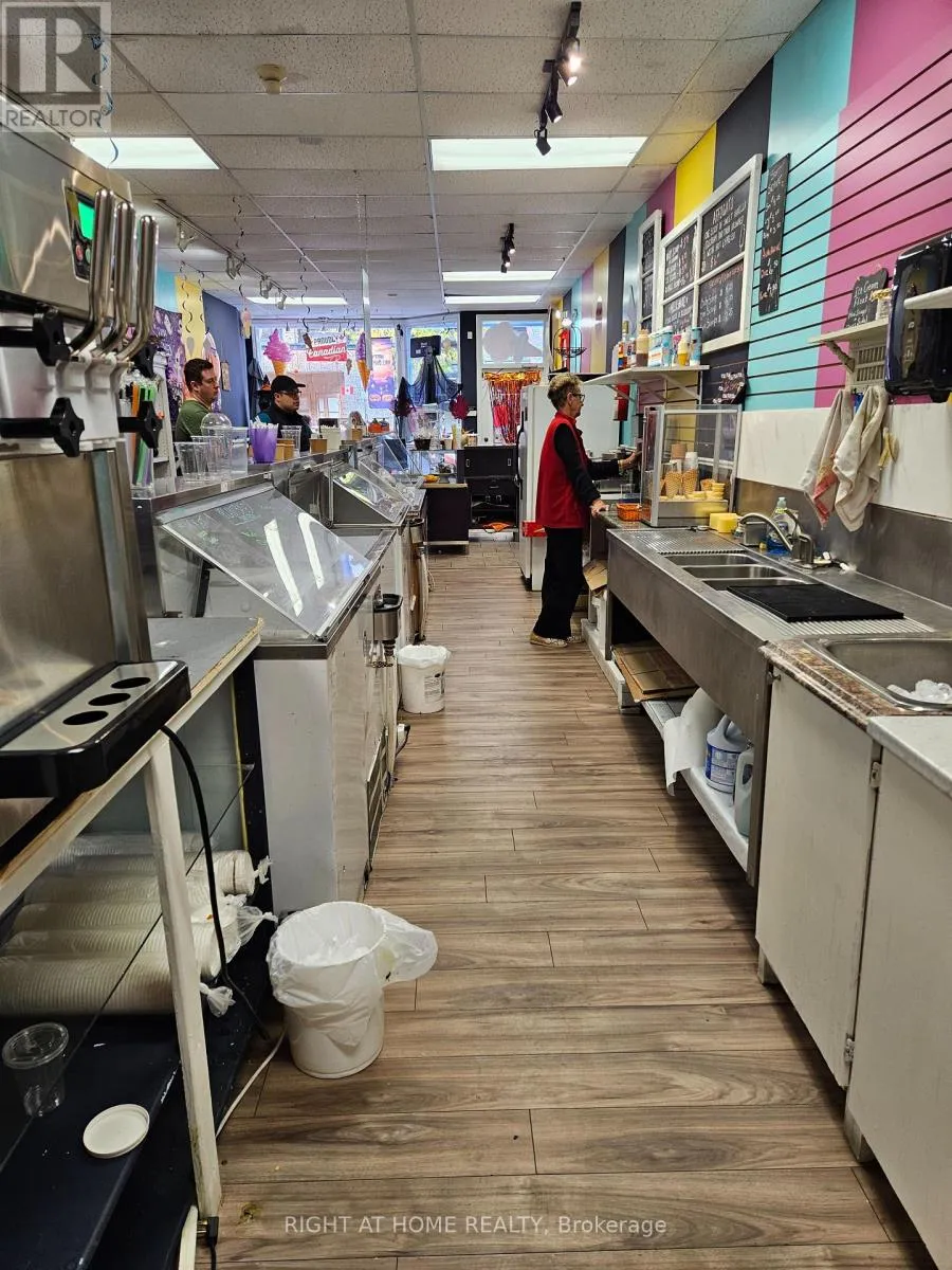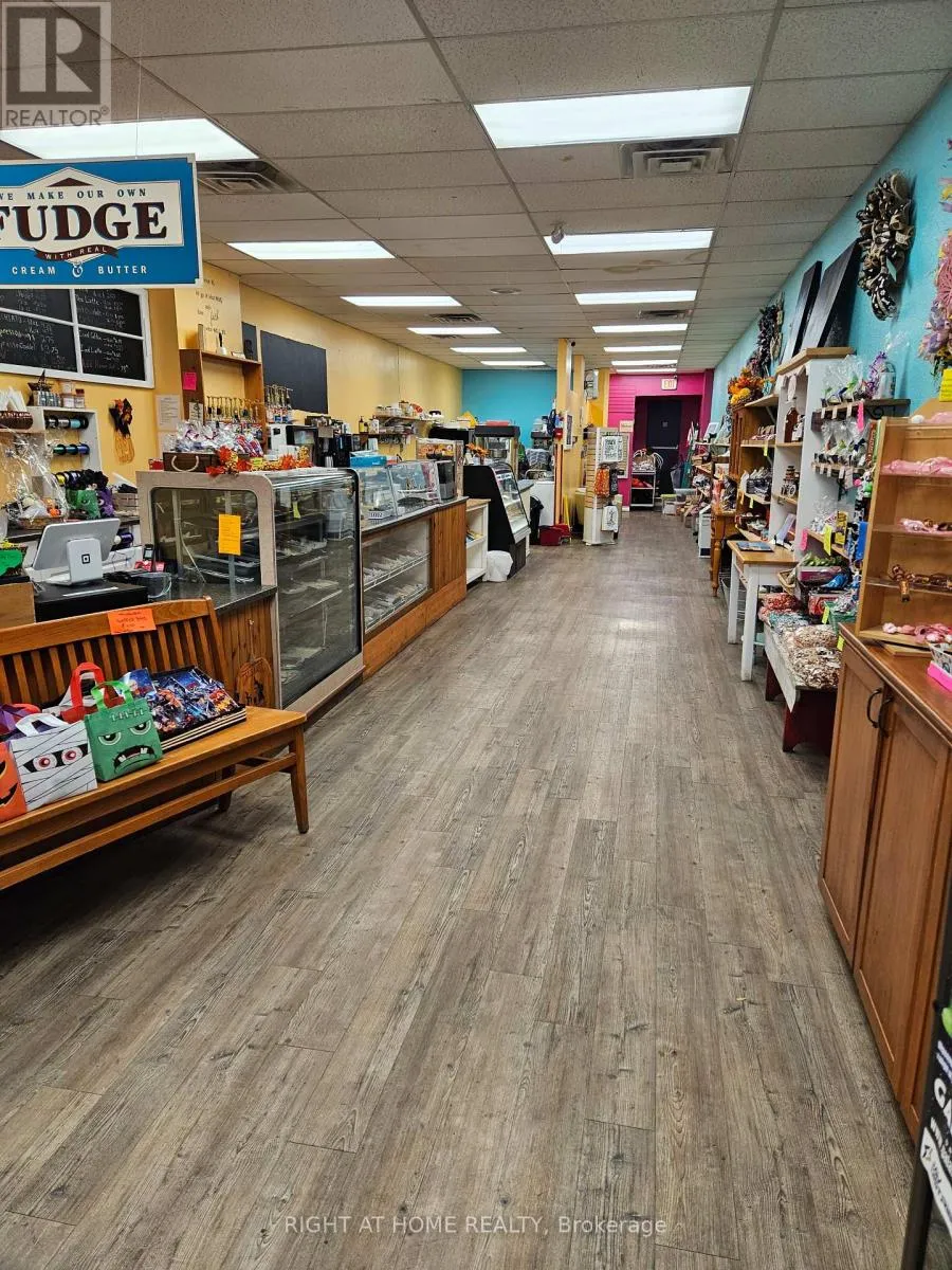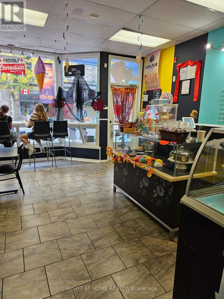 king st and court house Combined Large Space - two side by side units with a walkway between. Excellent bright and spacious retail space (is currently set up as an Ice cream store and a fudgery store). One of the Best locations in the vibrant Downtown. Mechanicals upgraded in 2025 with a new central A/C system and an Additional European A/C system for double the cooling. Three Washrooms (1 downstairs and 2 upstairs) and a separate office area at back with a full kitchenette. Full height storage basement of around 2500 square feet is included (not added to square footage in listing) for a total of up to 5000 square feet main and bellow levels. Great mix with lots of great tenants. Very responsible Landlord and Management company. Many permitted uses. A lot of Leasehold improvement will remain - list is available. (id:27476)