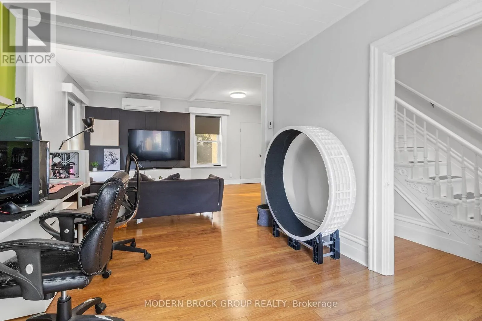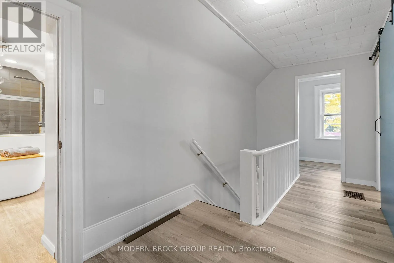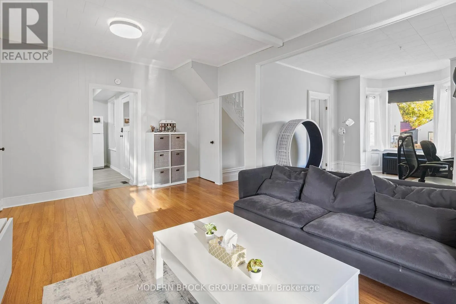 Cross Streets: Perth Street. ** Directions: From 401 head south on Stewart Blvd. Take a right on Central Ave West then a left on Perth Street. Turn right on Havelock Street. Property will be on the right. Welcome to this charming 2-bedroom, 1-bath home in the heart of Brockville, where warmth, character, and comfort come together beautifully. From the moment you step inside, the tall ceilings and bright open spaces make everything feel open, airy, and inviting. The open-concept kitchen and living area is perfect for everyday living - whether you're preparing dinner, hosting friends, or curling up for a quiet evening in. The kitchen combines classic charm with modern practicality, offering plenty of counter space, storage, and natural light. Upstairs, you'll find a thoughtfully designed layout featuring two spacious bedrooms, a dedicated office space, and convenient upstairs laundry, a rare and welcome touch for added functionality. The luxury spa-inspired bathroom is the true showstopper, complete with a walk-in shower featuring dual shower heads and a deep soaker tub, perfect for relaxing after a long day. Outside, the extra-wide landscaped lot offers plenty of space to enjoy. Spend summer afternoons lounging under the gazebo, surrounded by gardens and mature trees, or tend to your raised vegetable beds in the backyard. The oversized garage easily fits a car while still providing ample storage or workshop space. Recent updates include the luxury bathroom renovation, main floor flooring, gazebo installation, garage roof (5 years) and landscaping improvements, ensuring this home is as comfortable as it is charming. The gas water heater is owned, offering efficiency and peace of mind. With its sunroom and mudroom, seamless indoor-outdoor flow, and central Brockville location close to parks, schools, and shopping, this is more than just a house. It's a place to slow down, connect, and truly feel at home. (id:27476)
