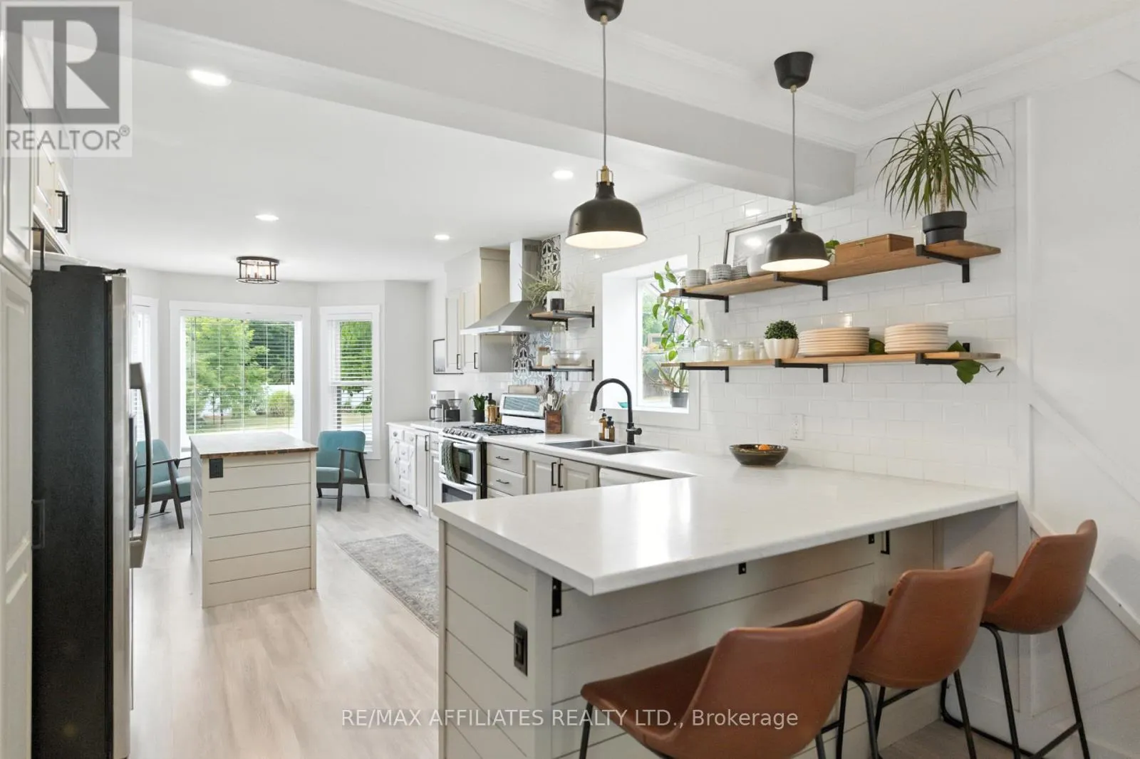 Cross Streets: Centre St & King St. ** Directions: From HWY 401 - Take Stewart Blvd. Turn left on right onto Central. Left onto Perth. Right onto Brock St. Left onto Centre and Right onto Baxter. House will be on your left hand side. This stunning white all-brick 2-storey home with timeless black accents blends contemporary upgrades with timeless charm. Located in Brockville's sought-after southwest end, you will enjoy a peaceful neighbourhood just steps from the Brockville Country Clubs 18-hole golf course, scenic St. Lawrence Park, and the city's vibrant downtown shops, dining, and waterfront. The bright, open-concept living and dining space is anchored by a cozy natural gas fireplace, setting the perfect mood for relaxed evenings or lively gatherings. The chef-inspired kitchen is a showstopper, with a central island and breakfast bar, a dual-fuel gas/electric range with a double oven, dishwasher, and fridge everything you need to whip up culinary magic.The homes 4-season heated solarium is the ultimate bonus space whether its coffee with sunrise views or cozy winter nights under the stars and it opens directly onto a backyard deck made for entertaining. A stylish 2-piece powder room rounds out the main floor. Upstairs, the primary suite feels like your private retreat, complete with a walk-in closet and a sleek ensuite with a spa-worthy shower. Two additional bedrooms and a 4-piece bath with a jetted tub offer comfort and flexibility for family or guests. Need more space? The finished basement delivers perfect for a family room, home office, or gym. Outside, pride of ownership shines. The fully landscaped backyard is your personal oasis, with brick patios, walkways, and new 6-ft PVC fencing creating a private, low-maintenance retreat. With numerous updates, including new patio and deck (2023), fresh landscaping and walkway (2023), 8x16 shed/lean-to (2024), finished basement, updated stairs (2025), fresh paint (2025), bathroom reno's (2024/2025), plus a roof (~10 yrs) and furnace (2013) this home is as turnkey as they come.This isn't just another house this is the home that changes everything. The only question is: will you be the one to call it yours? (id:27476)