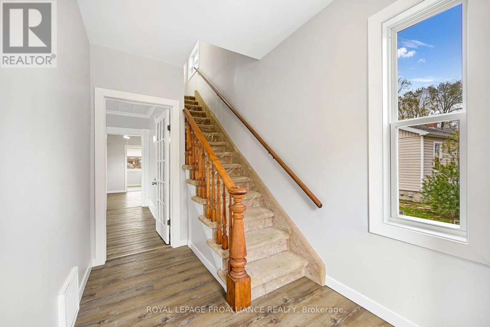 Cross Streets: Bennett Street & Byng Avenue. ** Directions: Take Exit 698 and turn left at light and left at next light, you will head over 401 overpass and Train overpass till you come to King Street, turn right at stop sign and Bennett is the 2nd Street on the right and house is on left hand side #38. Welcome to 38 Bennett, a bright and beautifully maintained 1,800+ sq. ft. two-storey home featuring tall ceilings, 3 bedrooms, 1.5 baths, and a detached single-car garage/workshop. Ideally located just a short walk from Brockville's waterfront, shops, and restaurants, this home offers exceptional comfort and convenience. Step into the spacious front foyer, which opens into an oversized living room that flows naturally into the dining room-perfect for family living or entertaining guests. From the dining room, continue into the large eat-in kitchen, beyond which you'll also find the main-floor laundry and an updated 2-piece bath. The second level hosts the primary bedroom, two additional bedrooms, and a refreshed 4-piece bathroom. The home also benefits from a new electrical panel and the addition of a heat pump, providing efficient heating support and reliable cooling throughout the warmer months. Outside, the fenced backyard includes a cozy deck positioned to enjoy the afternoon sun. The paved driveway offers parking for up to four vehicles, adding great practical value. With numerous updates-too many to list-and clear pride of ownership inside and out, 38 Bennett is truly a must-see. Pre-inspection and a comprehensive list of updates are available upon request. Come discover the charm and care that define this wonderful home! (id:27476)