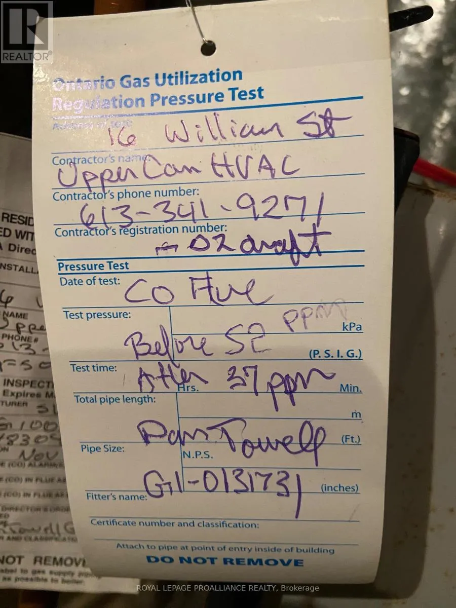 Cross Streets: James St W & Jail St. ** Directions: FROM 401 HWY, DRIVE SOUTH ON STEWART BLVD, CONTINUE TO WILLIAM ST #16 ON WEST SIDE. This well cared for 2 storey duplex has been owned since 1997 and Seller has updated with new windows & new roof shingles, approx 10 years ago, mostly original hardwood floors in excellent condition. The kitchen on upper level was redone approx 5 years ago. There are separate meters for gas heat, hydro & water, 2 100amp electric breaker panels, 2 gas boilers, 2 gas water heaters, all owned. Each unit has 2 bedrooms, 4 piece bath, living room with decorative fireplace, dining room, kitchen with separate exterior access, the upper level also has a small bonus room/office. There is a washer & dryer in the basement, accessible to both units. 2 refrigerators, 2 electric ranges. The double garage has electric power, 2 separate doors plus man door. Located in easy walking distance to downtown. Fire suppression sprinkler system in basement. Recently added 3 smoke sensors, 3 heat sensors, hard wired CO2 sensor, 5 water sensors. 24 hours irrevocable required. (id:27476)