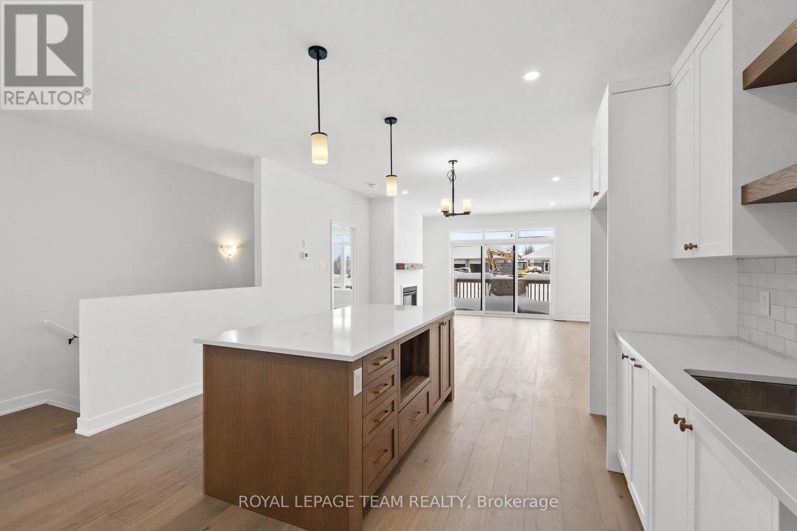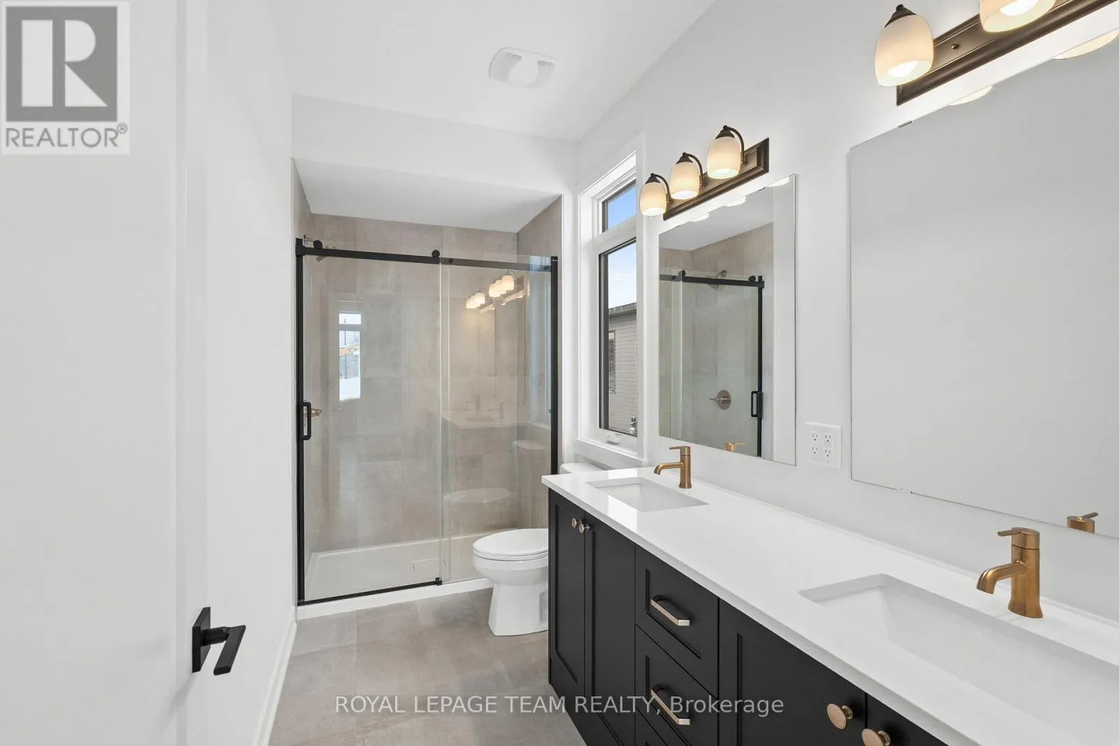 Cross Streets: Shearer Drive. ** Directions: From Shearer Drive, turn onto Dobbie Street. Turn onto Moore Street, 1051 Moore Street, Lot 124 A. Welcome to Stirling Meadows in Brockville. This newly built semi-detached Grenville model by Mackie Homes offers approximately 1,580 square feet of thoughtfully designed living space. With three bedrooms, two bathrooms, convenient main-level laundry, and a single-car garage with interior access, this home combines style and functionality. A covered front porch invites you inside to a bright, open concept layout where the kitchen, dining area, and living room flow seamlessly. The kitchen features white cabinetry with a warm wood centre island, open shelving accents, quartz countertops, a tile backsplash, and a pantry for extra storage. The spacious centre island serves as a natural gathering spot. The living room is enhanced by a natural gas fireplace and provides access to the sun deck, ideal for outdoor entertaining or relaxing. The primary bedroom includes a walk-in closet and a four-piece ensuite with a dual-sink vanity. Two additional bedrooms and a full bathroom complete the main-level layout. Set near shopping, dining, and recreational amenities, with quick access to Highway 401, this home blends modern style with everyday practicality. (id:27476)