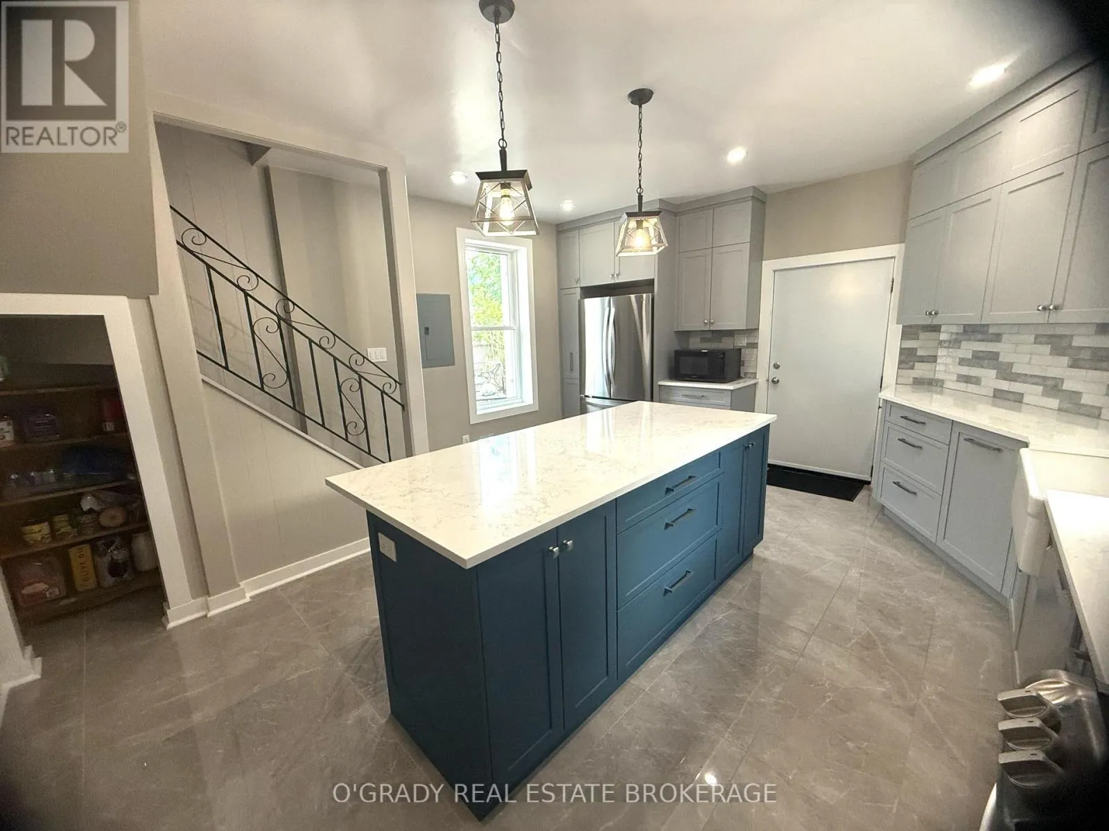 Cross Streets: King Street. ** Directions: Hwy 401 to exit 698- north Augusta road south to King street- turn right. Continue to Apple Street on left. Property on right hand side. Situated just a block from the picturesque St.Lawrence River and the vibrant downtown core, this remarkable 1834 heritage residence perfectly marries historic elegance with modern amenities. The property consists of the main house at the front (offered for rent in this listing) and a separate 1,000 square foot plus coach house in the rear (already tenanted). The 2450 square foot main house showcases 3 + 1 generously sized bedrooms with soaring 10 foot ceilings throughout. Oversized vinyl windows, new luxury SPC vinyl flooring on both floors, beautifully complemented by a fully renovated kitchen with stainless steel appliances and porcelain flooring. 2 full bathrooms on the upper floor, plus a half bathroom on the main floor, and laundry room on the upper floor. A shared fully-paved courtyard between the main house and coach houseprovides 1 parking space and small gardening area. The main house is available for lease at $4000 a month plus utilities. (id:27476)