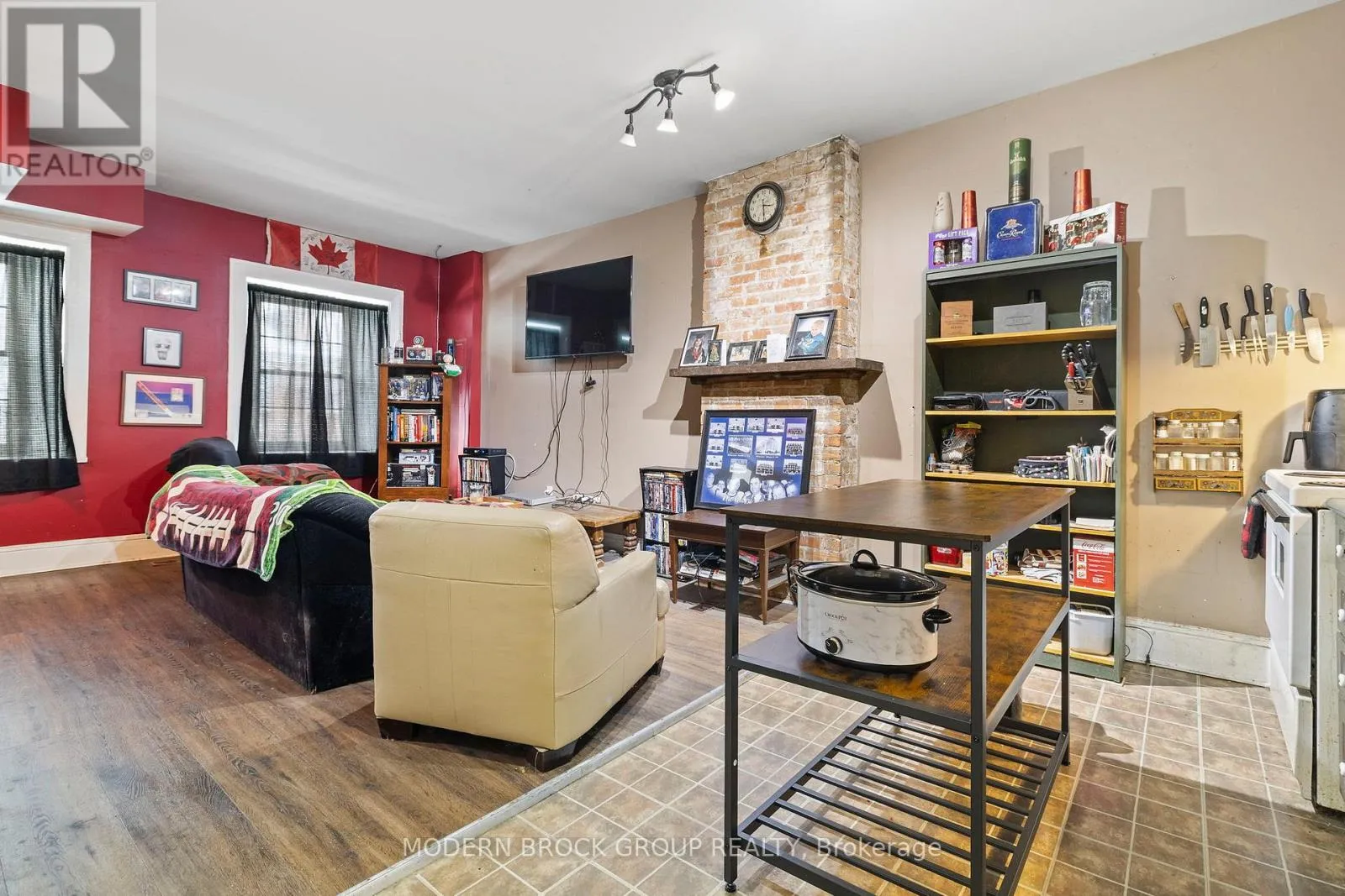 Cross Streets: Church Street. ** Directions: Take Exit 696 and go south onto Stewart Blvd then right on Central Ave. Go left onto Perth Street. Lot behind building for parking accessible via Church street. Centrally located mixed-use property offering flexible main-floor space suitable for commercial or residential use, paired with an upper-level residential unit. The main floor features a kitchen and three-piece bathroom, allowing for a variety of potential configurations depending on buyer needs. The layout provides functional separation between living and work areas, with character elements throughout. The main floor space is currently connected to the adjoining unit at 33 Perth Street, allowing for an expanded footprint if purchased together, or it can be closed off and operated independently. The second floor unit is a tenanted residential apartment, providing consistent rental income. This unit offers a practical layout with defined living areas, kitchen, bathroom, and bedroom space. The property includes rear access via Church Street, along with two parking spaces located in the lot behind the building. Positioned steps from shops, restaurants, and waterfront amenities, 35 Perth Street benefits from strong pedestrian exposure while maintaining the enduring appeal of Brockville's historic stone and brick architecture. (id:27476)