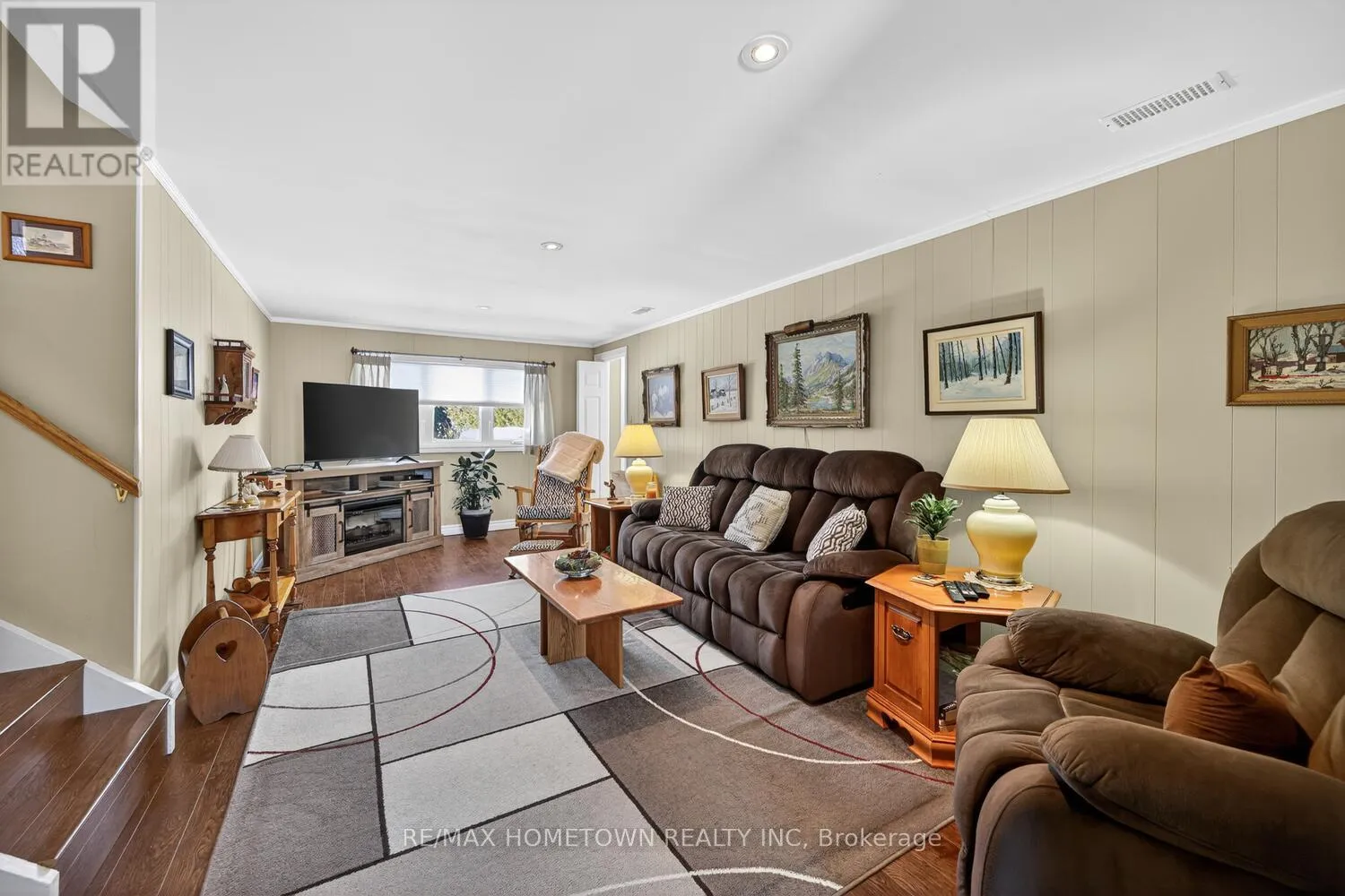 Cross Streets: King st. East. ** Directions: South from 401 on North Augusta Rd. East on King st. to Hardy Cres. Welcome to this prestigious downtown residence, ideally located within walking distance of the St. Lawrence River. Enter through a spacious foyer into a warm, cozy family room with direct access to the garage, backyard and convenient 2-piece bath - ideal for everyday living. The main floor flows into elegant formal living and dining rooms showcasing beautiful hardwood floors and abundant natural light. The updated, family-sized kitchen is practical and inviting, while the stunning sunroom provides a bright year-round retreat where even winter days feel like spring. Upstairs you'll find three well-proportioned bedrooms, including a large primary with a private 2-piece ensuite, plus a four-piece main bathroom. The lower level offers a fourth bedroom and flexible rooms that work perfectly as craft spaces, home offices or a playroom. Outside, wonderfully landscaped yards create an easy-care oasis with plenty of space for BBQs and family gatherings. This home blends classic charm with modern comfort - a rare find in a highly desirable location. (id:27476)