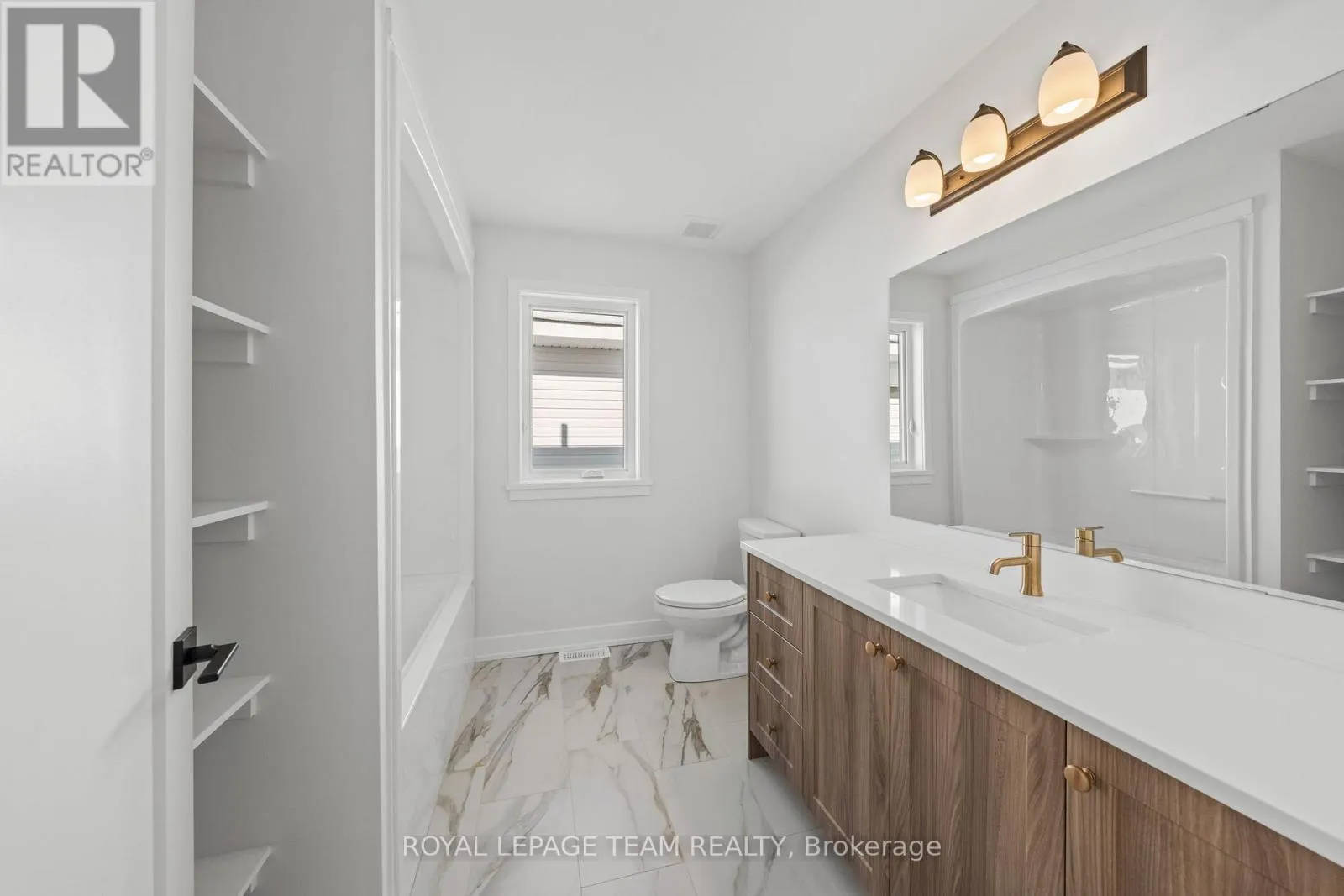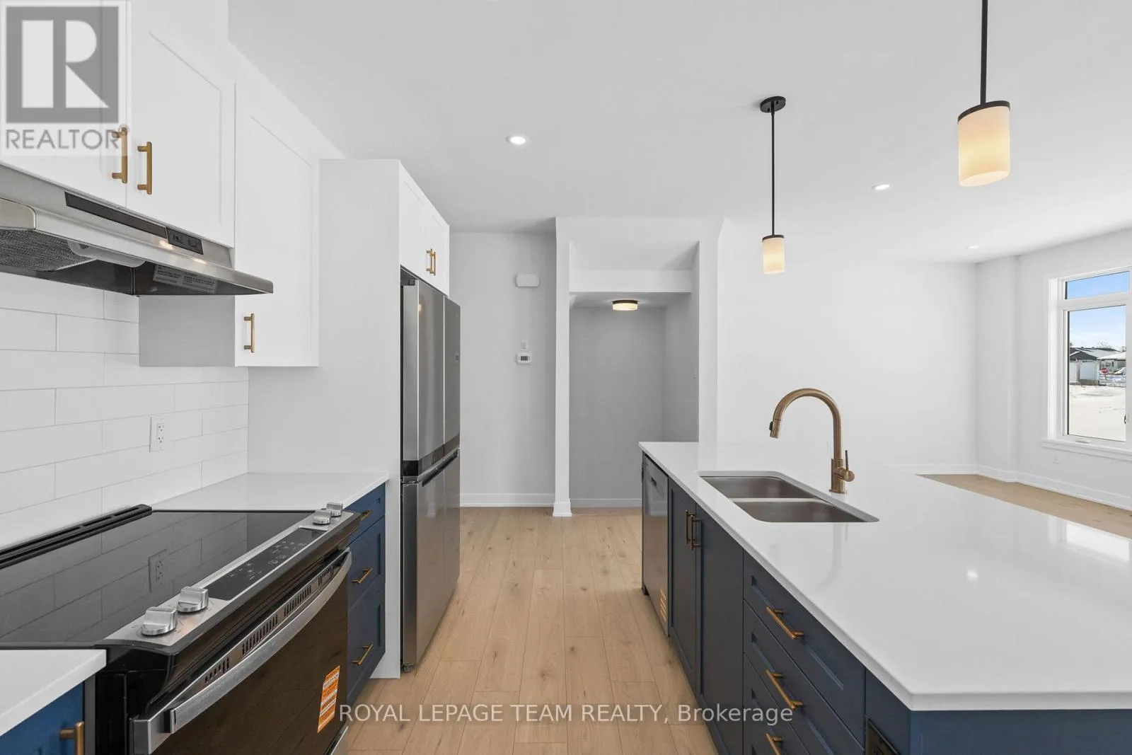Cross Streets: Shearer Drive. ** Directions: From Shearer Drive, turn onto Dobbie Street. Turn onto Moore Street. 1020 Moore Street, Lot 151 B. Welcome to 1020 Moore Street. This newly built semi-detached home is ideally located in Stirling Meadows, Brockville, offering convenient access to Highway 401 as well as nearby shopping and everyday amenities. The Thornbury 4 Bedroom Model by Mackie Homes provides approximately 1,868 square feet of thoughtfully designed living space, highlighted by quality craftsmanship and contemporary finishes throughout. The main level is bright and filled with natural light, with clear sightlines that create a comfortable and connected layout. From the living and dining area, step outside to the deck and backyard, offering an inviting setting for relaxing or entertaining. The kitchen combines style and practicality with quartz countertops, a convenient pantry, and a centre island well suited for gathering. A powder room and interior access to the oversized single garage complete the main level. Upstairs, the primary bedroom features dual closets and a private ensuite bathroom. Three additional bedrooms, a full bathroom, and a dedicated laundry room complete the second level. (id:27476)