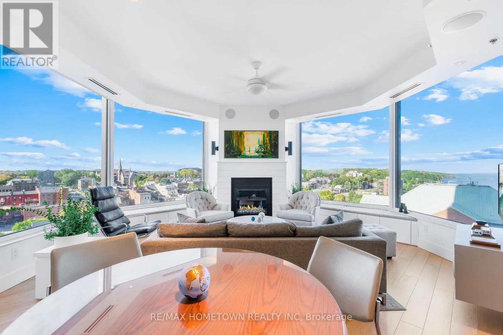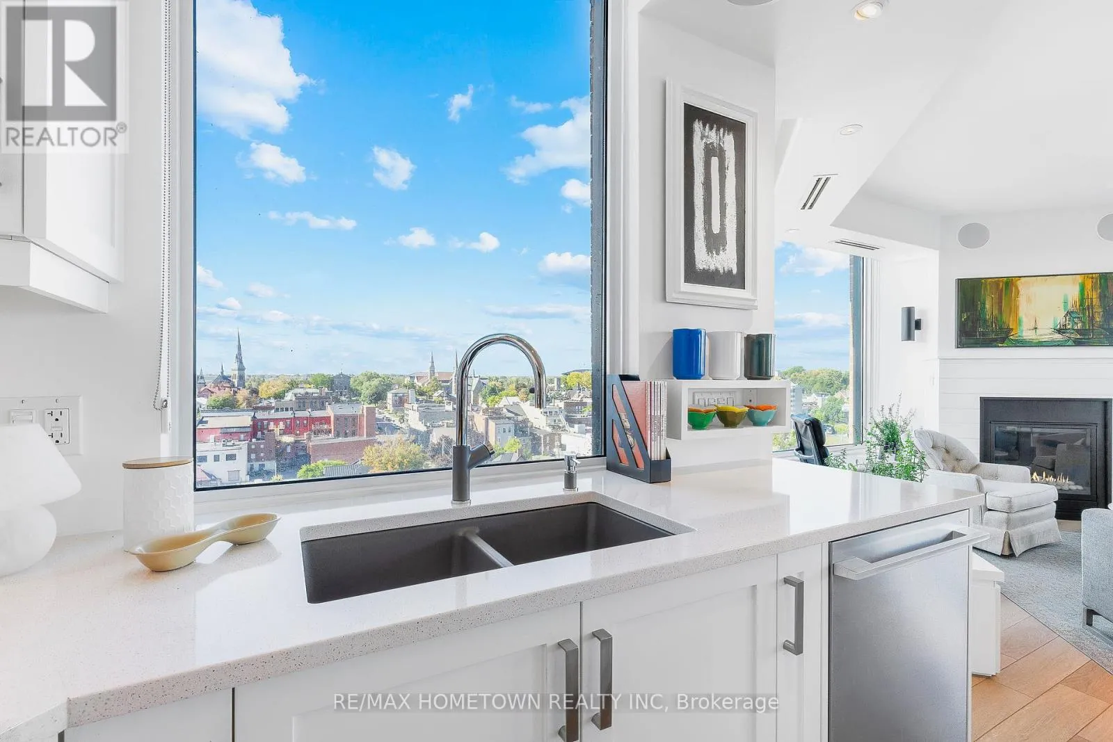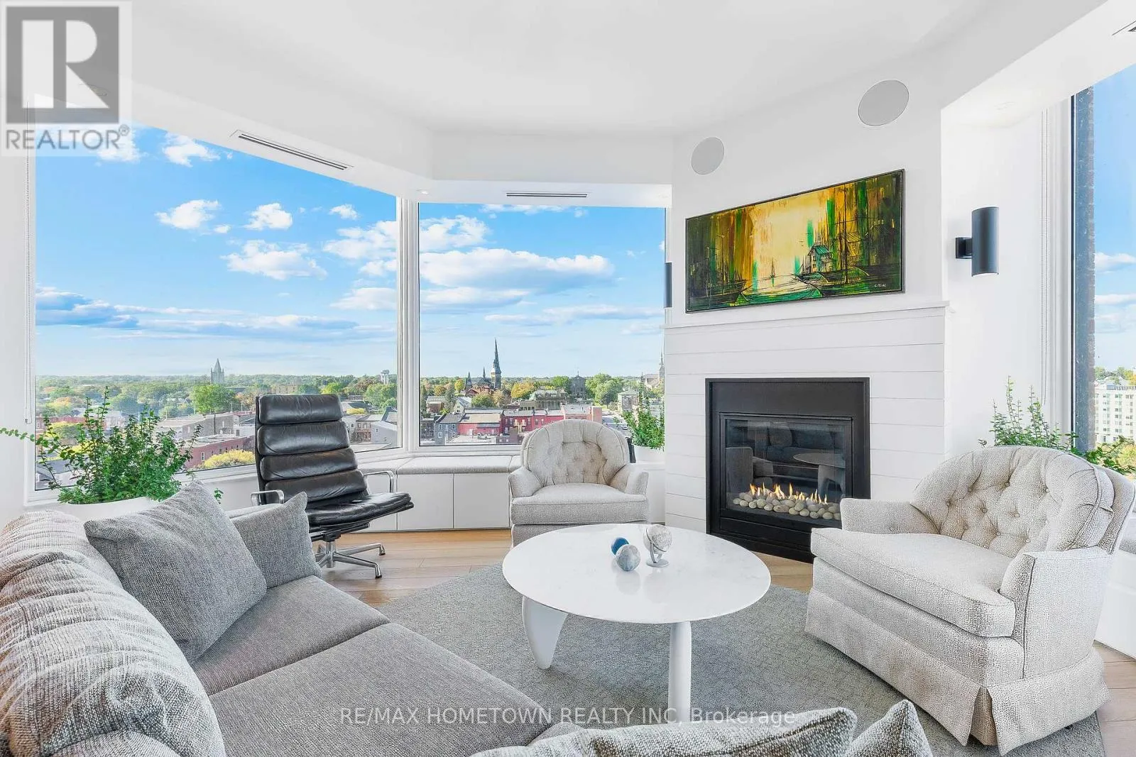 Cross Streets: Water and St. Andrew St. ** Directions: From Highway 401 take Stewart Blvd exit and travel south to King St. Continue South on Broad St. to Tall Ships Landing. Parking off of Flint St. Suite 1205 at Tall Ships Landing offers elevated riverfront living in the heart of the 1000 Islands. This 1,161 sq. ft., two-bedroom, two-bath, North-East corner residence, with it's additional 105 sq. ft. private terrace, offers sweeping 270-degree views of the St. Lawrence River, passing ships, and Brockville's historic skyline through the huge floor to ceiling picture windows in its octagonal great room. Experience sunrise and sunset in the same room, every day. Renovated in 2021, this refined suite features custom millwork, window seating, integrated lighting and audio in every room, and a jacuzzi tub in the ensuite positioned to provide a view 20 miles down the St. Lawrence River. Gas for the terrace BBQ and the great room fireplace is included in the maintenance fee. Residents enjoy resort-style amenities including indoor and outdoor pools, hot tub, sauna, gym, games and party rooms, coffee bar, outdoor terraces, preferred Guest Suite rental rates, marina access, on-site dining, retail and more. One premium parking space with an owned EV charging station, 2 storage lockers, 2 wall bike racks and height allowance for overhead pully canoe/kayak storage is available for $39,900 (id:27476)