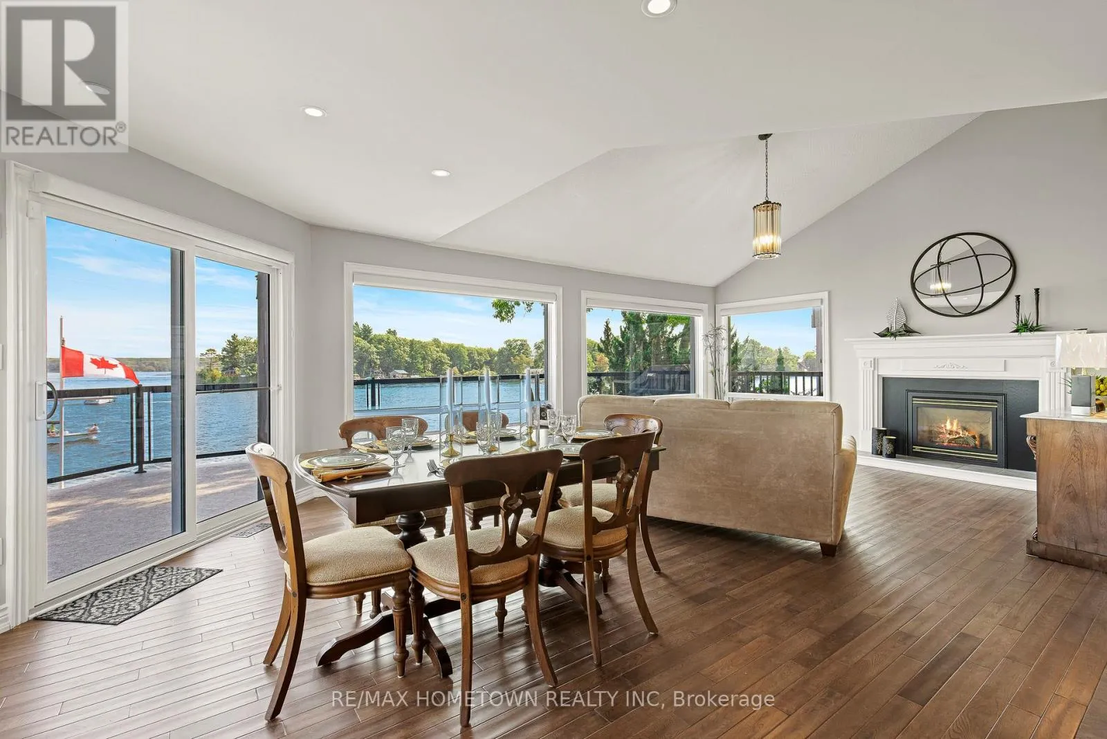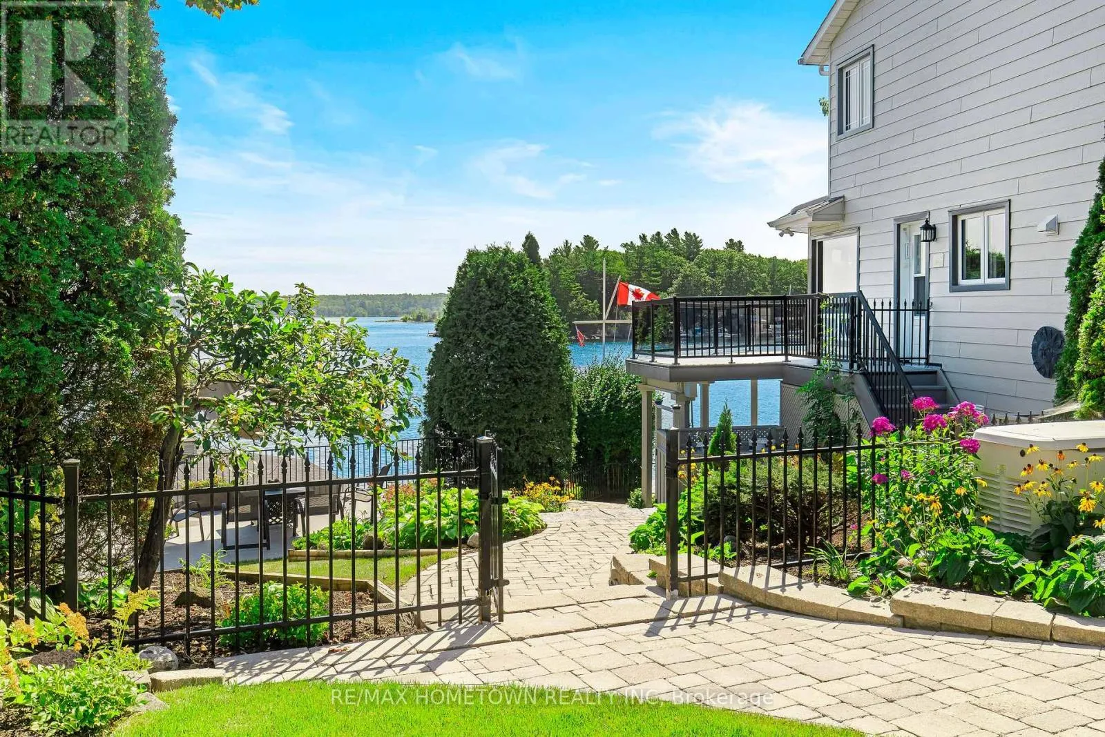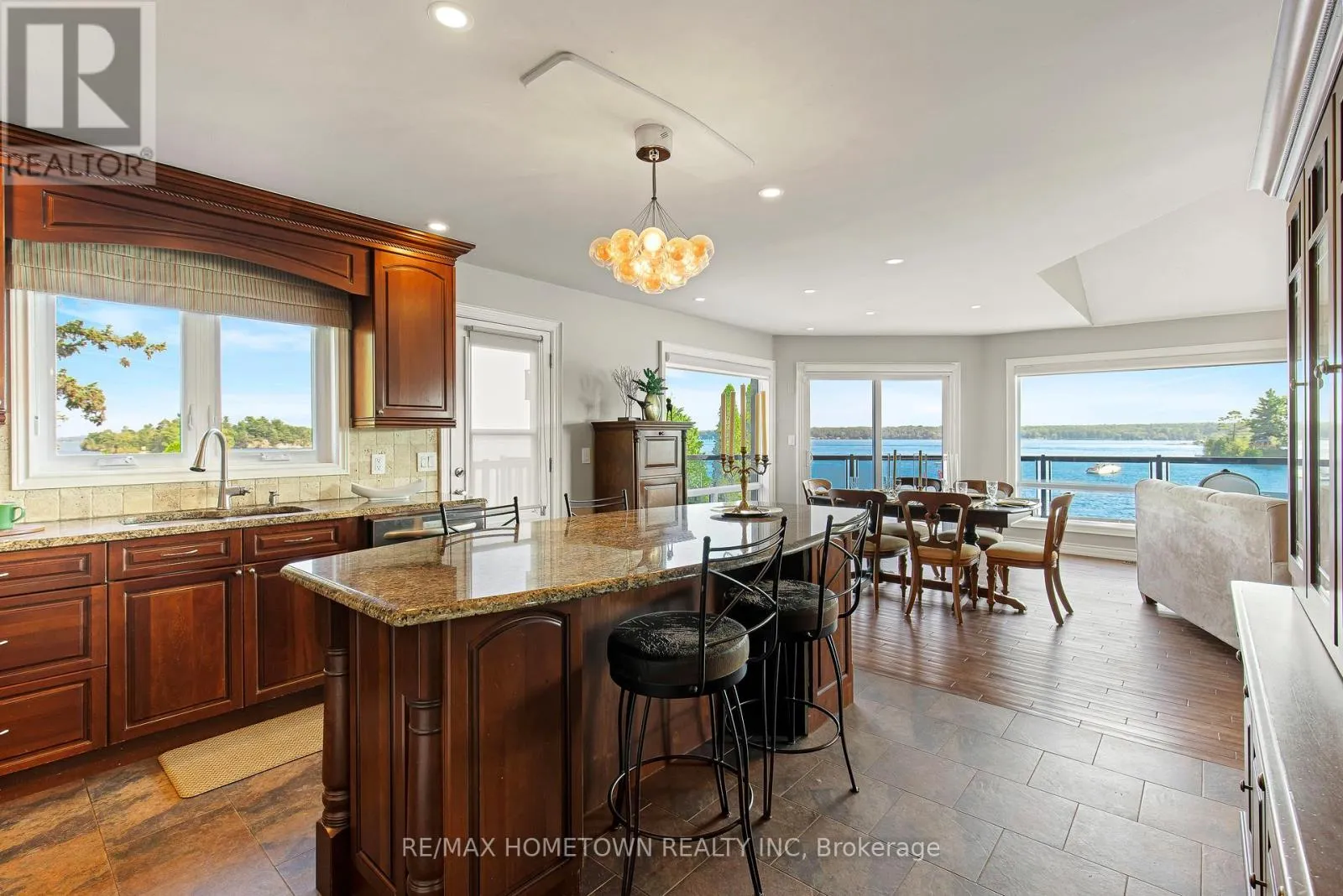 King St. W., south onto the westerly entrance to Bayview Rd., pass thru the sign indicating private road and the property is signed and on the riverside. Located within the City of Brockville, yet offering the privacy of a riverfront retreat, 9 Bayview Road provides front-row views of the great ships navigating the world-renowned St. Lawrence Seaway. Just minutes from downtown Brockville, yet worlds away in its waterfront serenity. Life on the St. Lawrence River offers a rhythm and beauty that changes with every season, and this exceptional waterfront property captures it perfectly. Set among dramatic rock outcroppings and beautifully maintained gardens, the home blends natural landscape with thoughtfully designed living. A wall of south-facing windows fills the interior with natural light while framing sweeping panoramic vistas across the river. From the balcony or covered deck, watch international freighters glide past your shoreline, a remarkable spectacle found in only a select few waterfront locations in the world. Outdoor living is effortless with walkout access to the river, easy docking from a Kehoe dock, and a SeaDoo lift with storage facility ready for summer adventures. Spring brings fresh colour to the gardens and lively river activity, while summer invites boating, swimming, and waterfront gatherings. Autumn sunsets and peaceful winter scenes ensure beauty in every season. With private road access and guest parking on Bayview Road, this is a rare opportunity to own an exceptional city waterfront home on the St. Lawrence River. (id:27476)