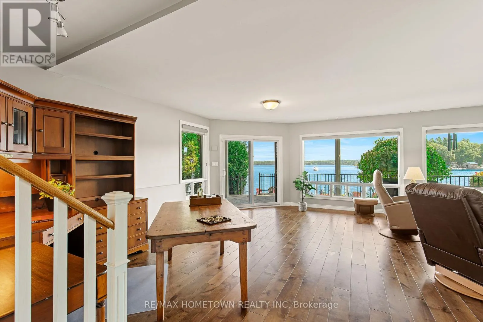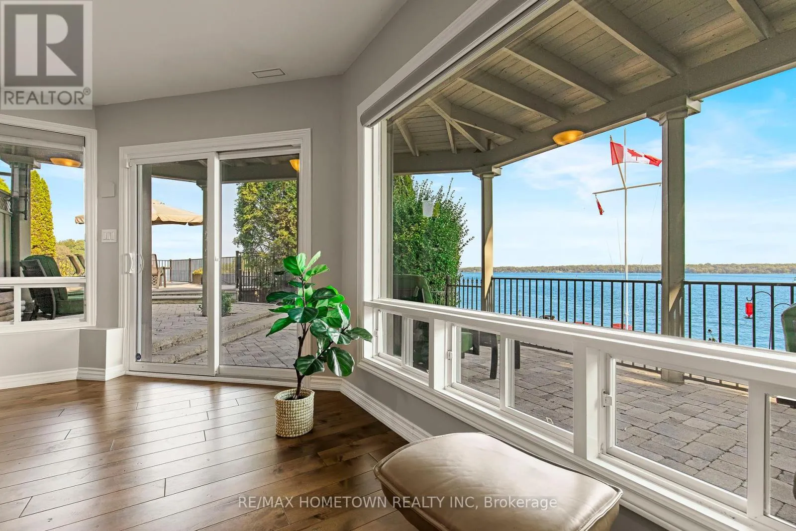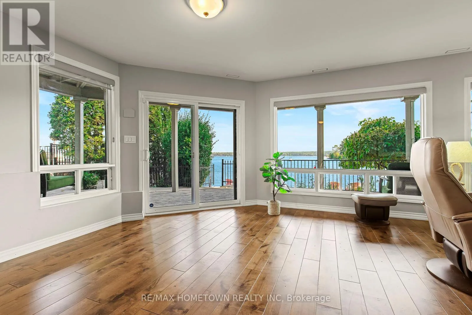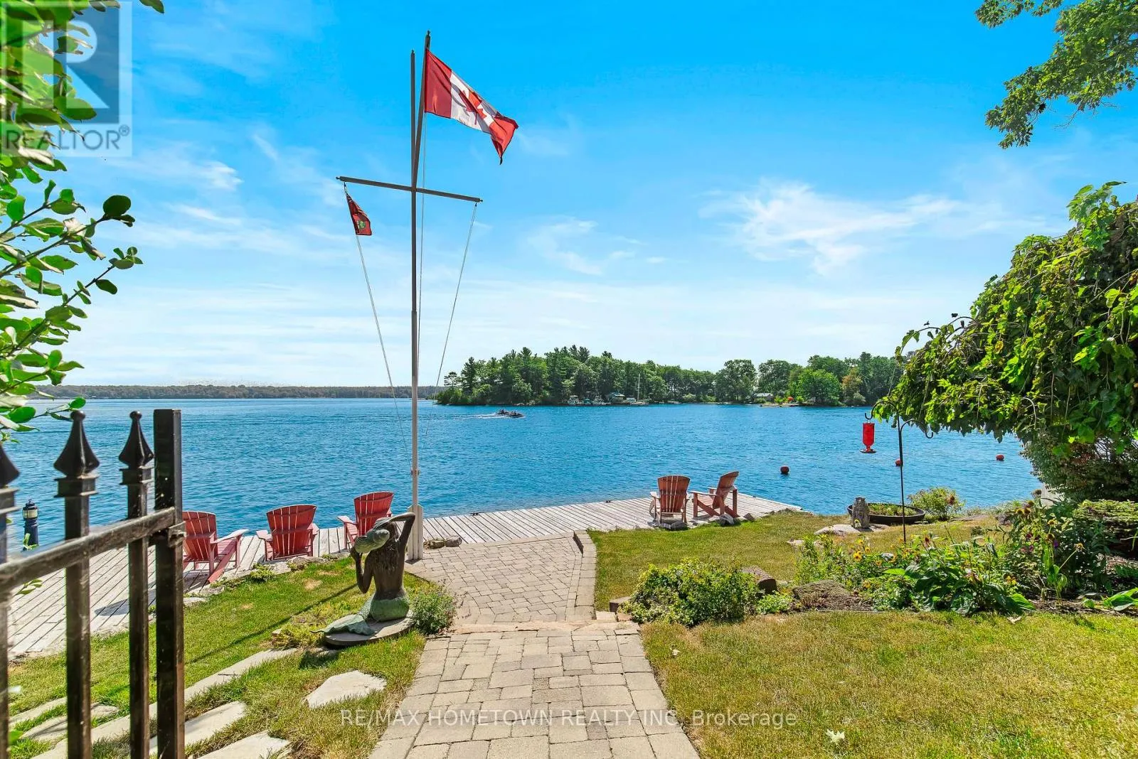 King St. W., south onto the westerly entrance to Bayview Rd., pass thru the sign indicating private road and the property is signed and on the riverside. Located within the City of Brockville, yet offering the privacy of a riverfront retreat, 9 Bayview Road provides front-row views of the great ships navigating the world-renowned St. Lawrence Seaway. Just minutes from downtown Brockville, yet worlds away in its waterfront serenity. Life on the St. Lawrence River offers a rhythm and beauty that changes with every season, and this exceptional waterfront property captures it perfectly. Set among dramatic rock outcroppings and beautifully maintained gardens, the home blends natural landscape with thoughtfully designed living. A wall of south-facing windows fills the interior with natural light while framing sweeping panoramic vistas across the river. From the balcony or covered deck, watch international freighters glide past your shoreline, a remarkable spectacle found in only a select few waterfront locations in the world. Outdoor living is effortless with walkout access to the river, easy docking from a Kehoe dock, and a SeaDoo lift with storage facility ready for summer adventures. Spring brings fresh colour to the gardens and lively river activity, while summer invites boating, swimming, and waterfront gatherings. Autumn sunsets and peaceful winter scenes ensure beauty in every season. With private road access and guest parking on Bayview Road, this is a rare opportunity to own an exceptional city waterfront home on the St. Lawrence River. (id:27476)