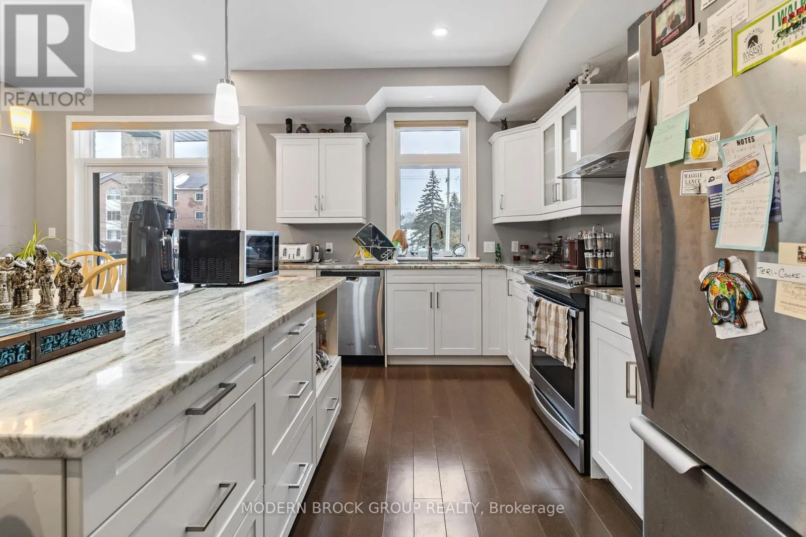 Cross Streets: Millwood Avenue and Parkedale Avenue. ** Directions: From Highway 401, take Exit 696 North, Turn East onto Parkedale Avenue and then North onto Millwood Avenue. Visitor parking in behind the building via the North driveway. Welcome to a carefree lifestyle in a well managed and stylish luxury building? This bright and spacious open concept, two bedroom, two bathroom condo boasts nine foot ceilings and oversized windows that draw in plenty of natural light even on those dreary winter days. It's conveniently located near shopping, restaurants, recreation and parks in Brockville's North End. You will love the warmth underfoot of the in-floor radiant heat and the convenience of in-suite laundry and secure underground parking. The A/C and air handler were just cleaned and serviced and an upgraded thermostat installed and programmed. There is nothing to do except move in, relax, and enjoy your morning coffee on your private balcony. There is even a secure locker on the garage level to throw your luggage into when you're back from your winter getaway. This suite was recently repainted and new insulated blinds installed. Book your private showing today. (id:27476)