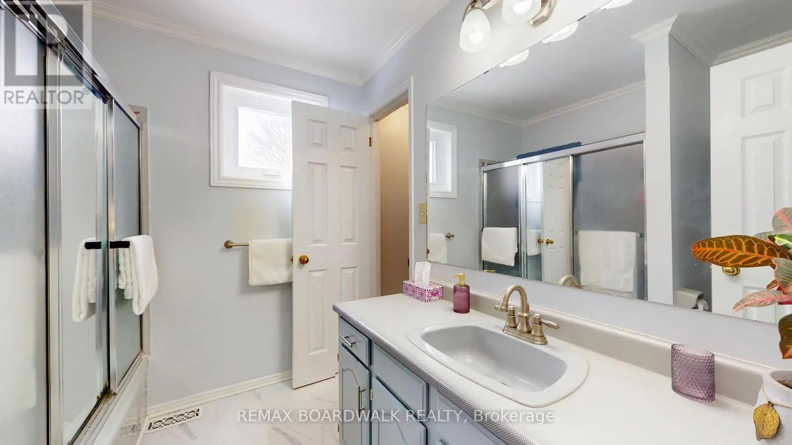 Cross Streets: King Street West/North Augusta Road. ** Directions: From King Street West turn left on First Avenue. Welcome to this beautifully appointed two-storey brick family home. Boasting undeniable curb appeal, this residence offers classic design & modern convenience in a sought-after location. Step inside to discover a thoughtfully designed main floor with hardwood floors, where a warm & inviting family room complete with a cozy gas fireplace opens seamlessly onto a private side deck with gas barbecue hook up, perfect for effortless indoor-outdoor living. The sunlit living room, highlighted by a bay window, flows naturally into the formal dining area, creating an ideal setting for both intimate dinners & lively gatherings. The kitchen is as functional as it is welcoming, featuring oak cabinetry, granite countertop, all included appliances & a dedicated coffee area. A stylish two-piece powder room completes the main level. Upstairs, you will find three generously sized bedrooms - all with hardwood flooring, including the primary with a walk-in closet & convenient cheater ensuite access, offering both comfort & practicality for family living. The lower level expands your living space with a spacious recreation room & wet bar, ideal for hosting or relaxing. An additional bedroom & four-piece bathroom with soaker tub & heated floors enhance the versatility of this level, making it perfect for guests or extended family. New on demand hot water heater & garage equipped with wiring to accommodate an EV charger are perfect for sustainable living. This exceptional home captures the essence of comfortable luxury, offering space, style & thoughtful details throughout-all ready to welcome its next chapter! (id:27476)