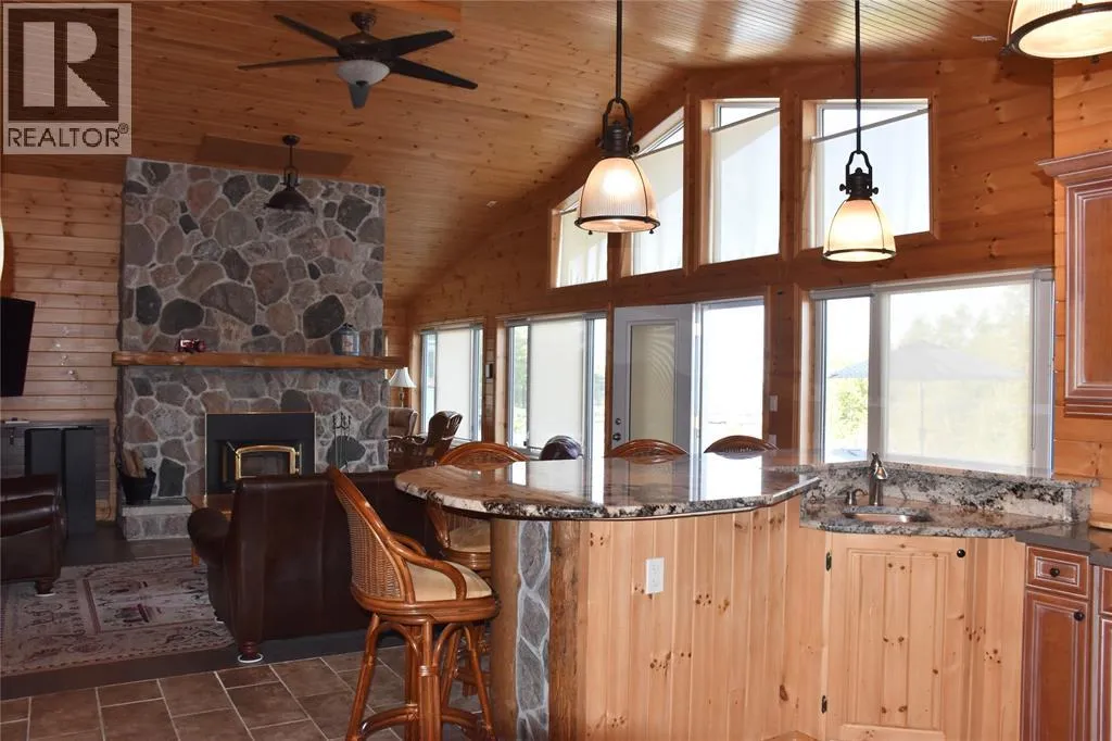 Welcome to life on the lake! Enjoy boating, swimming or watch the sunset on your large, 44X10 composite deck, during a tranquil evening. This 1600 sq ft, 4 season cottage features an open concept living area to the kitchen with granite countertops, that wrap around for seating. The warm & natural feel of being in the woods is everywhere, from the wood walls & doors to the stone mason, professionally built fireplace & maple hardwood floors. You'll love the heated floors & 6' jacuzzi tub in the main washroom, as well as the newly custom built two piece washroom. There is even room for the toys, with the 26X26 attached, insulated run-thru garage which is piped for in-floor heat, & the attic has vapour barrier. For the warm summer days on the lake & the colder winter nights by the fireplace, the amazing views of this waterfront property is always breathless & the place to be. Conveniently located 4 hrs from Sarnia, 3 hrs & 40 min. from London & Toronto. (id:27476)