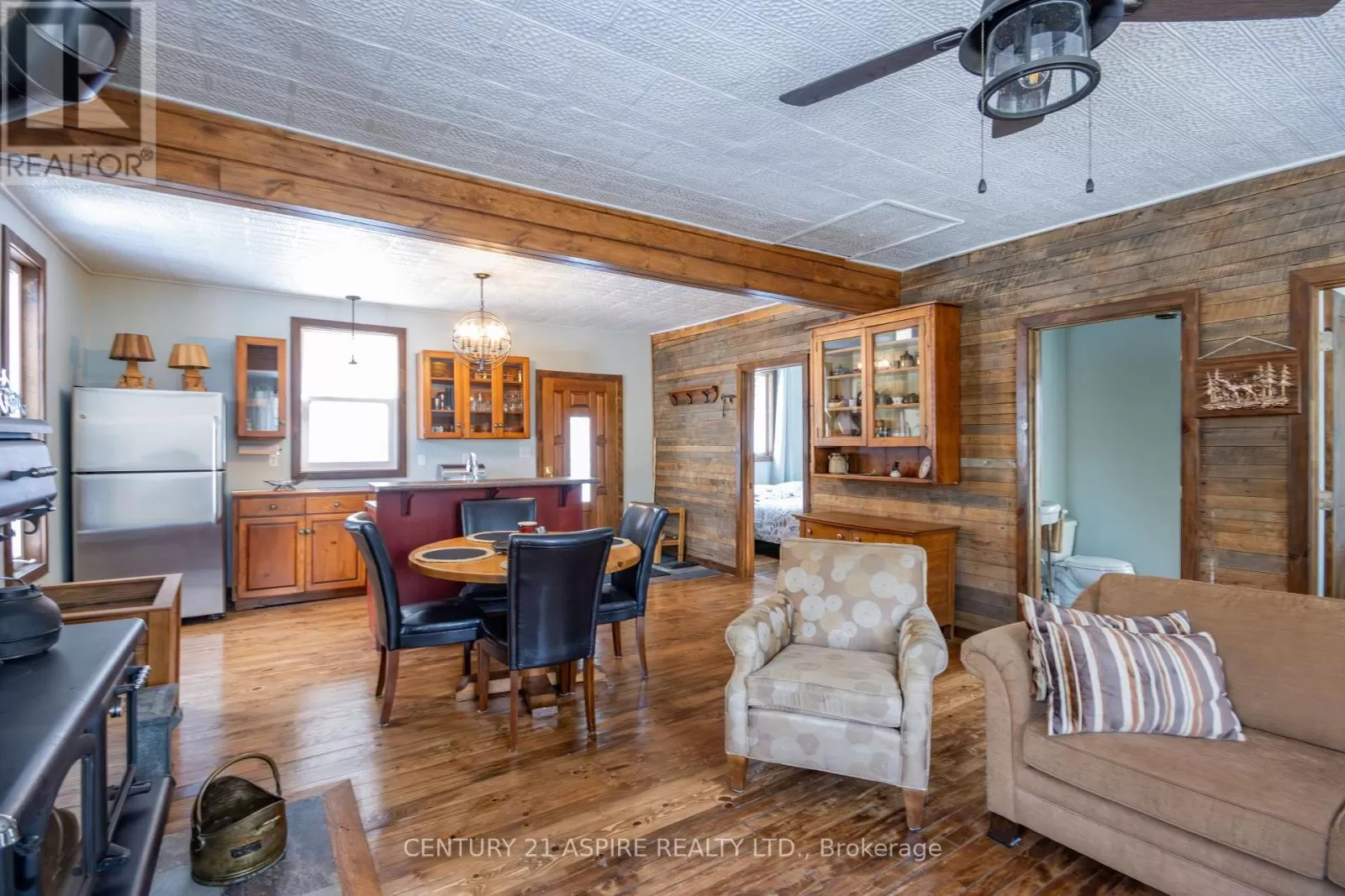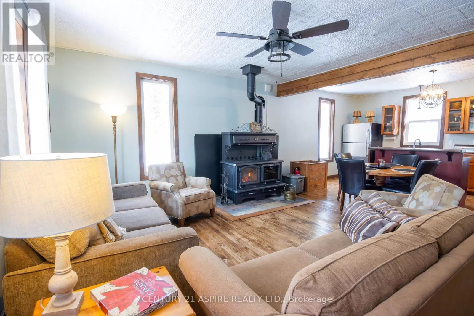 Cross Streets: Hwy 517 and Craigmont Rd. ** Directions: Hwy 517 (Dafoe Road) to Craigmont Road. Discover the perfect blend of comfort and off-grid living in the scenic hills of Combermere. This fully updated, off-grid cabin and 2 sheds sits on just over 4.5 acres of peaceful, treed land and is powered by solar panels for sustainable living. Inside, you will find 2 bedrooms, 1 bathroom, and a bright, open-concept kitchen and living area warmed by a charming wood cookstove. The home is fully winterized, ensuring year-round enjoyment. A basement with outside entry provides plenty of storage for your gear and supplies. Outdoor enthusiasts will love the direct access to snowmobile and ATV trails right at the end of your driveway, along with a number of lakes, trail systems and Crown land close by, making this an ideal four-season getaway. Located on a maintained road for year-round access. This property is well-equipped with a dug well, septic system, and is wired for a portable generator (included) for added convenience. Most furnishings will be included, making this an easy move-in opportunity. Whether you are looking for a weekend retreat or a full-time off-grid lifestyle, this secluded yet accessible cabin is ready for you to move in and enjoy. (id:27476)