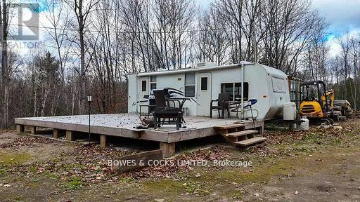 Hwy 28 & Little Ireland Rd. Discover tranquility on this beautifully treed 4.30 acre property, ideal for building your dream home or enjoying as a recreational getaway. Key infrastructure is already in place, including a deep drilled well, septic system, and a newly installed 100 Amp breaker panel-saving you time and upfront costs. As a bonus, the property features a 2008 28-ft Solaris trailer with sleeping space for six, a propane furnace, kitchen appliances, bathroom, shower, all hooked up to the well, septic and hydro. A newly built 23' x 17' cedar deck complements the setup, all situated on a solid 24' x 24' concrete slab. Enjoy gated access from a year-round maintained paved road. The lot backs onto 17 acres of crown land with trails for hiking, exploring, or ATVing, accessible from the south end of the property. Conveniently located just25 minutes east of Bancroft and only 4 km to groceries and gas. Surrounded by excellent fishing lakes and crown land this property offers the perfect blend of privacy and outdoor adventure. (id:27476)