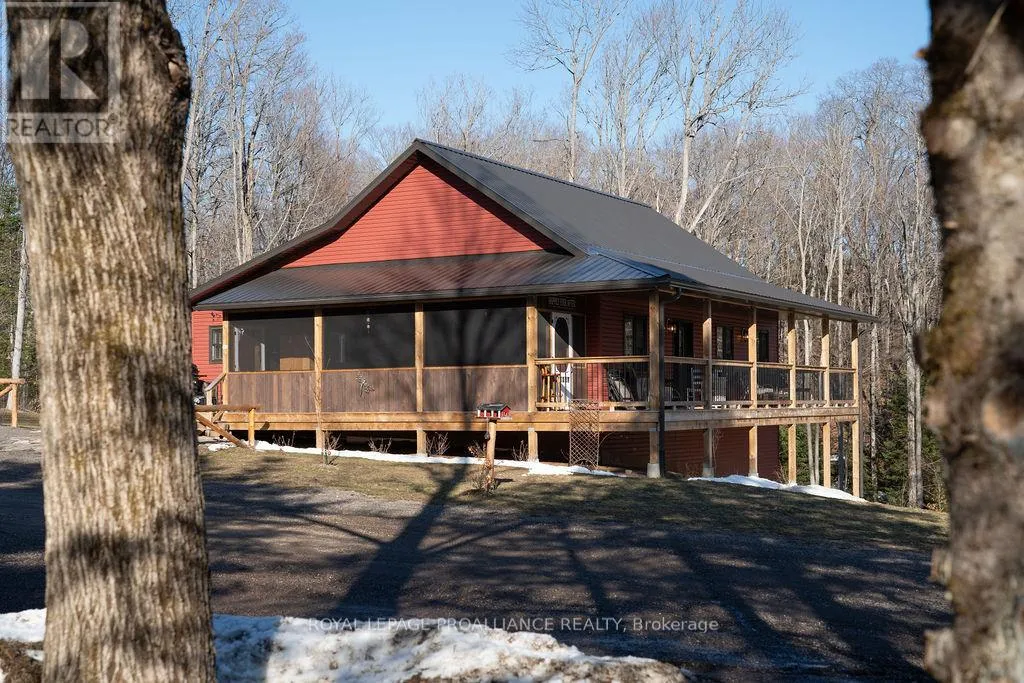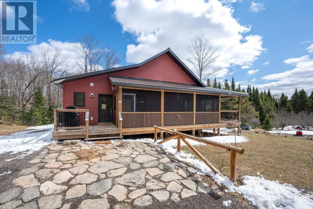 Cross Streets: Brudenell & Opeongo. ** Directions: West of Brudenell & Opeongo Roads. Whether you're searching for a peaceful retreat or a special place to enjoy a slower pace of life, this property offers an exceptional opportunity to do just that.Tucked beyond the trees at the end of a private drive, this beautifully crafted walkout bungalow sits on over 16 acres in the heart of the Canadian Shield. Built in 2023 with quality in mind, an ICF foundation, bright open-concept living, and a wraparound porch designed to take in the surrounding natural beauty. The main floor features a welcoming layout perfect for entertaining, watching sunsets in the screened porch and retreating to your serene primary suite at the end of the day. The walk-out lower level has a private studio office with soundproofing whether you are a musician or just need a quiet workspace, plus the second bedroom, adjacent bath, and family room leading to a stone patio overlooking the creek and pond is just perfect for hosting guests. The property itself is truly special, with wooded trails, open spaces and all just steps from Gorman Lake. A detached 30 x 40 garage provides ample space for all the toys or your dream workshop. Located in Renfrew County's Madawaska Valley, known for its rugged Canadian Shield landscape and proximity to Algonquin Provincial Park, you'll enjoy a true four-season lifestyle with nearby golf course, skiing, and endless outdoor recreation. Just 20 minutes to Barry's Bay and under 2 hours from Ottawa, the countryside of Wilno offers privacy, nature, and convenience. (id:27476)