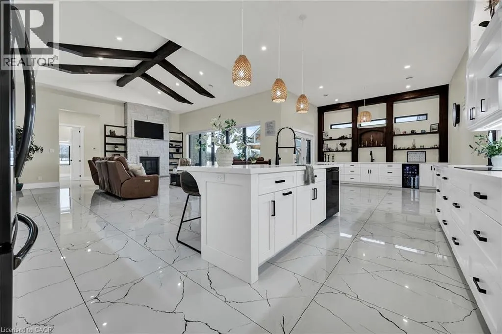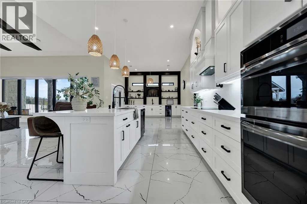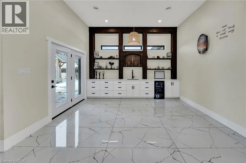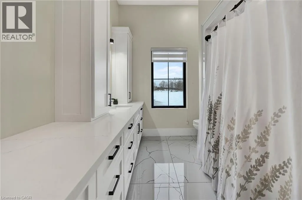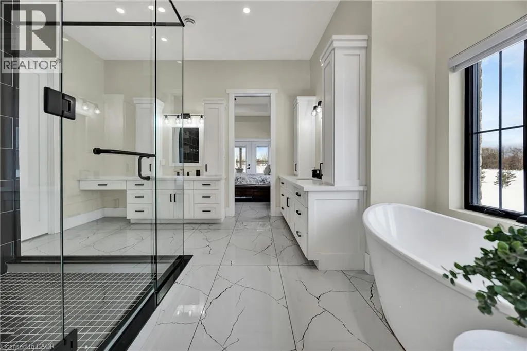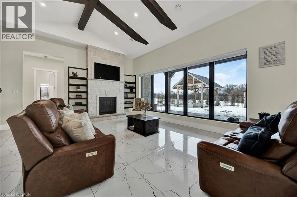 Head southeast on Newry Rd/County Rd 16 toward McDonald Line, Turn right onto Fischer Line, Destination will be on the right This custom built bungalow, completed in 2023, sits on just under 10 acres and offers a rare mix of modern comfort, quality finishes, and space to enjoy the land. Featuring 3 bedrooms and 3 bathrooms, the home is thoughtfully designed for both everyday living and long term comfort. The foyer welcomes you with marble flooring, in floor heating, and tall ceilings, setting the tone for the rest of the home. The open concept main living area flows naturally and is filled with natural light from large south facing windows. A floor to ceiling stone fireplace anchors the living room and creates a warm, inviting space year round. The kitchen is both functional and well designed, featuring floor to ceiling cabinetry, quartz countertops, stainless steel appliances, a farmhouse sink, and a large island for everyday use. A walk through pantry connects to the formal dining room, offering flexibility for hosting or quieter meals. Built in cabinetry with floating shelves and a bar fridge adds a practical accent and additional storage. Patio doors lead to a covered outdoor living area for easy indoor outdoor flow. The primary bedroom is spacious and bright, with a well appointed ensuite that includes double vanities, a large walk in shower, and a walk in closet. Two additional bedrooms, a dedicated office, mudroom, and generous laundry room complete the main level. Everything is located on one level for easy, efficient living. Two attached garages with in floor heating provide plenty of space for vehicles, storage, or workspace. A standout feature of the property is the approximately 40 x 70 heated shop, complete with in floor heat, large overhead doors, a washroom, and office space. Set on just under 10 acres, this property offers privacy, open space, and room for projects, hobbies, or simply enjoying the outdoors. A newer build that combines thoughtful design, luxury finishes, and practical country living. (id:27476)