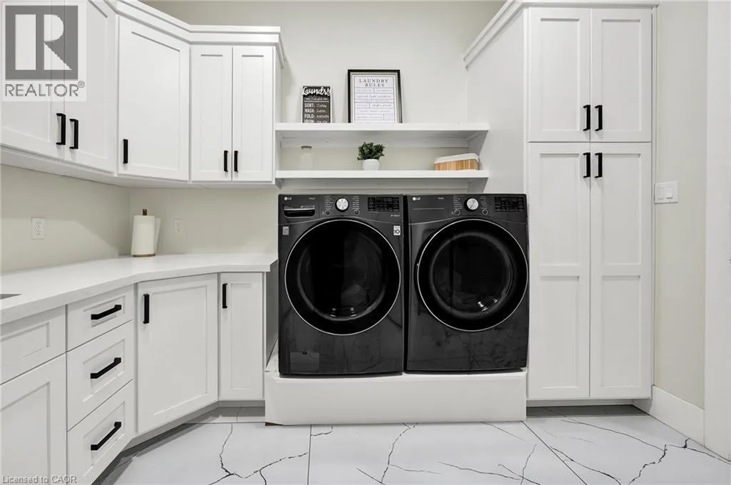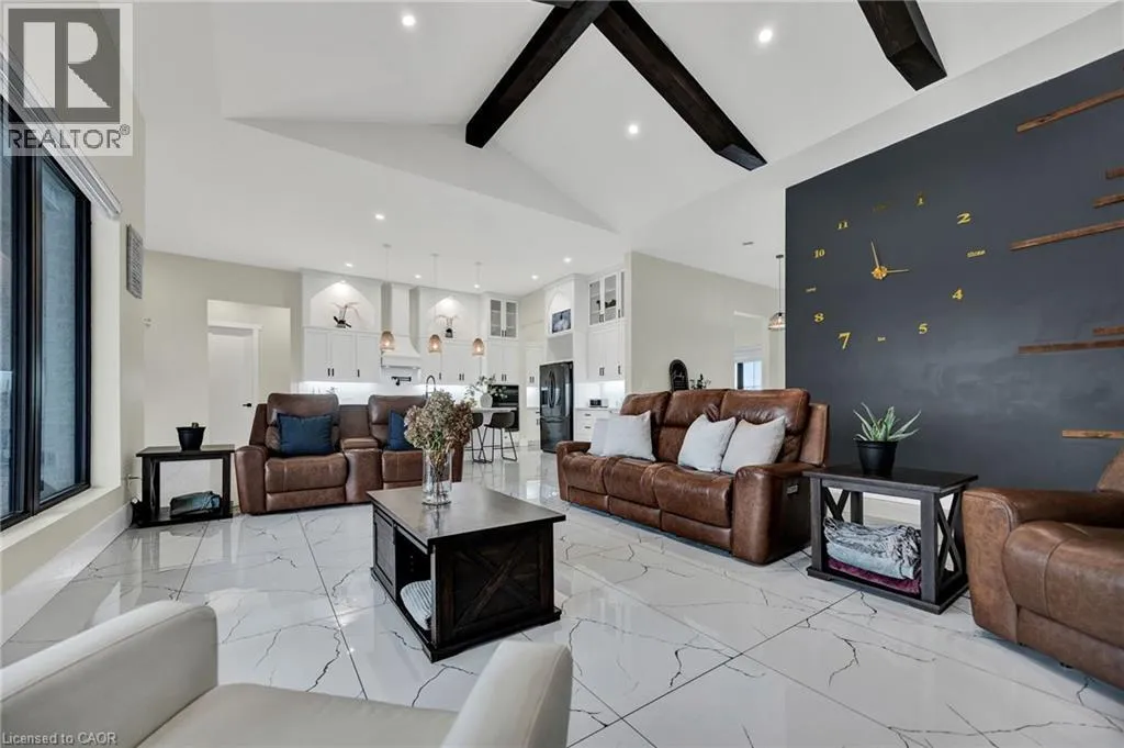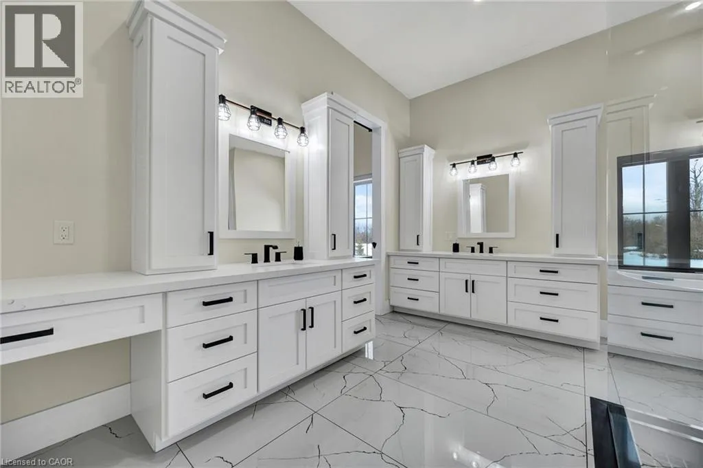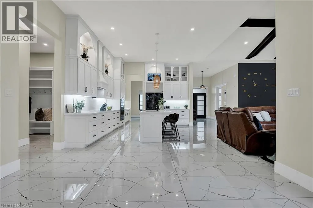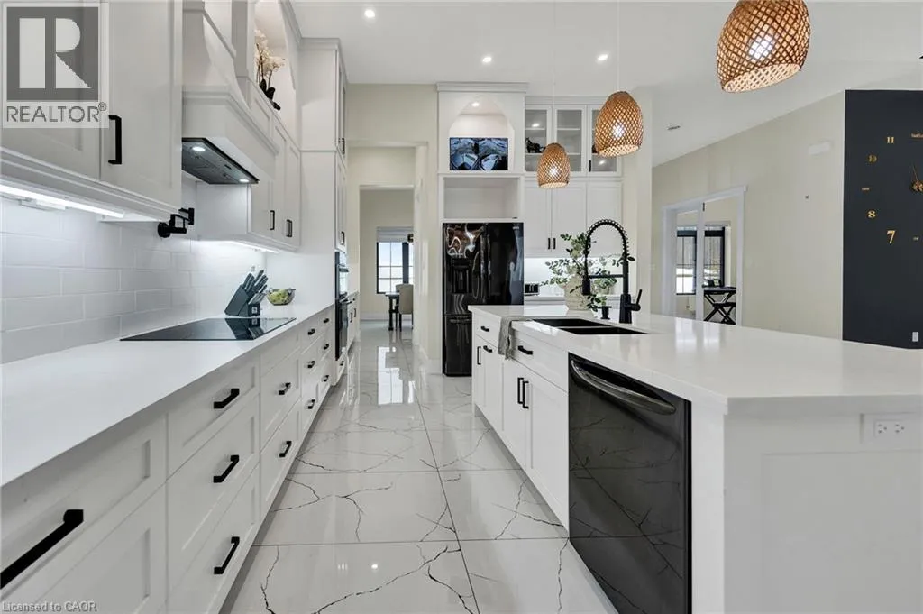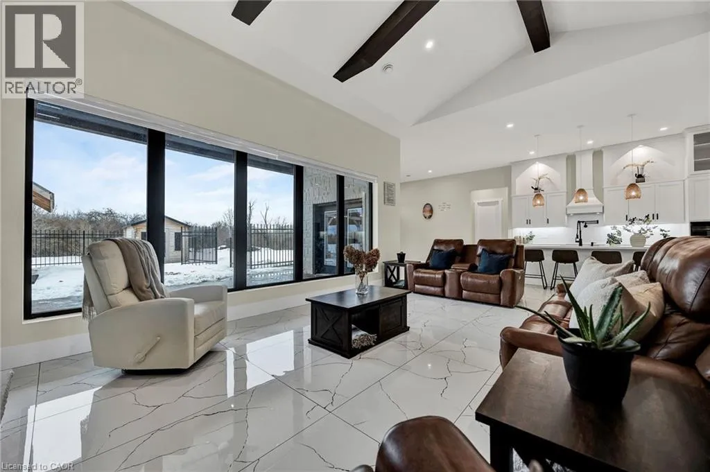 Head southeast on Newry Rd/County Rd 16 toward McDonald Line, Turn right onto Fischer Line, Destination will be on the right This custom built bungalow, completed in 2023, sits on just under 10 acres and offers a rare mix of modern comfort, quality finishes, and space to enjoy the land. Featuring 3 bedrooms and 3 bathrooms, the home is thoughtfully designed for both everyday living and long term comfort. The foyer welcomes you with marble flooring, in floor heating, and tall ceilings, setting the tone for the rest of the home. The open concept main living area flows naturally and is filled with natural light from large south facing windows. A floor to ceiling stone fireplace anchors the living room and creates a warm, inviting space year round. The kitchen is both functional and well designed, featuring floor to ceiling cabinetry, quartz countertops, stainless steel appliances, a farmhouse sink, and a large island for everyday use. A walk through pantry connects to the formal dining room, offering flexibility for hosting or quieter meals. Built in cabinetry with floating shelves and a bar fridge adds a practical accent and additional storage. Patio doors lead to a covered outdoor living area for easy indoor outdoor flow. The primary bedroom is spacious and bright, with a well appointed ensuite that includes double vanities, a large walk in shower, and a walk in closet. Two additional bedrooms, a dedicated office, mudroom, and generous laundry room complete the main level. Everything is located on one level for easy, efficient living. Two attached garages with in floor heating provide plenty of space for vehicles, storage, or workspace. A standout feature of the property is the approximately 40 x 70 heated shop, complete with in floor heat, large overhead doors, a washroom, and office space. Set on just under 10 acres, this property offers privacy, open space, and room for projects, hobbies, or simply enjoying the outdoors. A newer build that combines thoughtful design, luxury finishes, and practical country living. (id:27476)