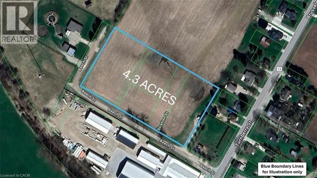 Excellent 4.3 acre industrial property in busy Brussels ON. Services available at highway. Zoned M2 Industrial. Can be purchased separately or together with adjoining parcel to the North (MLS# 40803962, PIN# 413380247). (id:27476)