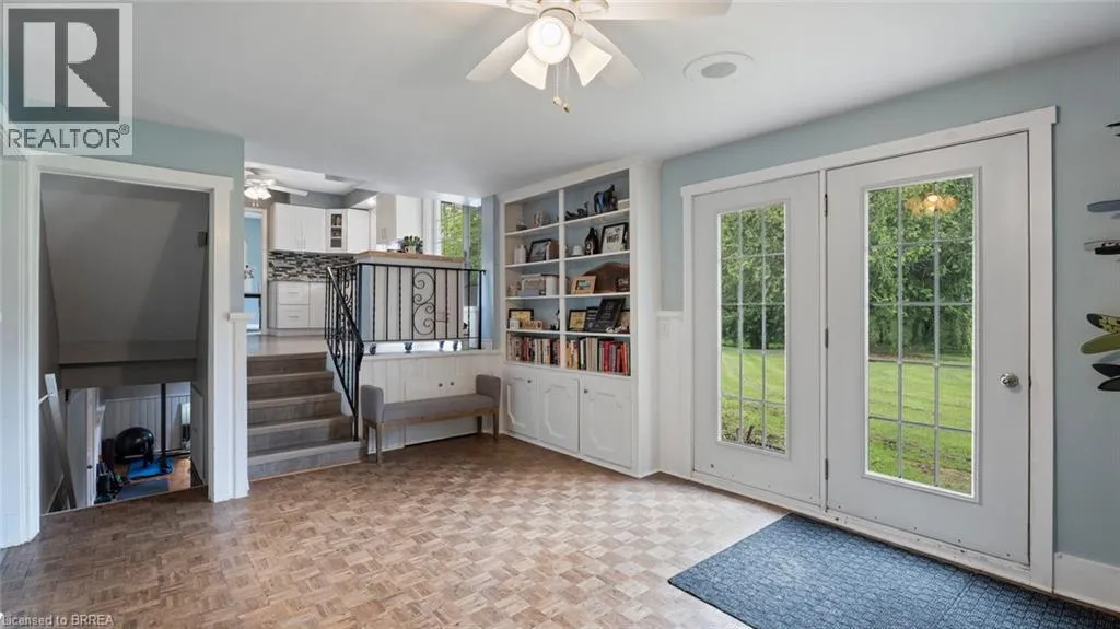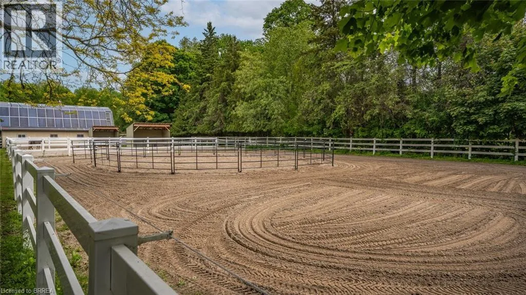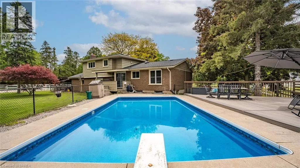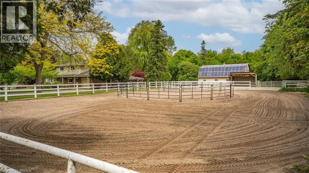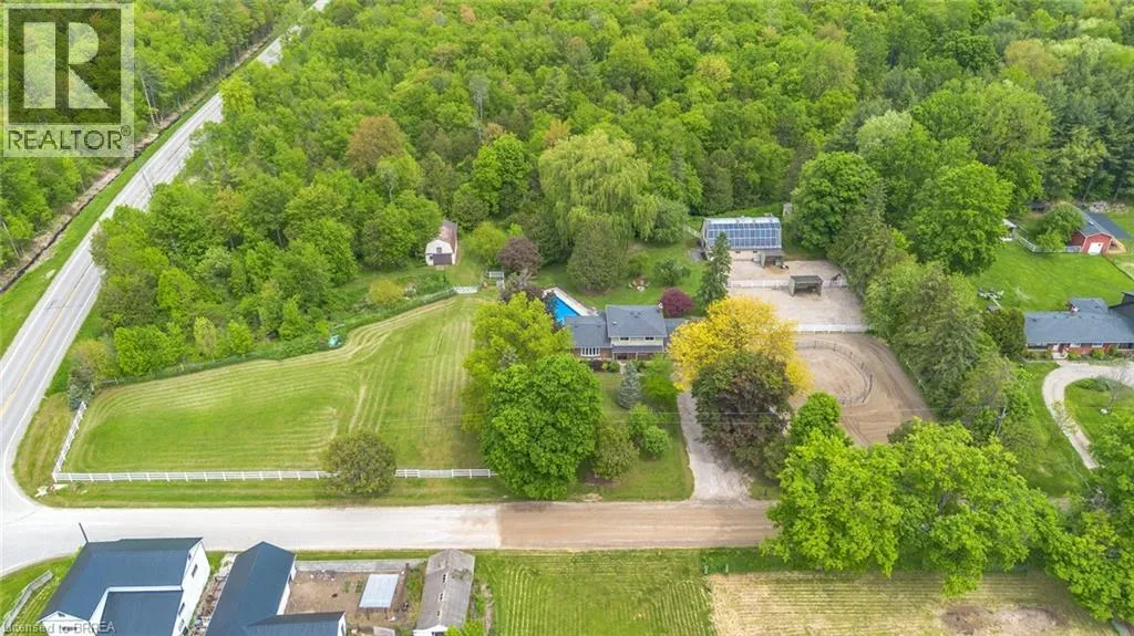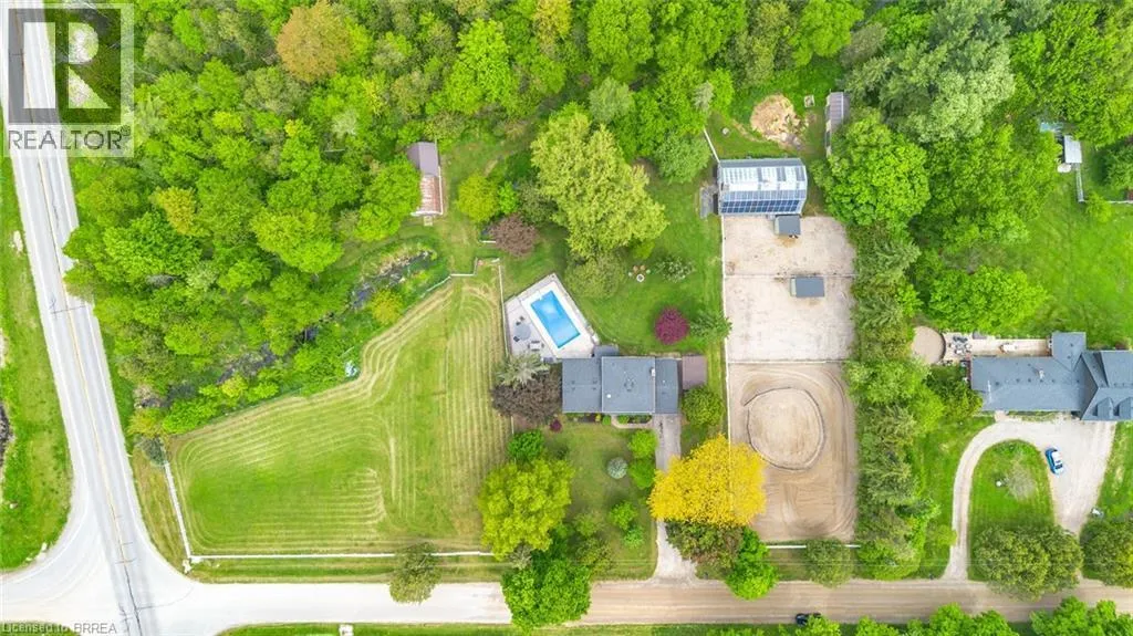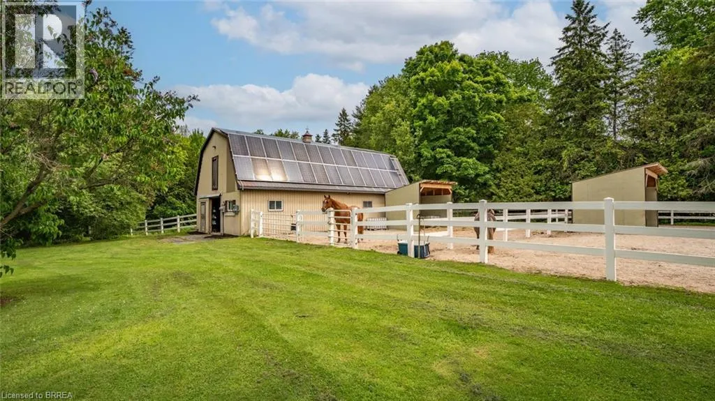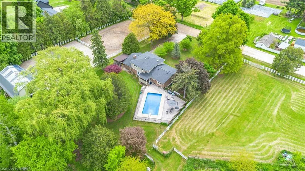 CORNER OF MAPLE AND FIFTH CONCESSION . A picture perfect 2.64 Acre hobby farm just north of Burford. Spacious Four level sidesplit 3-4 bedroom home with attached garage. Updated main bath.Second three piece bath off main floor laundry. Office, main floor laundry, family room with woodstove, lower level recreation room or gym with a fully finished storage room that could be a playroom etc. Bright spacious living room. Updated kitchen walks out to pool deck. separate dining room. Upgraded windows. New cooling system for upper bedrooms. Nice 1400 sq ft Six stall horse barn, two stalls have SoftStall mattress bottoms.. Separate wash stall, heated tack room and large upper hay loft. Water and hydro in barn. Wifi network to both horse barn and workshop as well as the house.. Mud free footing in dry lot paddocks, sand riding ring with excellent footing and drainage. Large flat grass paddock. Workshop is another separate building of approx 850 sq ft. currently used for storage and golf simulator. Fenced paddocks. And for those days that you need to cool off.... an inviting inground pool with surrounding deck. Small creek meanders across the back. Sandy soil. A perfect package for someone who has horses or other livestock. Nice house, pool, barn with loft and workshop. Pool updated to salt water with new compsite deck and covered patio. Curbside garbage pick up. 3 minutes to Burford,, a friendly small town with schools, parks, groceries, library, pizza and coffee shops as well as a Hardware store. less than 10 minutes to Paris, easy #403 access for commuters. Children bused to school. (id:27476)