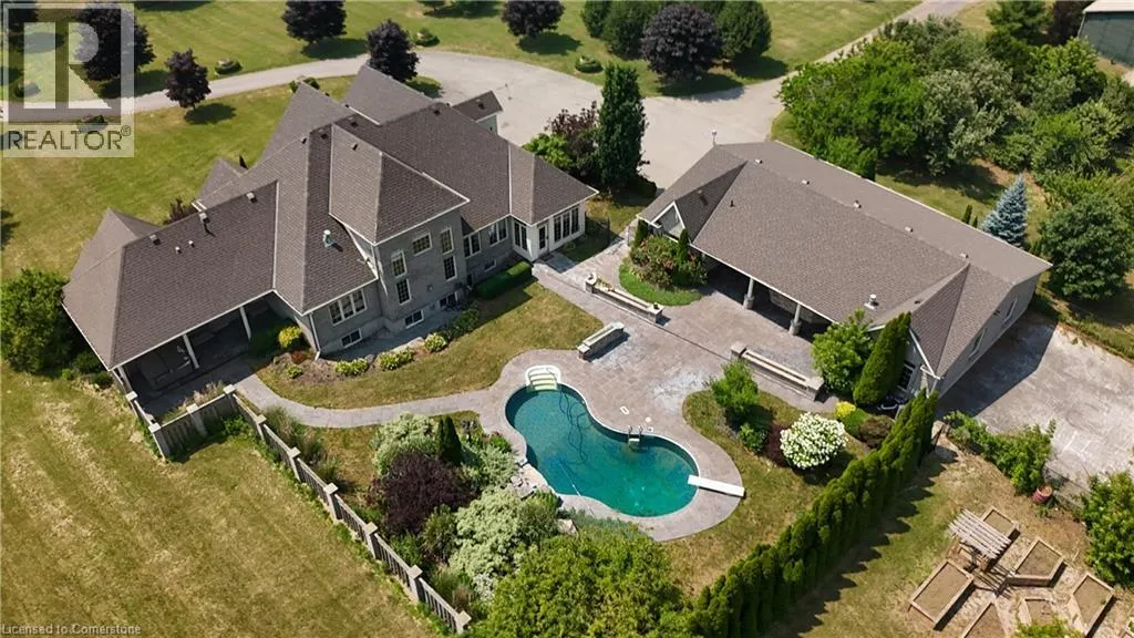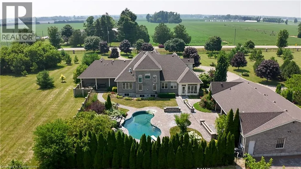 From 403 take exit 27 HWY 24 go south, right on Elis Ave, left on Bishopsgate rd, Right on Tenth Concession rd, left on Maple Ave 450 meters on right is location. Now Offered at $2,395,500 â A Brilliant Opportunity to Own a Rural Luxury Retreat! Set on 7.84 acres of rolling countryside, this extraordinary estate combines luxury living with endless possibilities. The main residence offers over 5,700 sq. ft. of elegant living space, designed for both family comfort and unforgettable entertaining. Inside, youâll find spacious principal rooms, a chefâs kitchen, multiple fireplaces, and abundant natural light. With 5+ bedrooms, spa-inspired bathrooms, and a lower-level retreat, this home is built for a lifestyle of comfort and sophistication. Step outside to your own resort-style playground: ? Heated pool & hot tub ? Outdoor kitchen & party-ready garage loft ? Tennis court & full soccer field ? Your own orchard with apple and pear trees ? Barns, shops, and a massive 14,000 sq. ft. heated & powered building â ideal for business use, events, or hobby pursuits. Surrounded by open skies yet minutes to town, this property balances privacy with convenience. Whether you envision a private family compound, a countryside event venue, or a multi-use investment property, the opportunity here is unmatched. Key Features: 7.84 acres with A24 agricultural zoning 5,700 sq. ft. luxury home with multiple upgrades Resort-style amenities: pool, hot tub, tennis, soccer field, outdoor kitchen 14,000 sq. ft. heated shop with 3-phase hydro Orchard, barns, and flexible rural structures Brilliant potential for family, business, or lifestyle use (id:27476)