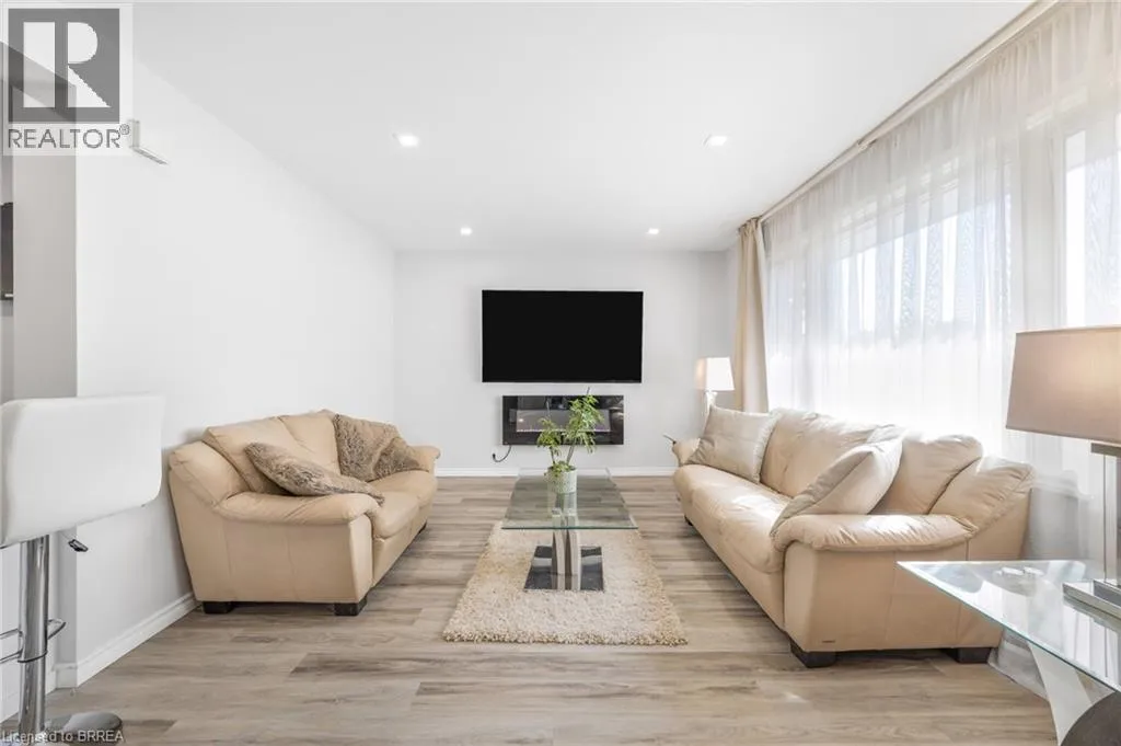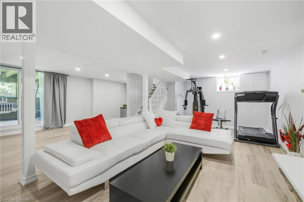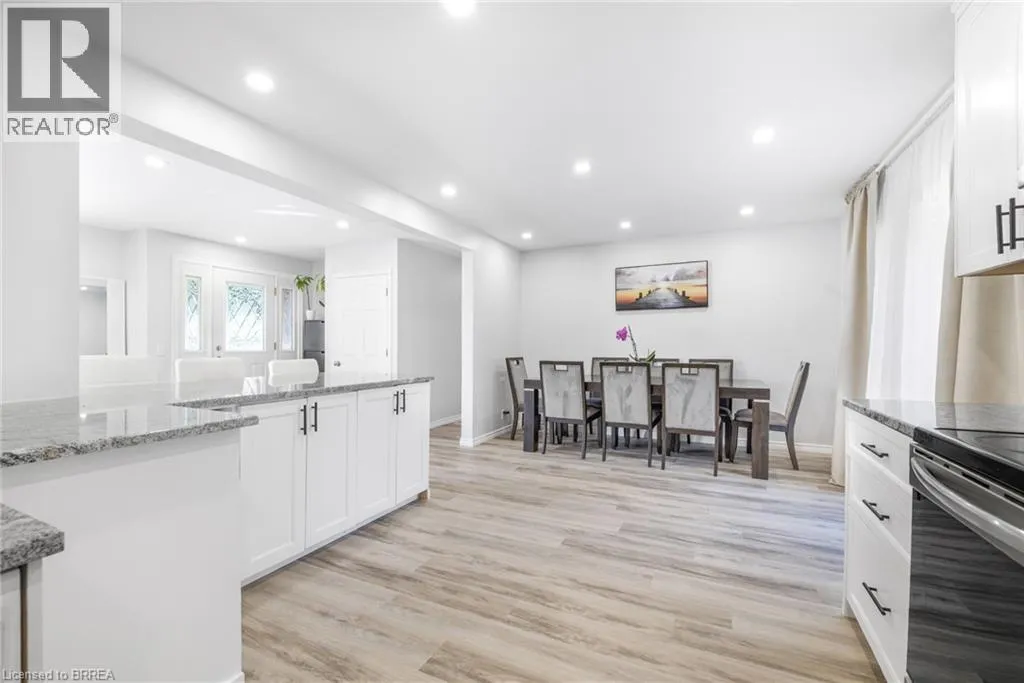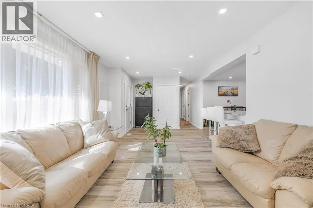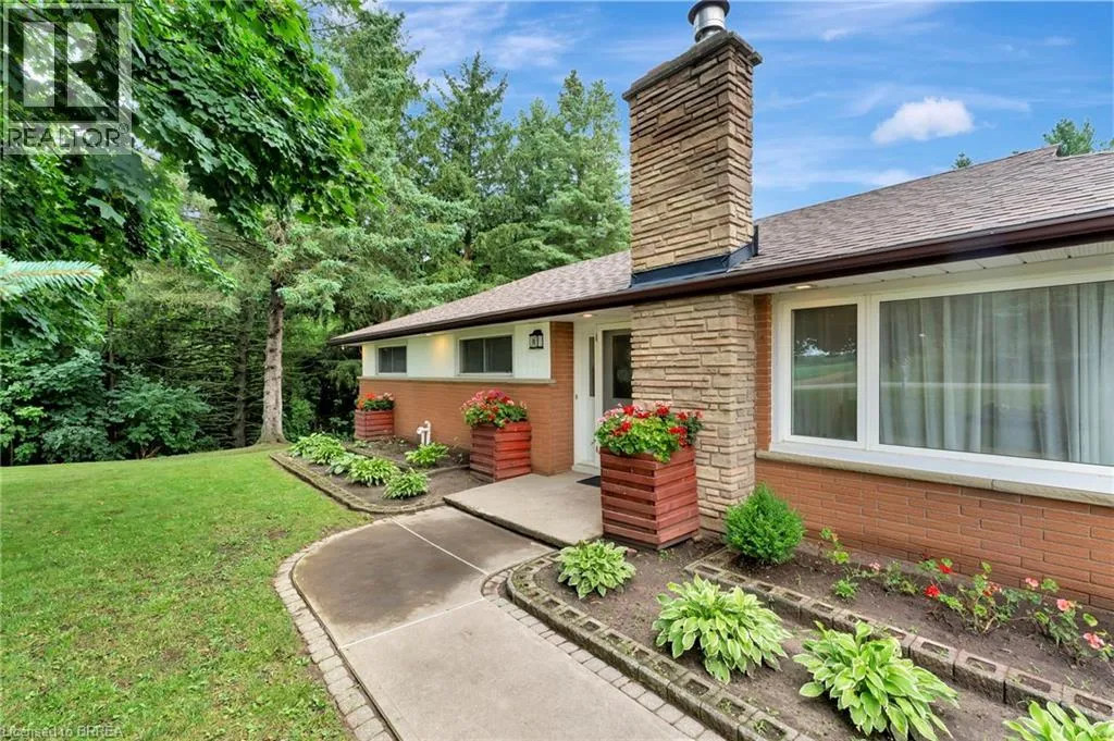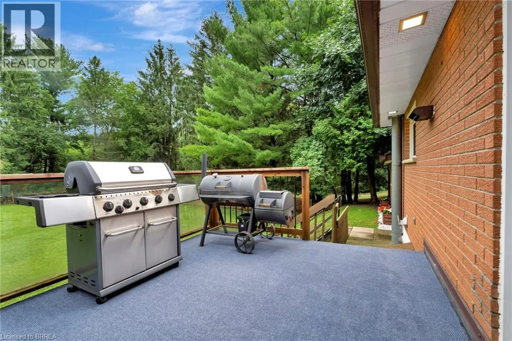 Travelling North on Bishopsgate Road, turn right onto Sixth Concession Road. Welcome to this exquisite brick bungalow nestled in the serene countryside close to both Burford and Brantford. Situated on nearly half an acre, this idyllic property boasts a lush, tree-lined backdrop and a secluded backyard with no visible neighbours. This meticulously maintained home offers two rear walkouts providing the opportunity to convert this home into two distinct units. Upon entering the main level, you're greeted by a freshly painted, partially open-concept living room, dining area, and kitchen, all enhanced by new flooring throughout. The cozy living room is bathed in abundant natural light from large, expansive windows, while the adjacent kitchen caters to culinary enthusiasts with sleek stainless steel appliances, a convenient breakfast bar, and a stylish tile backsplash. Sliding doors lead from the dinette area to a spacious raised back deck, perfect for seamless indoor-outdoor entertaining and relaxing. The primary bedroom, two additional bedrooms, and a well-appointed 5-piece bathroom with elegant dual vanities complete this level. Descend to the fully finished lower level complete with newly installed flooring throughout (2025), to discover a generously sized recreation room featuring a warm and inviting gas fireplace and a fully equipped kitchenette, ideal for a potential granny suite. The recreation room extends to a fully enclosed waterproof patio via a convenient walkout. Additional highlights of the lower level include another comfortably sized bedroom with a spacious walk-in closet, a 4-piece bathroom, and newly updated laundry room. Outside, the expansive backyard offers a peaceful retreat amidst towering, mature trees and a picturesque wooded lot. Other notable features include outdoor pot lights surrounding the exterior of the home, newer roof, and a 6 car driveway, all adding to the allure of this turn-key property. Don't miss out on the opportunity to make this private country escape your own! (id:27476)