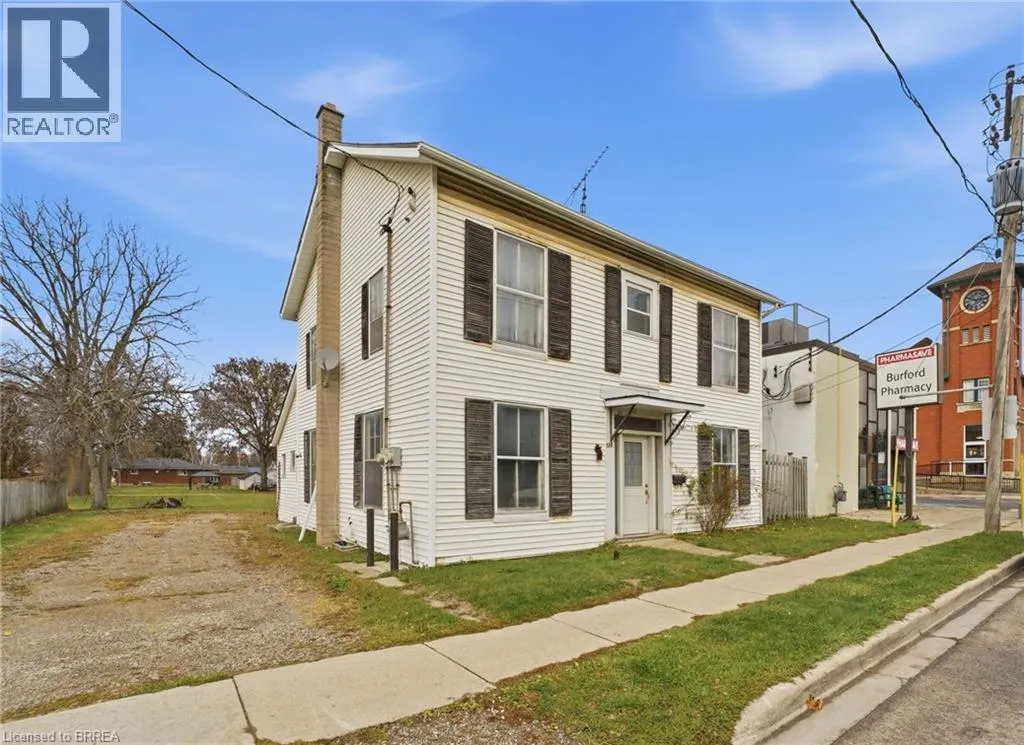 West on King St from Maple Ave Endless potential in the heart of Burford! Zoned HA-C4 (Core Area Commercial), this versatile 5-bed, 2-bath property offers a unique opportunity for residential, commercial, or mixed use. Previously operated as a duplex, it features two kitchens (note: lower left unit doesn't have its own bathroom), generous room sizes, and classic character throughout. With excellent visibility and flexible permitted usesâretail, office, personal service, studio, restaurant and moreâthis space is ideal for a home-based business, investment, or live-work setup. Put your finishing touches on this centrally located property and unlock its full potential. (id:27476)