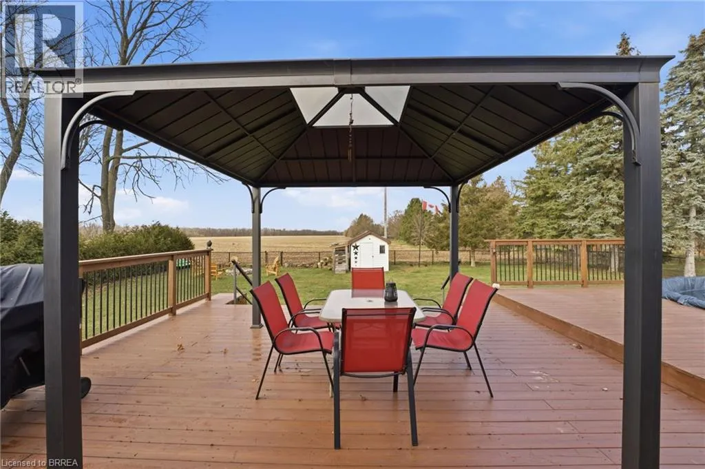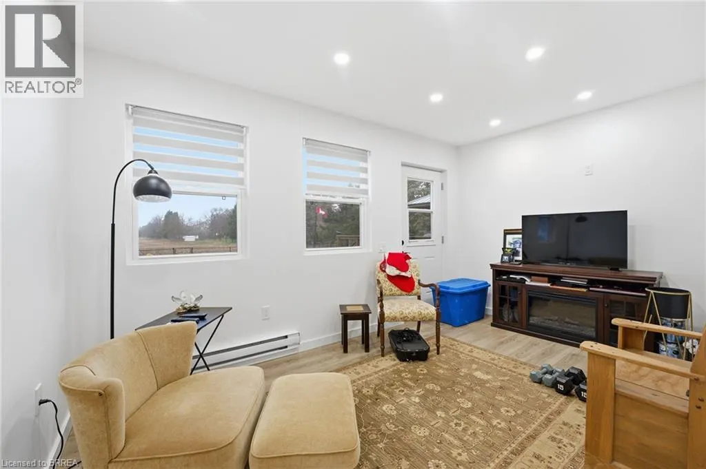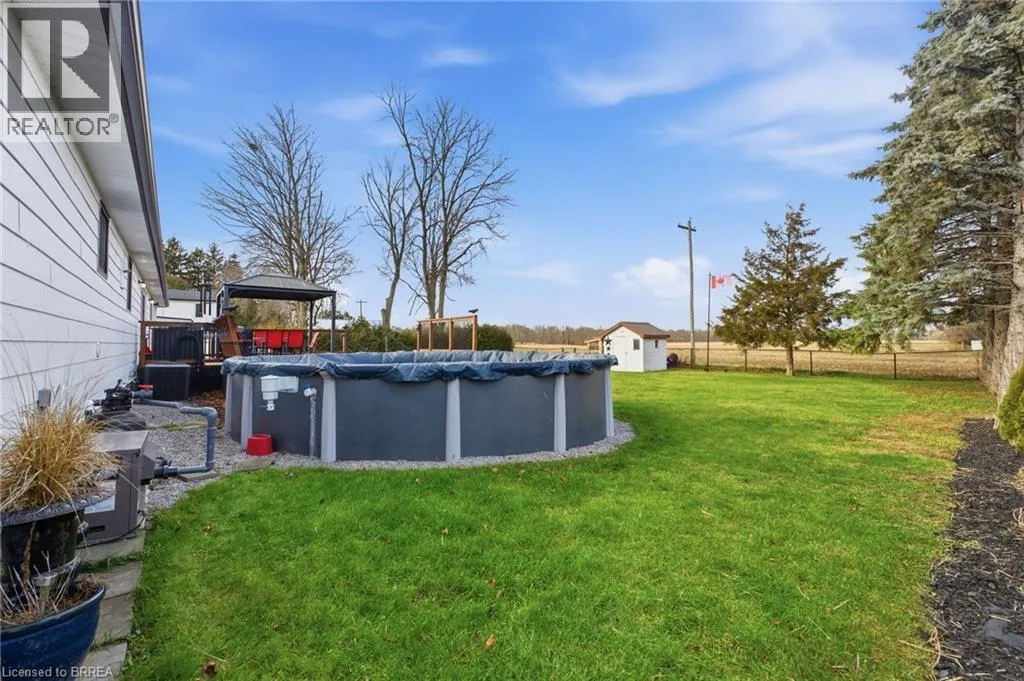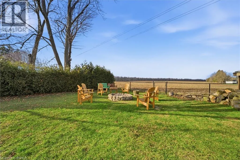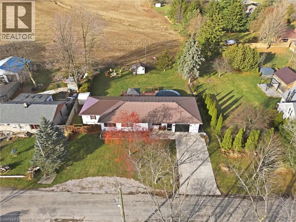 Hwy 53 west, turn right onto St Williams, left onto Dufferin house is on the right. Welcome to peaceful country living in beautiful Burford! This inviting ranch style home blends modern farmhouse charm with the privacy of no rear neighbors, backing onto open fields where you can enjoy breathtaking sunsets from your large deck accessed through an impressive 8 ft sliding patio door off the dining room. Inside the home offers 2 bedrooms on the main level and 2 additional bedrooms downstairs giving families and guest plenty of flexibility. The main living room is warm and spacious featuring a media wall with fireplace that creates the perfect gathering place. The primary suite includes it's own private sitting room ideal for unwinding , working from home or functioning as a guest or in-law suite. Downstairs you will find a beautifully finished lower level that offers the perfect lounge for the family complete with 3 piece bath, with a large shower, generous closets and storage space in addition to the 2 other bedrooms. Step out to a backyard designed for relaxation, an above ground heated saltwater pool, a cozy fire pit and wide open views of the countryside. Additional piece of mind comes from the generator keeping the lights on when the power goes out. With a double attached garage, modern finishes and a layout built for everyday living and entertaining this home delivers the best of rural comfort just minutes from town amenities. Book your personal tour today! (id:27476)