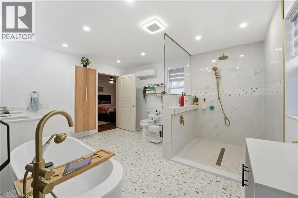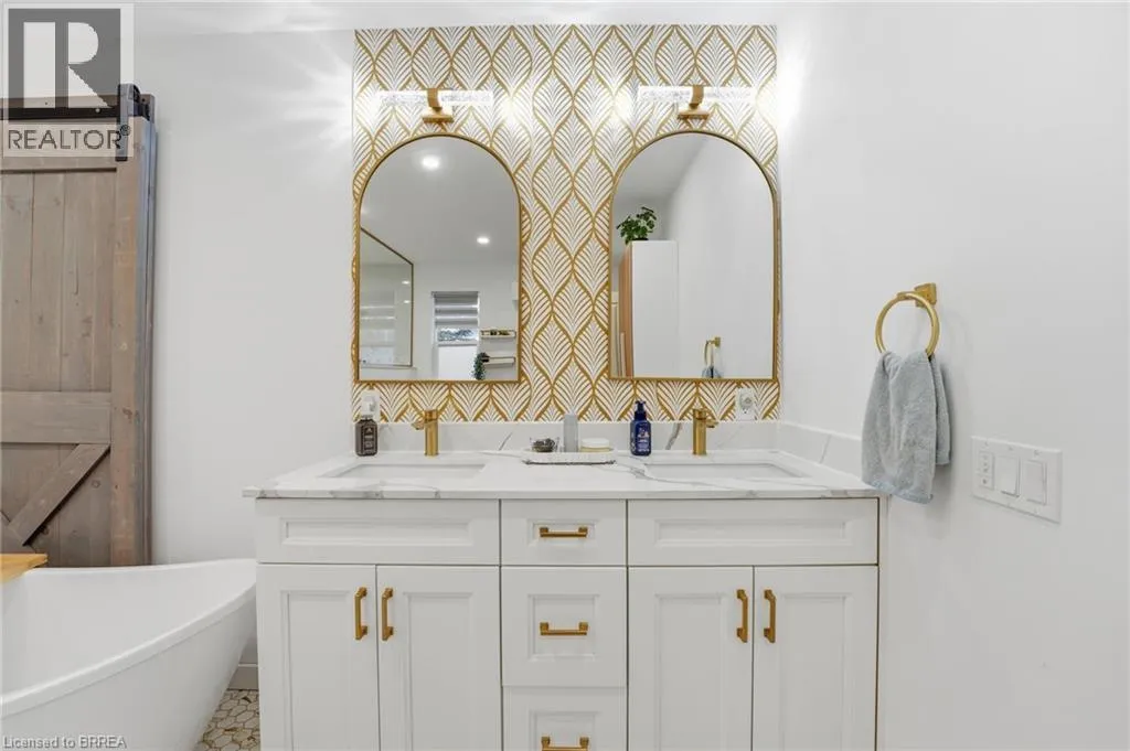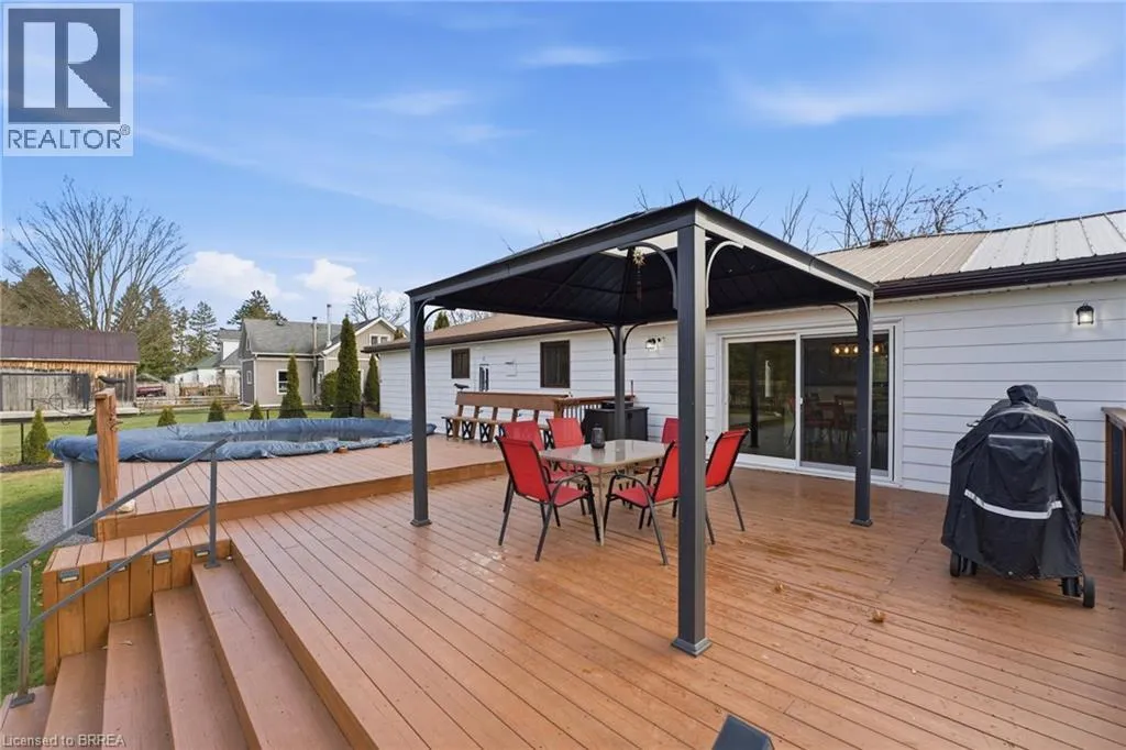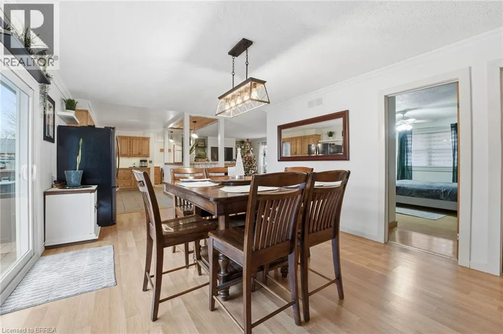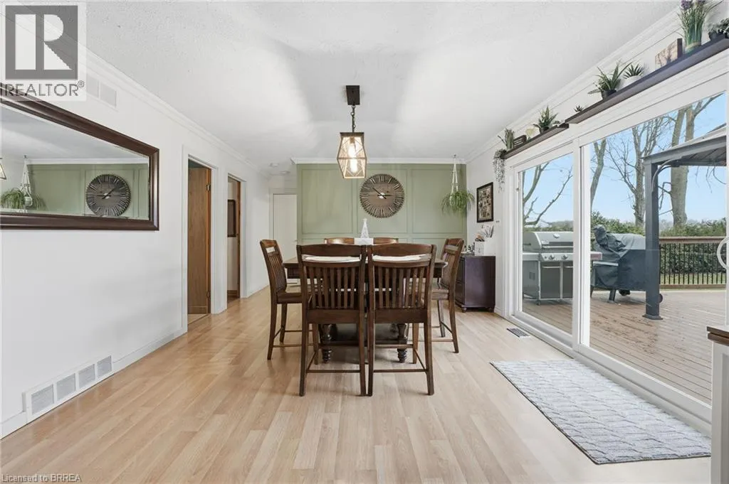 Hwy 53 west, turn right onto St Williams, left onto Dufferin house is on the right. Welcome to peaceful country living in beautiful Burford! This inviting ranch style home blends modern farmhouse charm with the privacy of no rear neighbors, backing onto open fields where you can enjoy breathtaking sunsets from your large deck accessed through an impressive 8 ft sliding patio door off the dining room. Inside the home offers 2 bedrooms on the main level and 2 additional bedrooms downstairs giving families and guest plenty of flexibility. The main living room is warm and spacious featuring a media wall with fireplace that creates the perfect gathering place. The primary suite includes it's own private sitting room ideal for unwinding , working from home or functioning as a guest or in-law suite. Downstairs you will find a beautifully finished lower level that offers the perfect lounge for the family complete with 3 piece bath, with a large shower, generous closets and storage space in addition to the 2 other bedrooms. Step out to a backyard designed for relaxation, an above ground heated saltwater pool, a cozy fire pit and wide open views of the countryside. Additional piece of mind comes from the generator keeping the lights on when the power goes out. With a double attached garage, modern finishes and a layout built for everyday living and entertaining this home delivers the best of rural comfort just minutes from town amenities. Book your personal tour today! (id:27476)