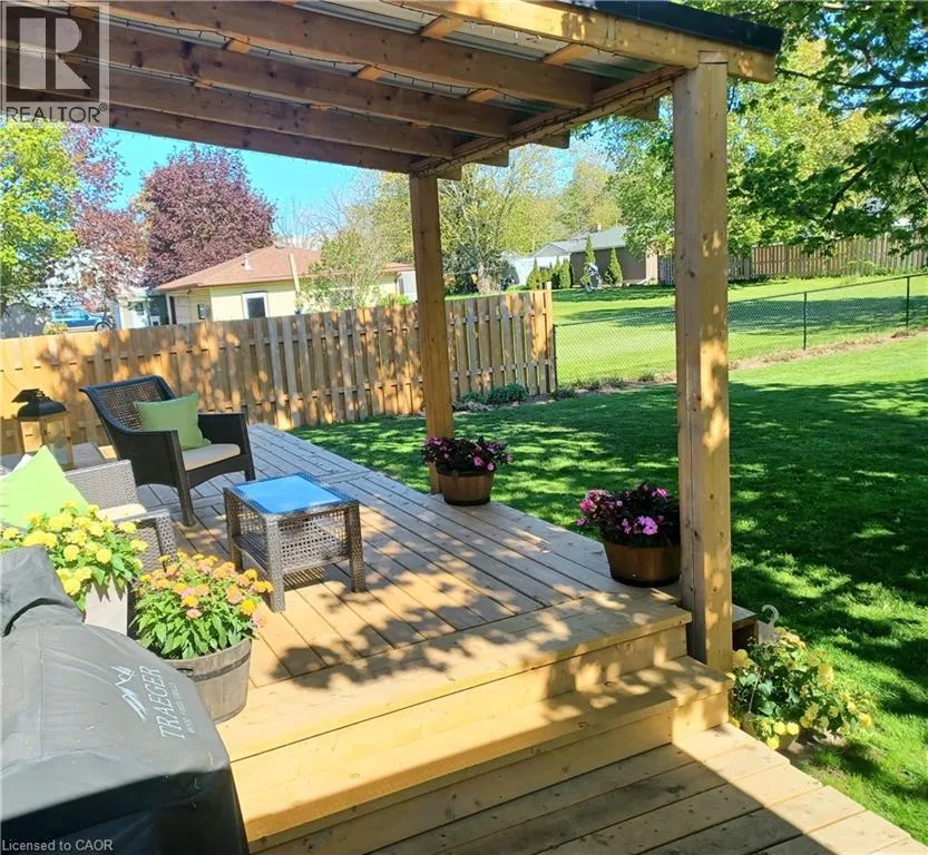 King St; North on Jarvis; Right on Dufferin Updated and solidly built bungalow with single car garage is situated in the desirable village of Burford. This 3 bedroom, 1 bathroom home has plenty of room for first timers, growing families or empty nesters. With an eat-in-kitchen, spacious living room, bedroom with walkout to multi-tier grilling deck and hot tub, large recreation room in the basement and plenty of room for storage. This home sits on a 60'x 193' lot with beautiful gardens and mature trees. Just minutes from the 403, 17 mins to Brantford, and 23 mins to Woodstock. Located in a quiet, family friendly neighbourhood and within walking distance to schools, parks, community centre, Churches and grocery store. Book your private viewing today. Don't miss out on this mint home. Just toss your keys on the table and start living!! Call for your private showing today. (id:27476)