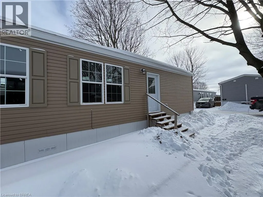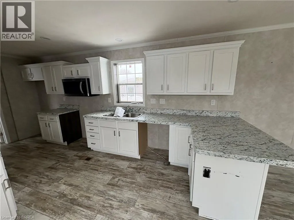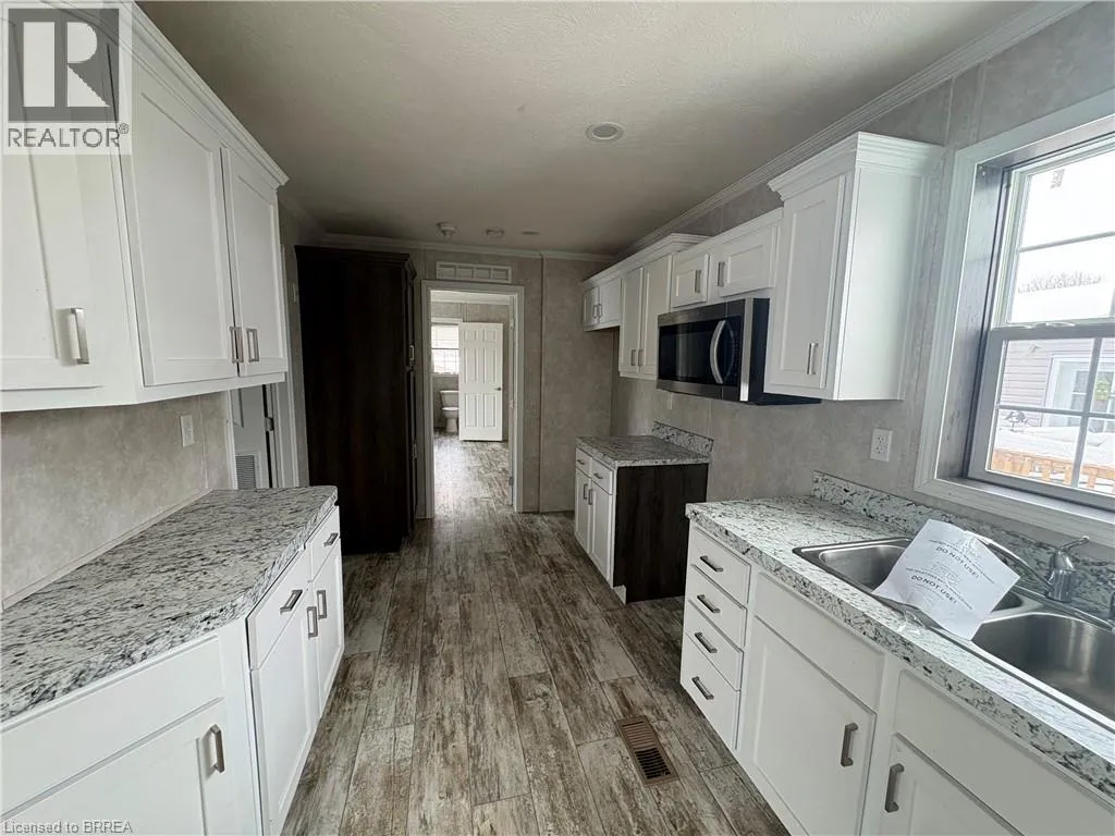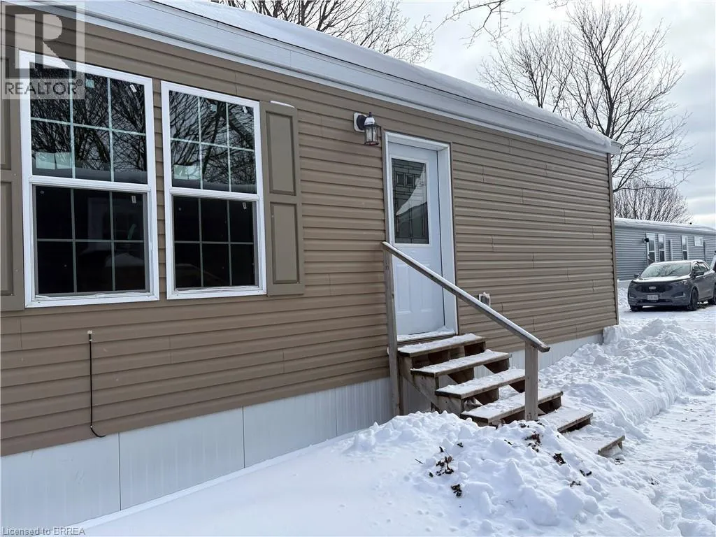 Twin Springs Park - Fourth Concession and W Quarter Townline Rd. Turn into the park from W Quarter Townline. Turn at your first left, then right onto Rosehill. Welcome to Twin Springs, a sought-after rural community offering a peaceful lifestyle with access to a lake, pond, and beaches for year-round enjoyment and social activities. Offering 2 bdrms and 2 baths. Ideally located just a short drive to Brantford, Paris, Ancaster, and Hamilton. This beautiful, newer modular home features a spacious, open-concept design filled with natural light from large windows, creating an airy and inviting atmosphere. The stylish, carpet-free interior flows seamlessly into a well-appointed kitchen complete with ample modern cabinetry,counter space and a peninsula island. Two interior accesses lead to an oversized deck, making it a fantastic space for hosting family and friends or simply relaxing outdoors. The home boasts two generous bedrooms and two full bathrooms, including a serene primary suite with double closets and a private ensuite. Additional highlights include a high-efficiency forced-air furnace, and low-maintenance living throughout. The very reasonable monthly land lease fee of approx. $600 includes water and property taxes. Possession is immediate. Excellent location in the newer section of the park. An exceptional opportunity to enjoy comfort, quality, and effortless living in a welcoming communityâwithout compromise. (id:27476)