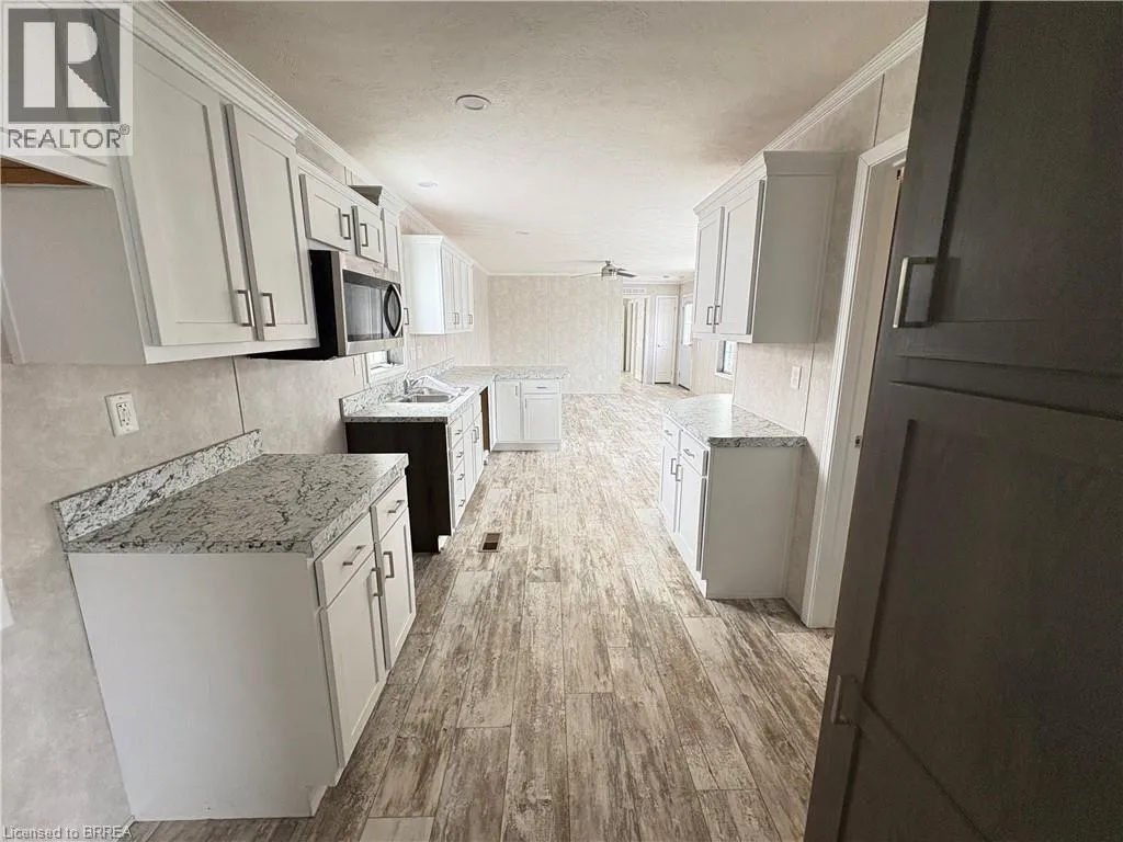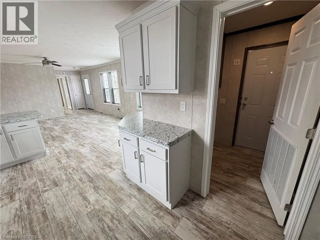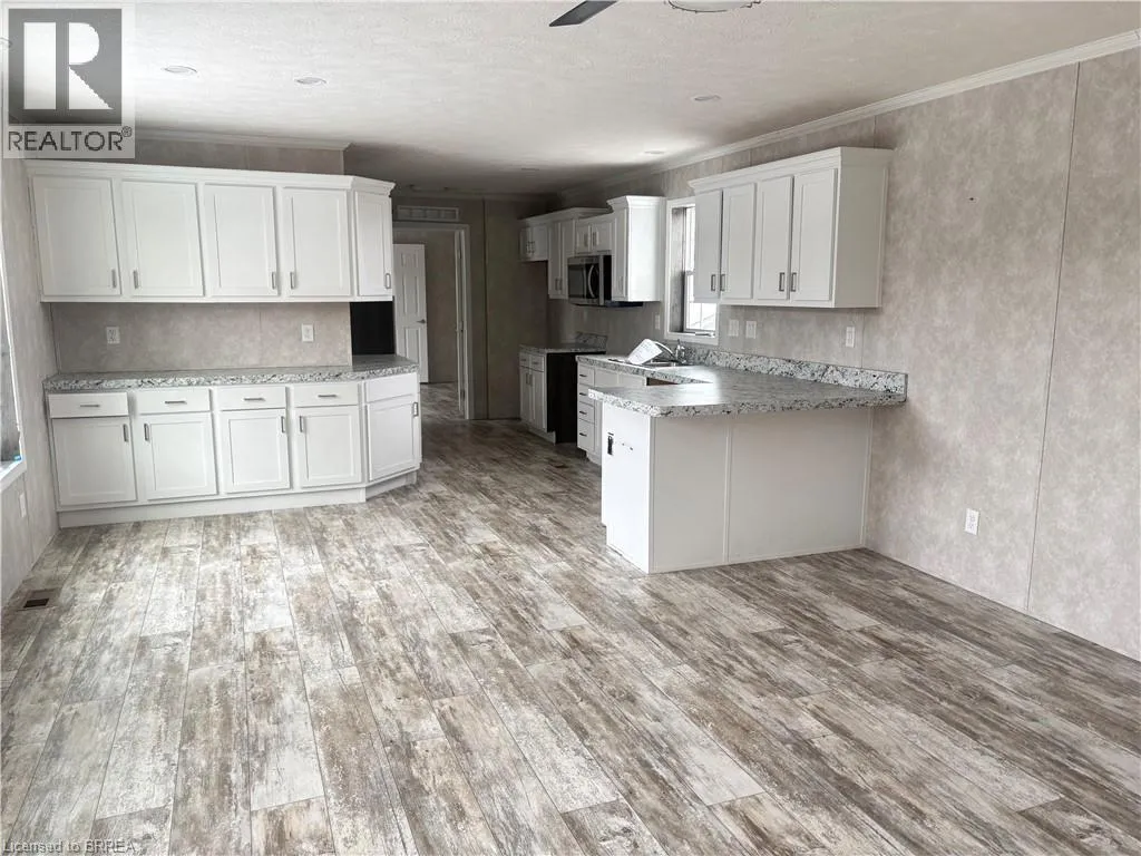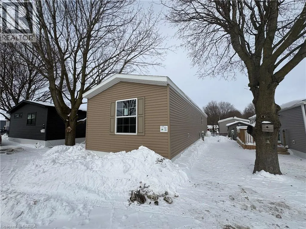 Twin Springs Park - Fourth Concession and W Quarter Townline Rd. Turn into the park from W Quarter Townline. Turn at your first left, then right onto Rosehill. Welcome to Twin Springs, a sought-after rural community offering a peaceful lifestyle with access to a lake, pond, and beaches for year-round enjoyment and social activities. Offering 2 bdrms and 2 baths. Ideally located just a short drive to Brantford, Paris, Ancaster, and Hamilton. This beautiful, newer modular home features a spacious, open-concept design filled with natural light from large windows, creating an airy and inviting atmosphere. The stylish, carpet-free interior flows seamlessly into a well-appointed kitchen complete with ample modern cabinetry,counter space and a peninsula island. Two interior accesses lead to an oversized deck, making it a fantastic space for hosting family and friends or simply relaxing outdoors. The home boasts two generous bedrooms and two full bathrooms, including a serene primary suite with double closets and a private ensuite. Additional highlights include a high-efficiency forced-air furnace, and low-maintenance living throughout. The very reasonable monthly land lease fee of approx. $600 includes water and property taxes. Possession is immediate. Excellent location in the newer section of the park. An exceptional opportunity to enjoy comfort, quality, and effortless living in a welcoming communityâwithout compromise. (id:27476)