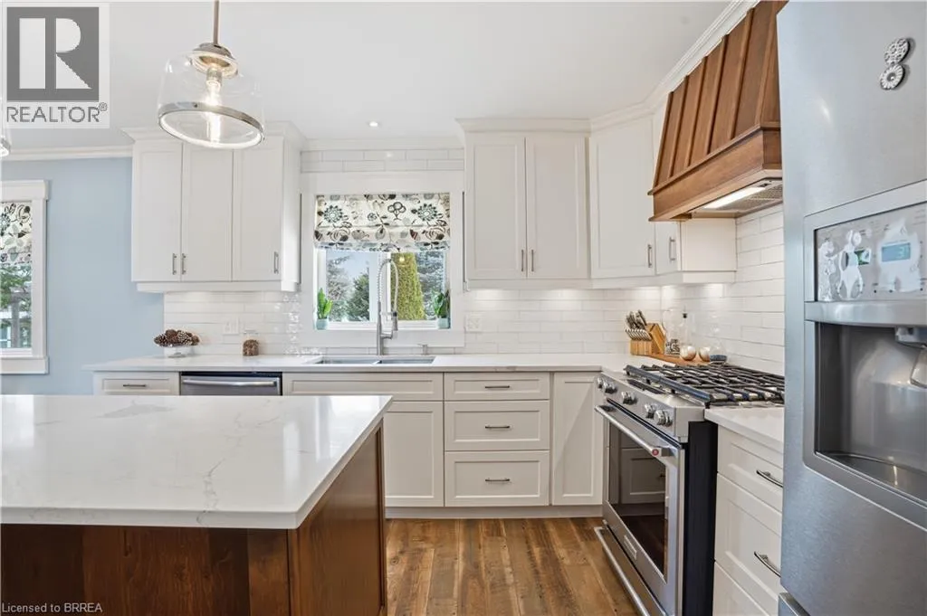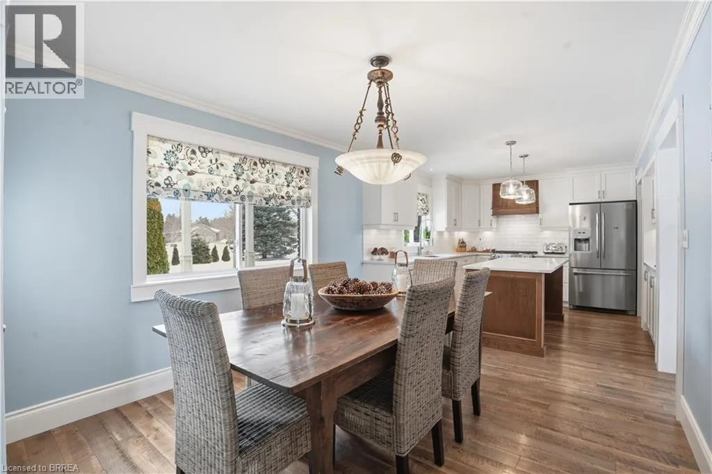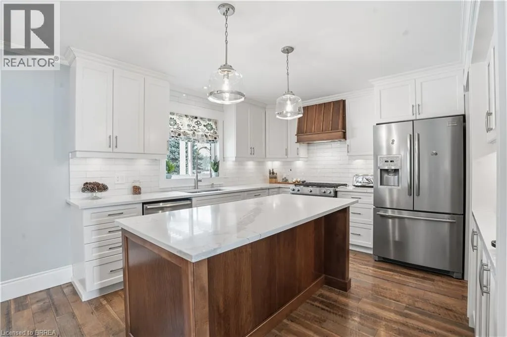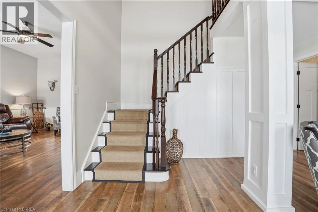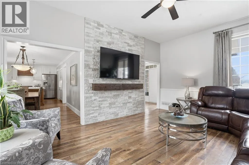 Heading South on Maple Ave S. turn right on Rutherford St and turn left onto Alexander St which turns into Brian Dr. Homes like this donât come along often. Set on an impressive 0.59-acre lot and surrounded by mature trees, this property offers a rare blend of privacy and in-town convenience. Located within walking distance to the arena, schools, fairgrounds, and the town centre â including banking, groceries, and pharmacy â youâll love the accessibility. Yet with the expansive lot and quiet setting, youâll almost forget youâre living in town. From the moment you arrive, the curb appeal makes an impression. A beautifully maintained exterior and double car garage set the tone for whatâs inside. Step through the front door into over 2,000 sq ft of thoughtfully finished living space. The main level is designed for both everyday comfort and effortless entertaining, featuring two generous living areas and an open-concept kitchen and dining space that naturally brings everyone together. A well-placed powder room serves guests with ease, while direct access from the garage leads into a practical mudroom and laundry area â keeping busy days organized and out of sight. Upstairs, all four bedrooms are located on the same level, offering a functional and family-friendly layout, along with two full bathrooms for added convenience. The lower level offers direct garage access and awaits your personal vision â whether thatâs an additional family room, home gym, or potential in-law suite. Step outside and youâll discover an entertainerâs dream. The expansive backyard is framed by mature trees for exceptional privacy, with endless space for activities, a cozy firepit, pergola, and a large deck ready for summer gatherings. Summers here are truly something special. Space. Privacy. Walkable convenience. This is small-town living at its finest. (id:27476)
