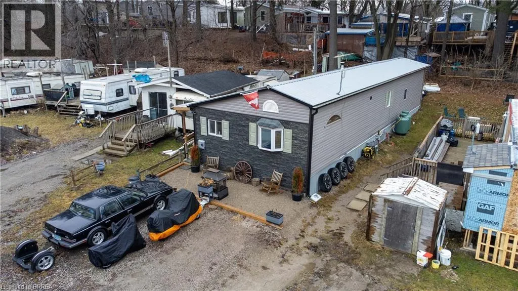 Twin Springs Park located S of Hwy 403, at intersection of W 1/4 Townline Rd & Conc. 4 Rd W of Towns Burford & Cathcart. Enter 1/4 line Rd Entrance, turn R at stop sign (Rock n Roll), go past Lucky Horseshoe, take L at Snappers Tr. Home on left #150 Welcome to Twin Springs! This beautifully updated modular home on Lot 150 offers a generous lot with serene pond views and is truly move-in ready. Featuring luxury vinyl flooring throughout, custom stainless steel appliances including a gas range and range hood, updated light fixtures, and a stunning modern accent wall with fireplace in the living room. The bathroom has been refreshed with updated tile and fixtures, and two modern sliding doors bring in plenty of natural light. Additional highlights include a durable metal roof, matching eavestroughs with leaf guards, and two bonus rooms perfect for a home office, hobby space, or guest accommodations. Monthly community fees of $563.16 include property taxes, community water, and septic (maintained by the park) for easy, low-maintenance living. Park ownership continues to make infrastructure improvements, with more planned. Please note this is an 11-month seasonal property (no occupancy in February), and propane tanks are not owned. Enjoy comfortable living in a peaceful setting â come see all that this Twin Springs gem has to offer! (id:27476)