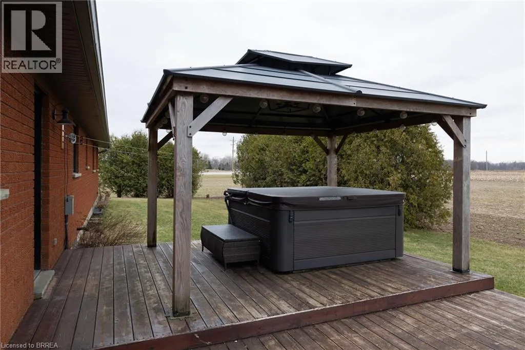 From the main intersection in Burford, head south on Maple Ave S until you get to the 10th concession and the property is on your left hand side (NE corner). Picturesque 25-acre hobby farm just south of Burford. Featuring 22 workable acres of sandy-loam soil, currently in a cash crop rotation (never grown ginseng). The spotlessly clean ranch home boasts 1,535 sf with a full, partially finished walk up basement (major in-law suite potential), 3+1 bedrooms, 2 full bathrooms and main floor laundry. Spacious kitchen with plenty of cupboard and counter space opening to the formal dining room and sprawling living room. Large windows throughout allow ample natural lighting. Step out to the back deck with pergola and hot tub (included) or walk around the lovely hardscaped walkway while taking in the truly phenomenal countryside views as far as the eye can see, not to mention those stunning sunsets. Also included are two older storage buildings, in need of some repair but with value for storage. This beautiful property must be seen to be fully appreciated. Book your private viewing today before this opportunity passes you by. (id:27476)