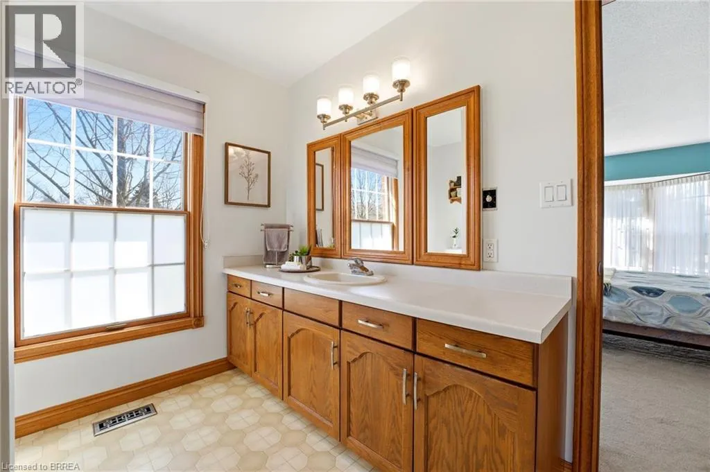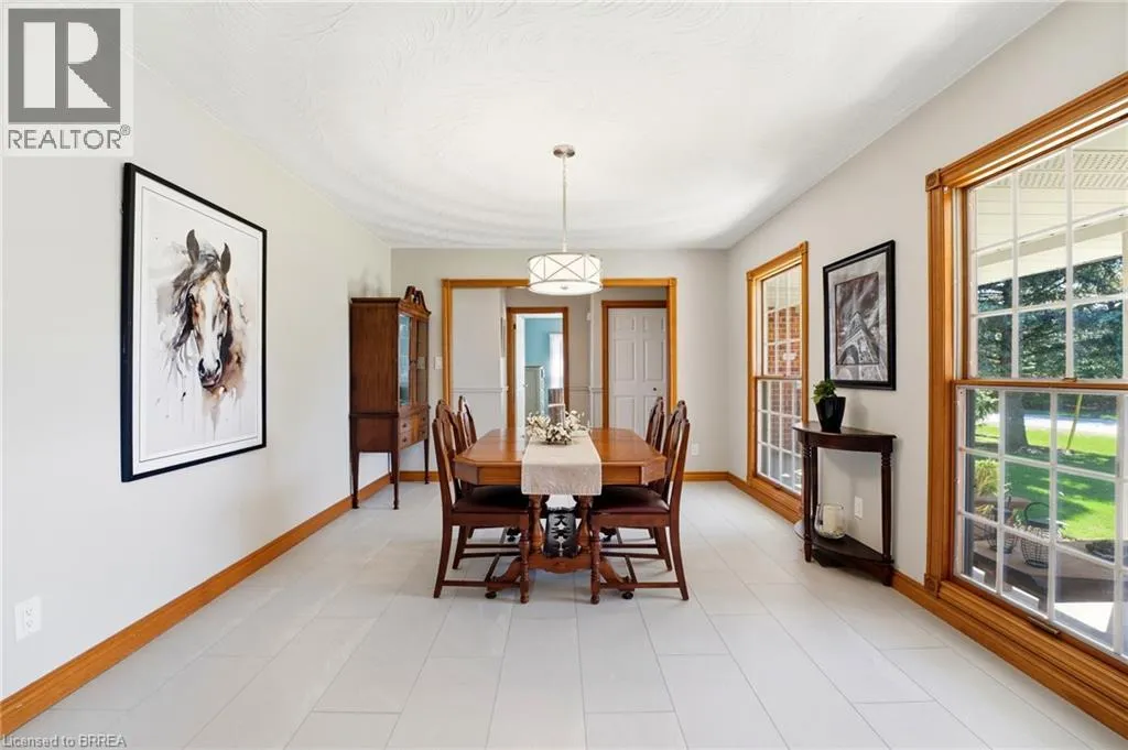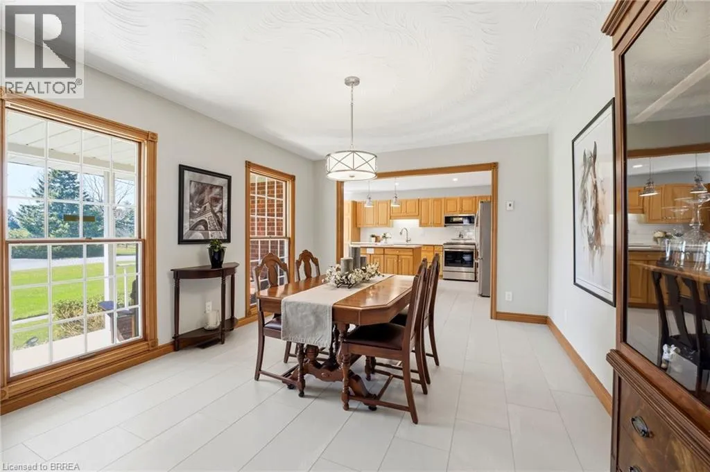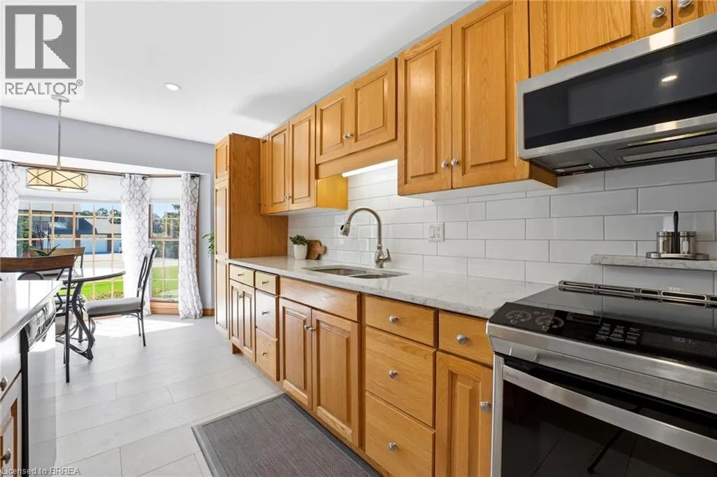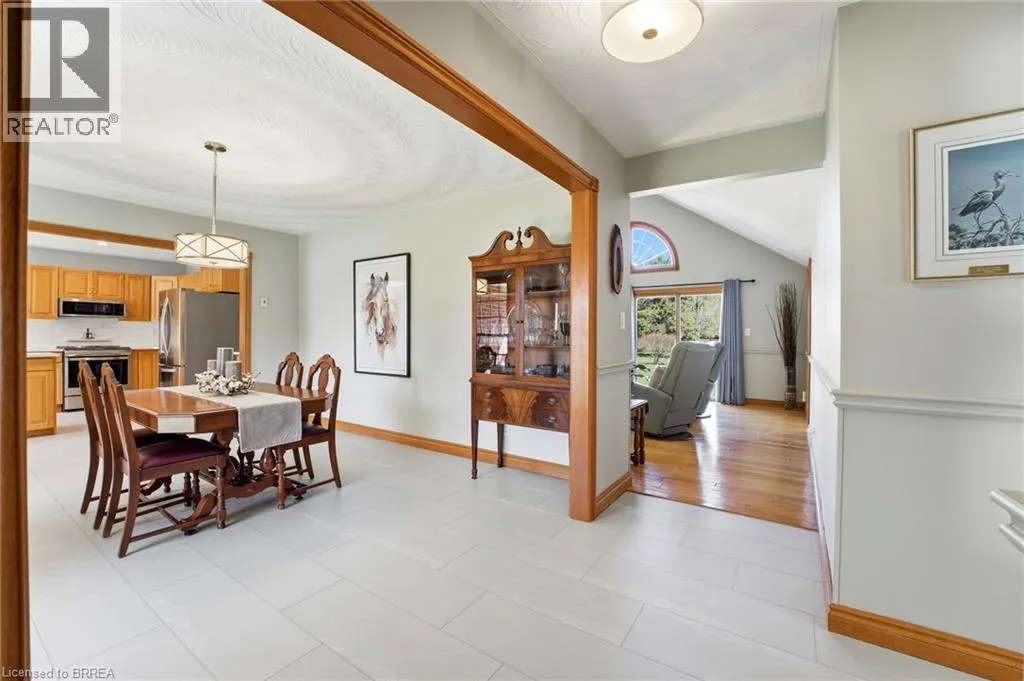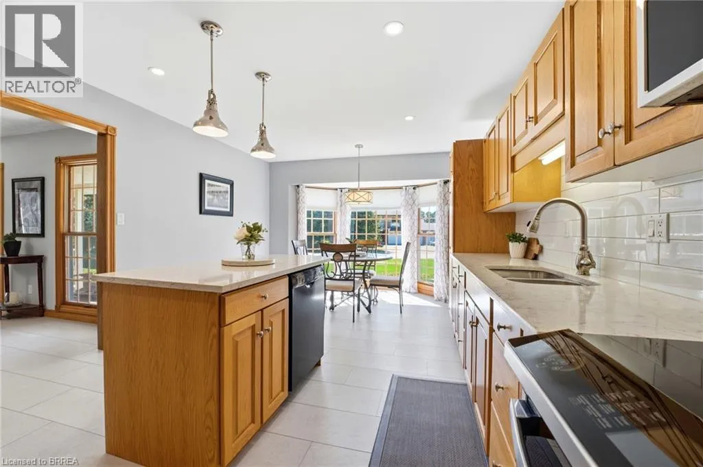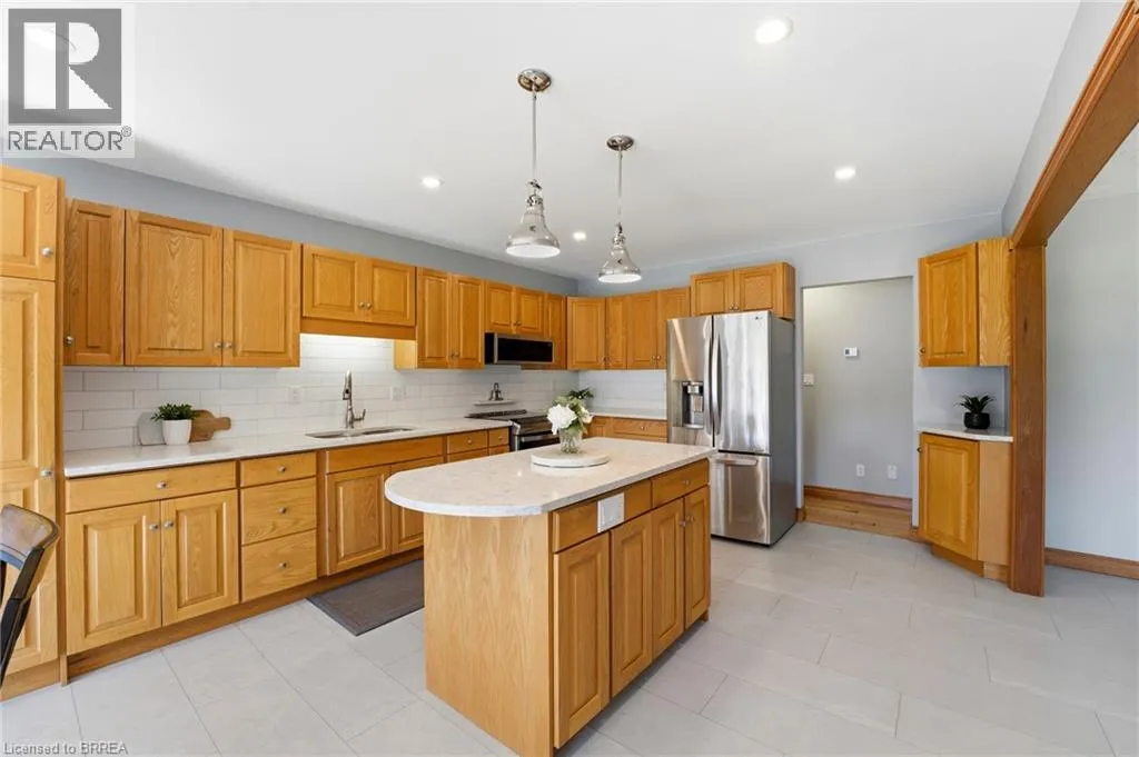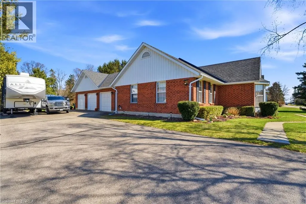 Melissa Avenue Welcome to this inviting brick bungalow nestled on 0.6 acres in the beautiful town of Burford. Offering 2,277 sq ft of thoughtfully designed main-level living space, this home features 3 bedrooms, including a spacious primary retreat complete with a large 3-piece ensuite and walk-in closet. The updated 4-piece main bathroom adds a modern touch. The bright and airy living room showcases impressive 14-foot cathedral ceilings and a cozy wood-burning fireplace âperfect for relaxing evenings. The kitchen has been tastefully updated with quartz countertops and a stylish backsplash (2021), complemented by luxury vinyl tile flooring in the kitchen and dining area (2022). Enjoy peace of mind with major updates including the roof (2019) and furnace and air conditioning (2023). Additional features include a sprinkler system (2021) and a heated 3-car attached garage (34'x20'), offering ample space for vehicles, storage, or hobbies. Step outside to the expansive backyardâideal for entertaining or spending quality time with family. A fantastic opportunity to enjoy comfort, space, and peaceful country-style living. (id:27476)
