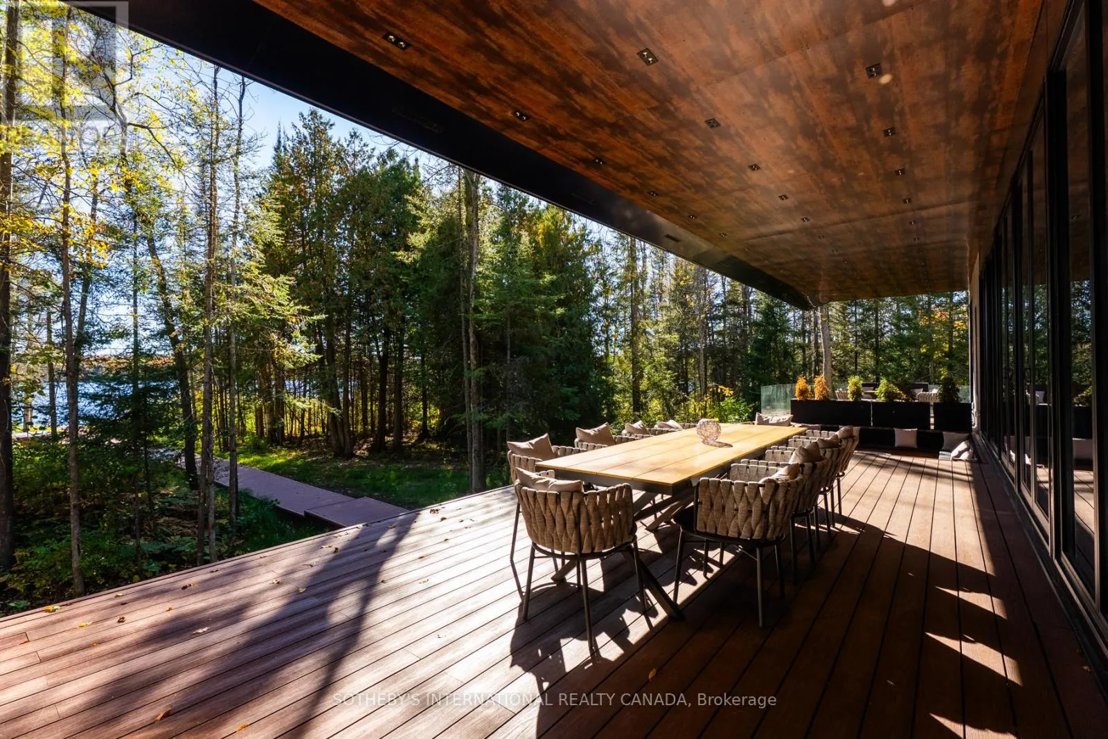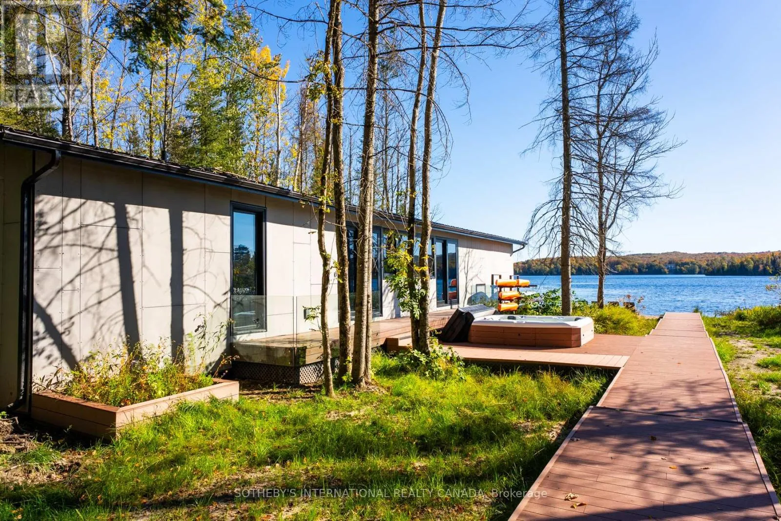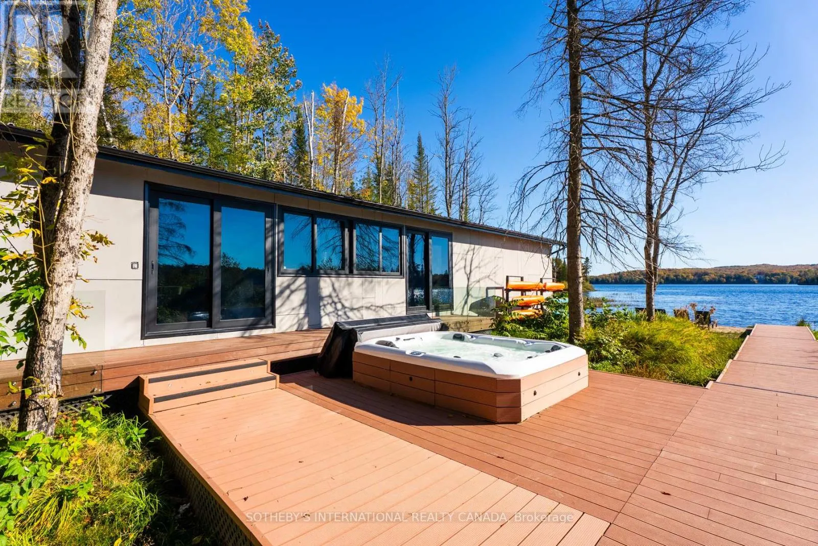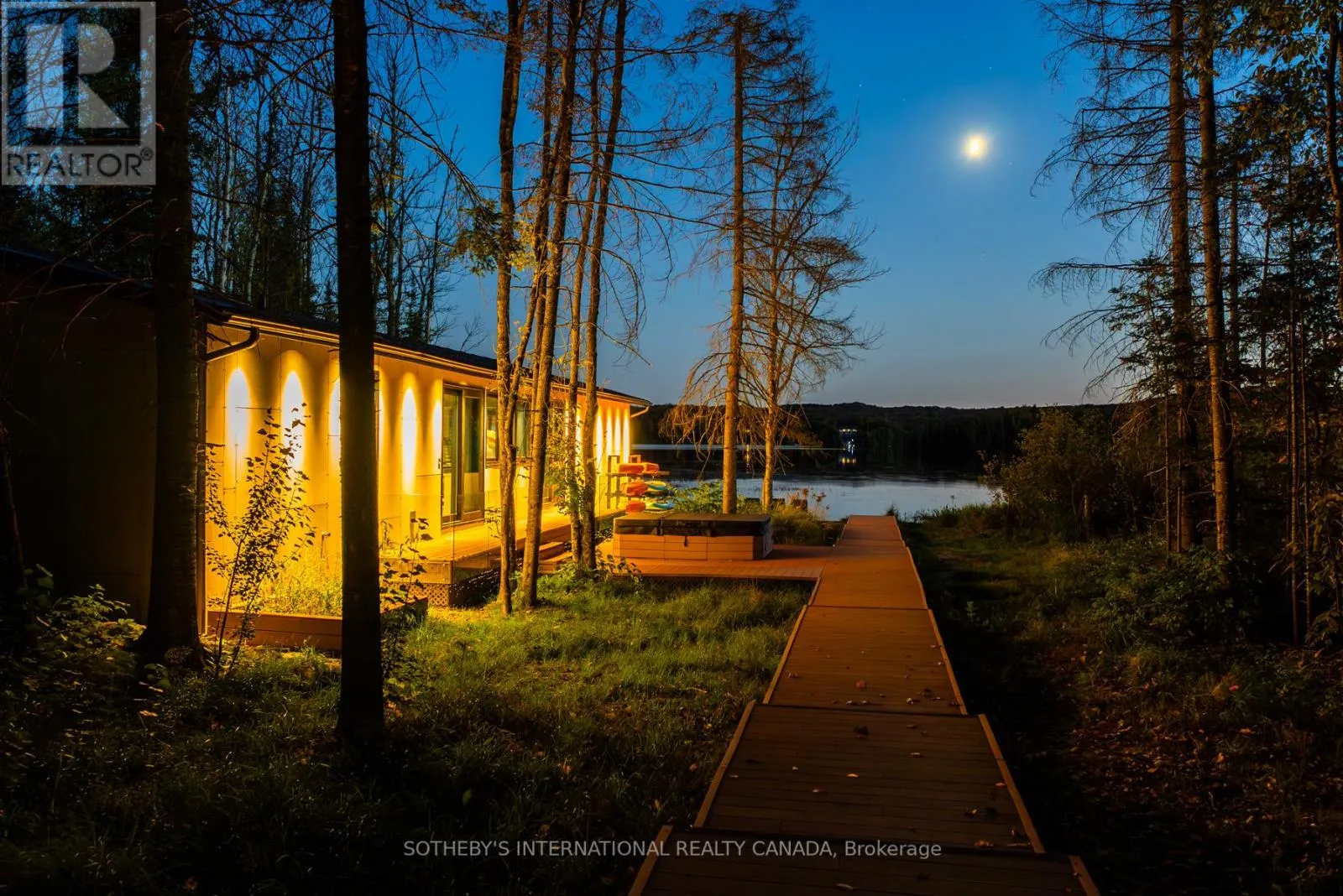 Cross Streets: Eli Side Rd/Pickerel-Jack Lake rd. ** Directions: Follow your GPS. Discover your own private waterfront sanctuary in the desirable Burk's falls area on secluded Jack Lake with this Modern 8-bedroom, 6-bathroom lakefront estate offering on a 6+ acres level lot with 208ft of private shoreline in the Burks Falls area. The unique layout of this expansive single storey bungalow is specifically designed for both grand entertaining and a peaceful retreat. The mid-century modern inspired architecture features luxury finishes and minimalist elegance to compliment the beauty of this natural setting. Huge floor to ceiling window reveal jaw-dropping panoramic lake & forest views framed by towering trees. In addition, the massive open-concept living space, including triple-sided fireplace, chefs kitchen (double islands, dual dishwashers, hidden coffee station), offer multiple generous gathering zones plus 4 separate bedroom wings for privacy with 8 bedrooms and 6 bathrooms including 2 king primary suites with spa-inspired ensuites and private outdoor patios + 2 queen bedrooms each with their own private bath 2 oversized bunk bed-style rooms (queen + single) and 2 office/guest Murphy-bed rooms. Exceptional outdoor amenities features a one of a kind 1,570 ft covered deck with 14' canopy ceiling, an outdoor kitchen/BBQ & prep area, outdoor dining area & a sunken lake facing seating area with a large propane fire-table. Guests will marvel at the lakeside Recreation & wellness Building (1,950 ft): featuring an outdoor 8-person hot tub, a private pole dock w/ swim ladder and mooring cleats plus Indoor sauna, full gym, games (pool table, ping-pong) along with a convenient dry boathouse with marine railway boat ramps. There are two separate firepits overall, a four bay garage with poured concrete a kids "jungle gym" playground area , an outdoor volley court, picnic spaces, kayaks & paddle boards included. Enjoy this spectacular turnkey, waterfront compound ready to host family, friends, retreats or luxury high-end rentals. (id:27476)