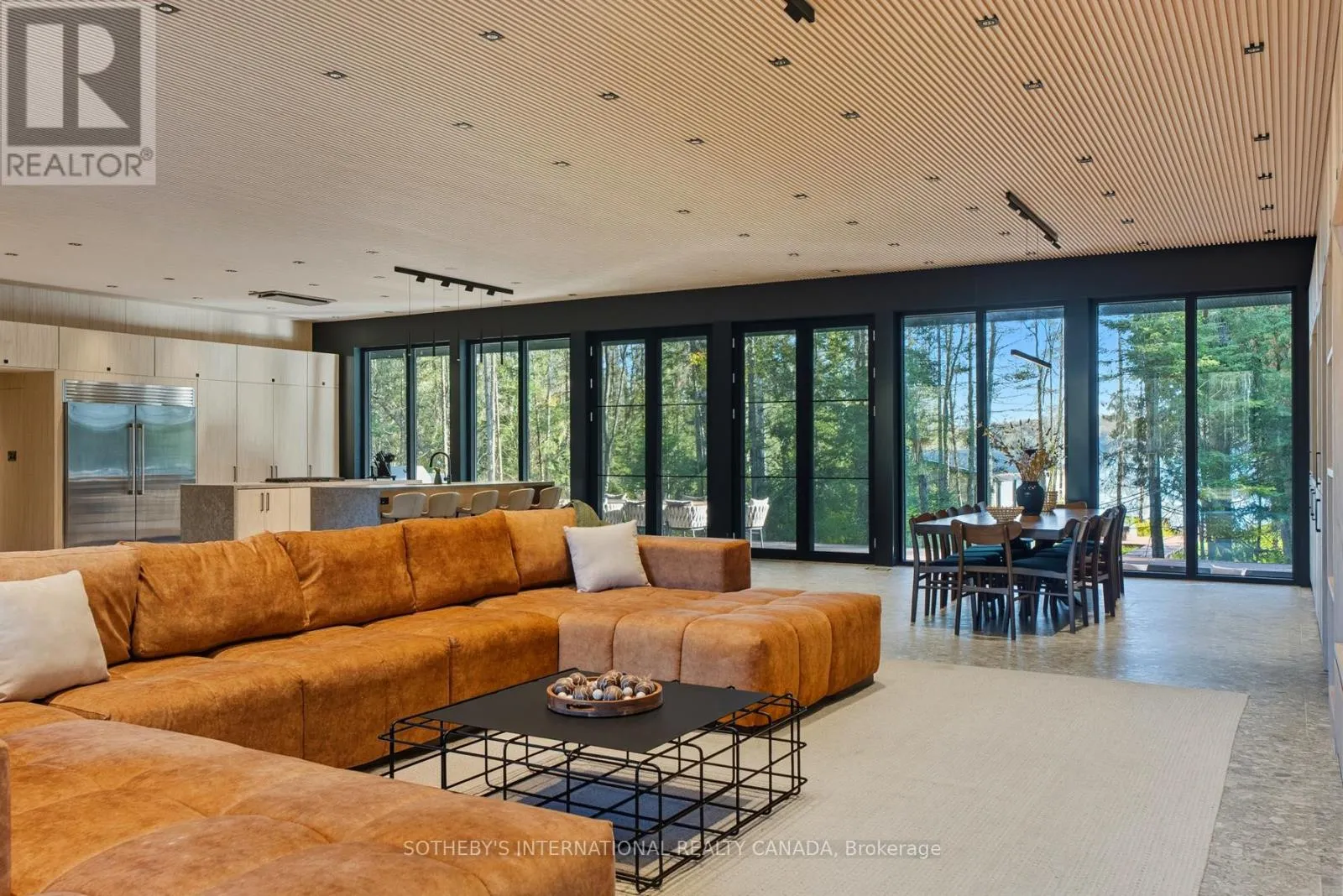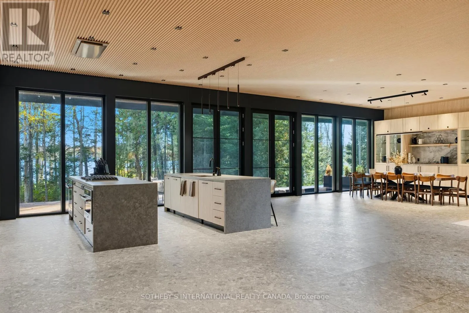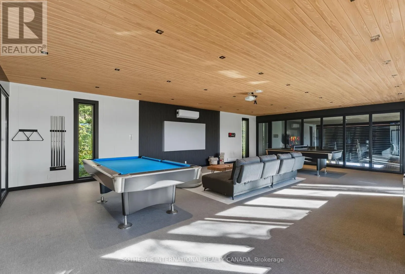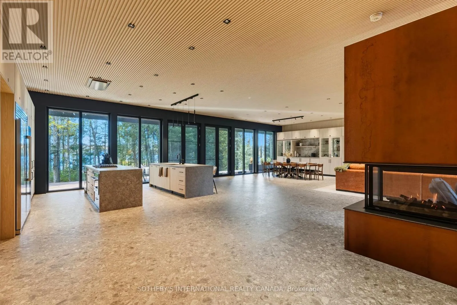 Cross Streets: Eli Side Rd/Pickerel-Jack Lake rd. ** Directions: Follow your GPS. Discover your own private waterfront sanctuary in the desirable Burk's falls area on secluded Jack Lake with this Modern 8-bedroom, 6-bathroom lakefront estate offering on a 6+ acres level lot with 208ft of private shoreline in the Burks Falls area. The unique layout of this expansive single storey bungalow is specifically designed for both grand entertaining and a peaceful retreat. The mid-century modern inspired architecture features luxury finishes and minimalist elegance to compliment the beauty of this natural setting. Huge floor to ceiling window reveal jaw-dropping panoramic lake & forest views framed by towering trees. In addition, the massive open-concept living space, including triple-sided fireplace, chefs kitchen (double islands, dual dishwashers, hidden coffee station), offer multiple generous gathering zones plus 4 separate bedroom wings for privacy with 8 bedrooms and 6 bathrooms including 2 king primary suites with spa-inspired ensuites and private outdoor patios + 2 queen bedrooms each with their own private bath 2 oversized bunk bed-style rooms (queen + single) and 2 office/guest Murphy-bed rooms. Exceptional outdoor amenities features a one of a kind 1,570 ft covered deck with 14' canopy ceiling, an outdoor kitchen/BBQ & prep area, outdoor dining area & a sunken lake facing seating area with a large propane fire-table. Guests will marvel at the lakeside Recreation & wellness Building (1,950 ft): featuring an outdoor 8-person hot tub, a private pole dock w/ swim ladder and mooring cleats plus Indoor sauna, full gym, games (pool table, ping-pong) along with a convenient dry boathouse with marine railway boat ramps. There are two separate firepits overall, a four bay garage with poured concrete a kids "jungle gym" playground area , an outdoor volley court, picnic spaces, kayaks & paddle boards included. Enjoy this spectacular turnkey, waterfront compound ready to host family, friends, retreats or luxury high-end rentals. (id:27476)