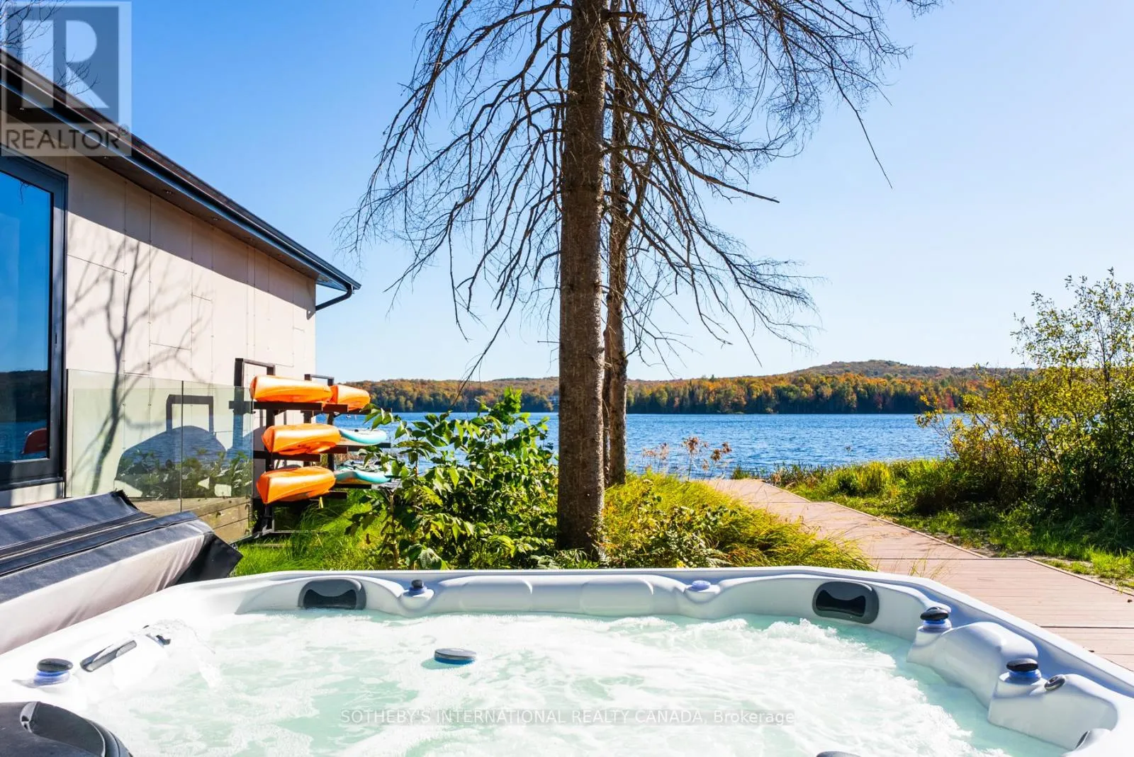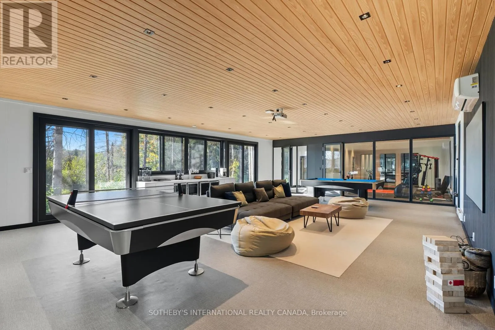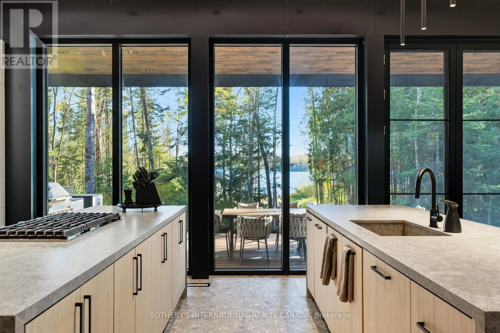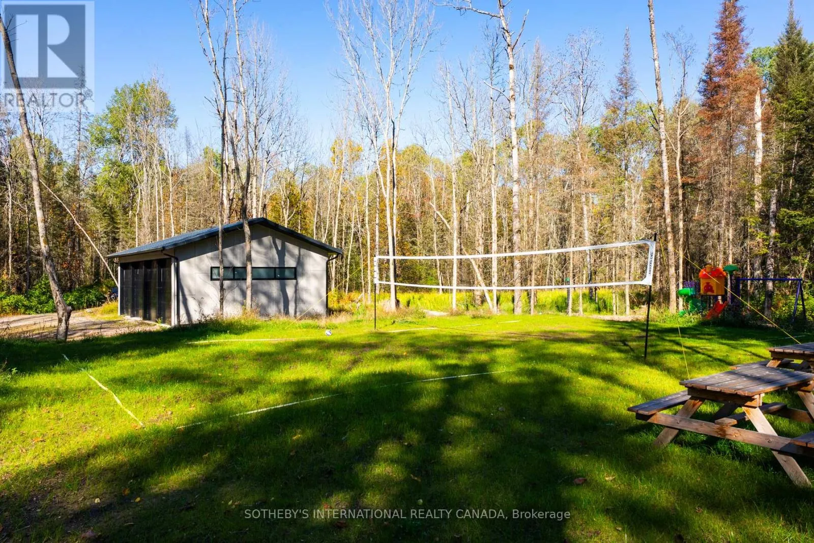 Cross Streets: Eli Side Rd/Pickerel-Jack Lake rd. ** Directions: Follow your GPS. Discover your own private waterfront sanctuary in the desirable Burk's falls area on secluded Jack Lake with this Modern 8-bedroom, 6-bathroom lakefront estate offering on a 6+ acres level lot with 208ft of private shoreline in the Burks Falls area. The unique layout of this expansive single storey bungalow is specifically designed for both grand entertaining and a peaceful retreat. The mid-century modern inspired architecture features luxury finishes and minimalist elegance to compliment the beauty of this natural setting. Huge floor to ceiling window reveal jaw-dropping panoramic lake & forest views framed by towering trees. In addition, the massive open-concept living space, including triple-sided fireplace, chefs kitchen (double islands, dual dishwashers, hidden coffee station), offer multiple generous gathering zones plus 4 separate bedroom wings for privacy with 8 bedrooms and 6 bathrooms including 2 king primary suites with spa-inspired ensuites and private outdoor patios + 2 queen bedrooms each with their own private bath 2 oversized bunk bed-style rooms (queen + single) and 2 office/guest Murphy-bed rooms. Exceptional outdoor amenities features a one of a kind 1,570 ft covered deck with 14' canopy ceiling, an outdoor kitchen/BBQ & prep area, outdoor dining area & a sunken lake facing seating area with a large propane fire-table. Guests will marvel at the lakeside Recreation & wellness Building (1,950 ft): featuring an outdoor 8-person hot tub, a private pole dock w/ swim ladder and mooring cleats plus Indoor sauna, full gym, games (pool table, ping-pong) along with a convenient dry boathouse with marine railway boat ramps. There are two separate firepits overall, a four bay garage with poured concrete a kids "jungle gym" playground area , an outdoor volley court, picnic spaces, kayaks & paddle boards included. Enjoy this spectacular turnkey, waterfront compound ready to host family, friends, retreats or luxury high-end rentals. (id:27476)
