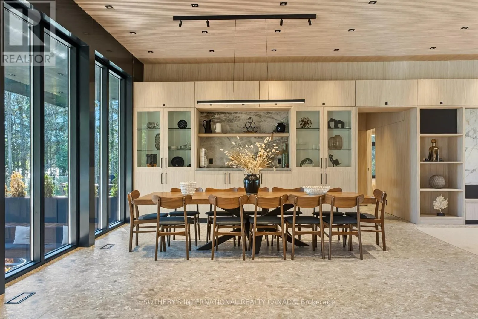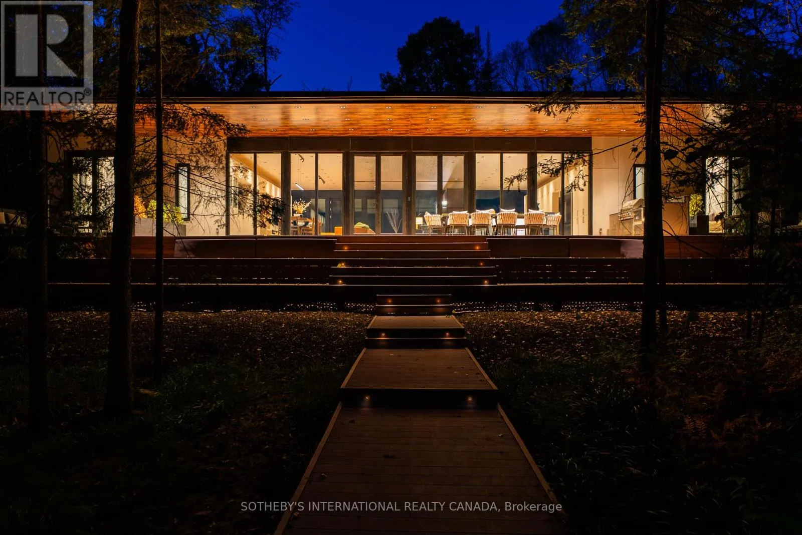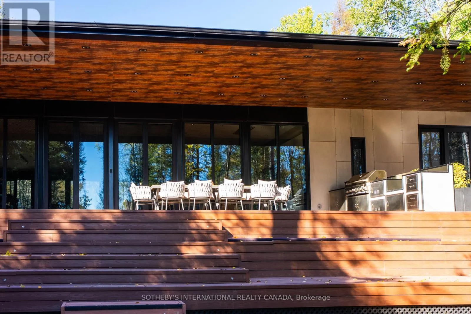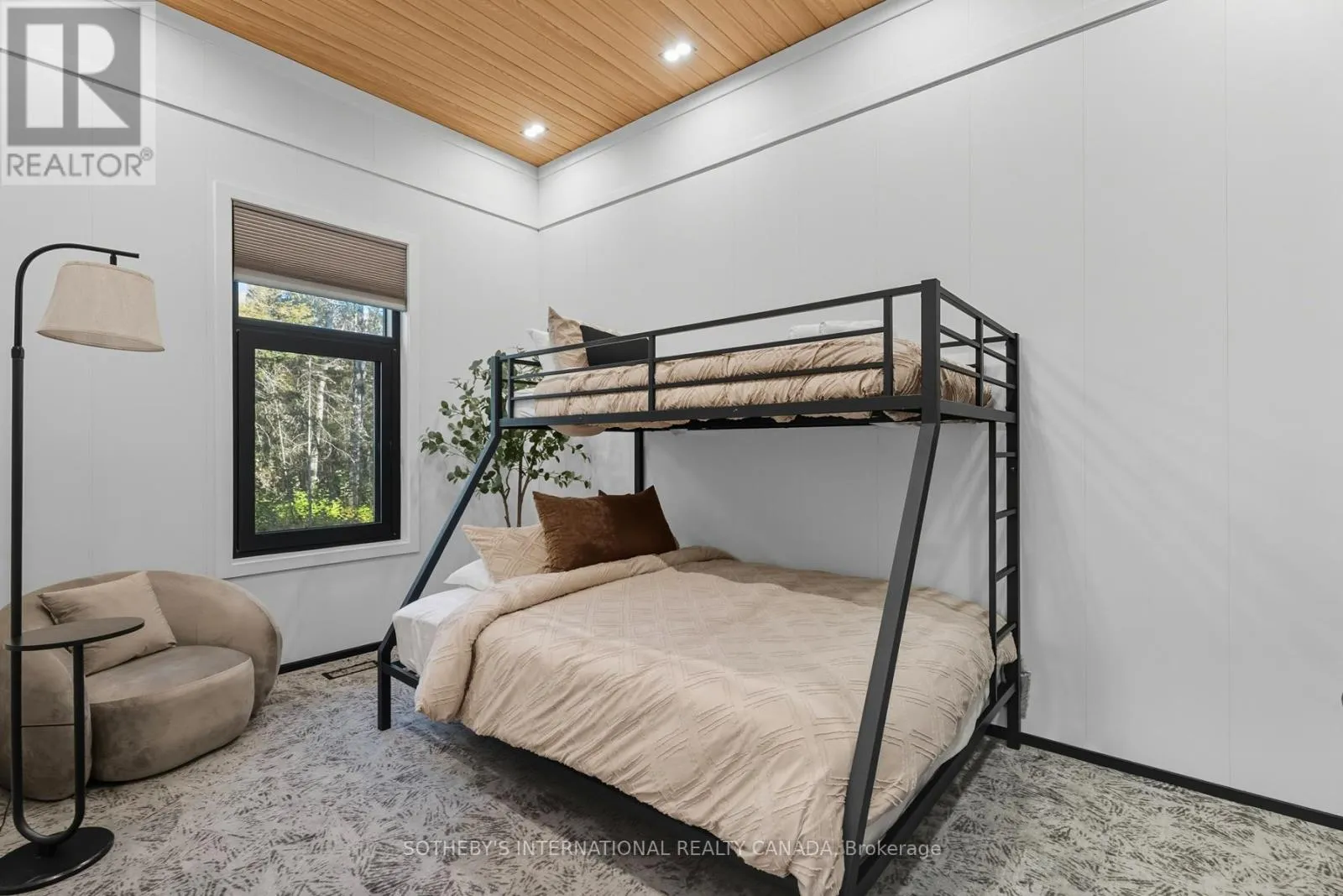 Cross Streets: Eli Side Rd/Pickerel-Jack Lake rd. ** Directions: Follow your GPS. Discover your own private waterfront sanctuary in the desirable Burk's falls area on secluded Jack Lake with this Modern 8-bedroom, 6-bathroom lakefront estate offering on a 6+ acres level lot with 208ft of private shoreline in the Burks Falls area. The unique layout of this expansive single storey bungalow is specifically designed for both grand entertaining and a peaceful retreat. The mid-century modern inspired architecture features luxury finishes and minimalist elegance to compliment the beauty of this natural setting. Huge floor to ceiling window reveal jaw-dropping panoramic lake & forest views framed by towering trees. In addition, the massive open-concept living space, including triple-sided fireplace, chefs kitchen (double islands, dual dishwashers, hidden coffee station), offer multiple generous gathering zones plus 4 separate bedroom wings for privacy with 8 bedrooms and 6 bathrooms including 2 king primary suites with spa-inspired ensuites and private outdoor patios + 2 queen bedrooms each with their own private bath 2 oversized bunk bed-style rooms (queen + single) and 2 office/guest Murphy-bed rooms. Exceptional outdoor amenities features a one of a kind 1,570 ft covered deck with 14' canopy ceiling, an outdoor kitchen/BBQ & prep area, outdoor dining area & a sunken lake facing seating area with a large propane fire-table. Guests will marvel at the lakeside Recreation & wellness Building (1,950 ft): featuring an outdoor 8-person hot tub, a private pole dock w/ swim ladder and mooring cleats plus Indoor sauna, full gym, games (pool table, ping-pong) along with a convenient dry boathouse with marine railway boat ramps. There are two separate firepits overall, a four bay garage with poured concrete a kids "jungle gym" playground area , an outdoor volley court, picnic spaces, kayaks & paddle boards included. Enjoy this spectacular turnkey, waterfront compound ready to host family, friends, retreats or luxury high-end rentals. (id:27476)
