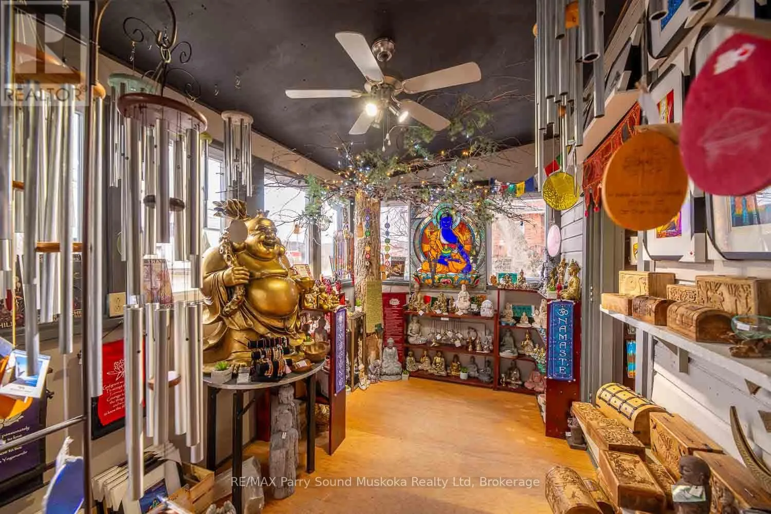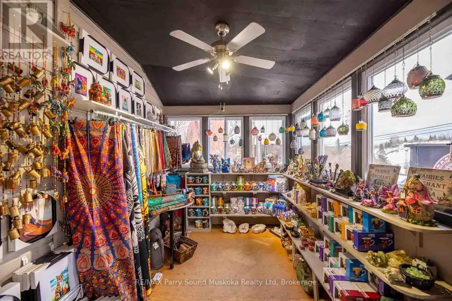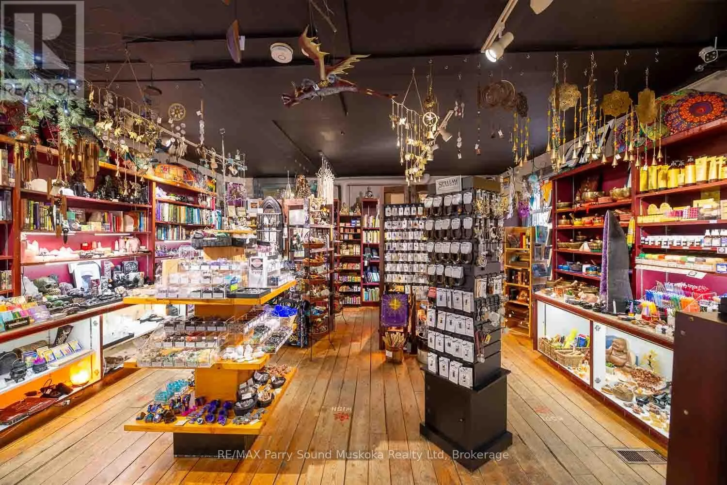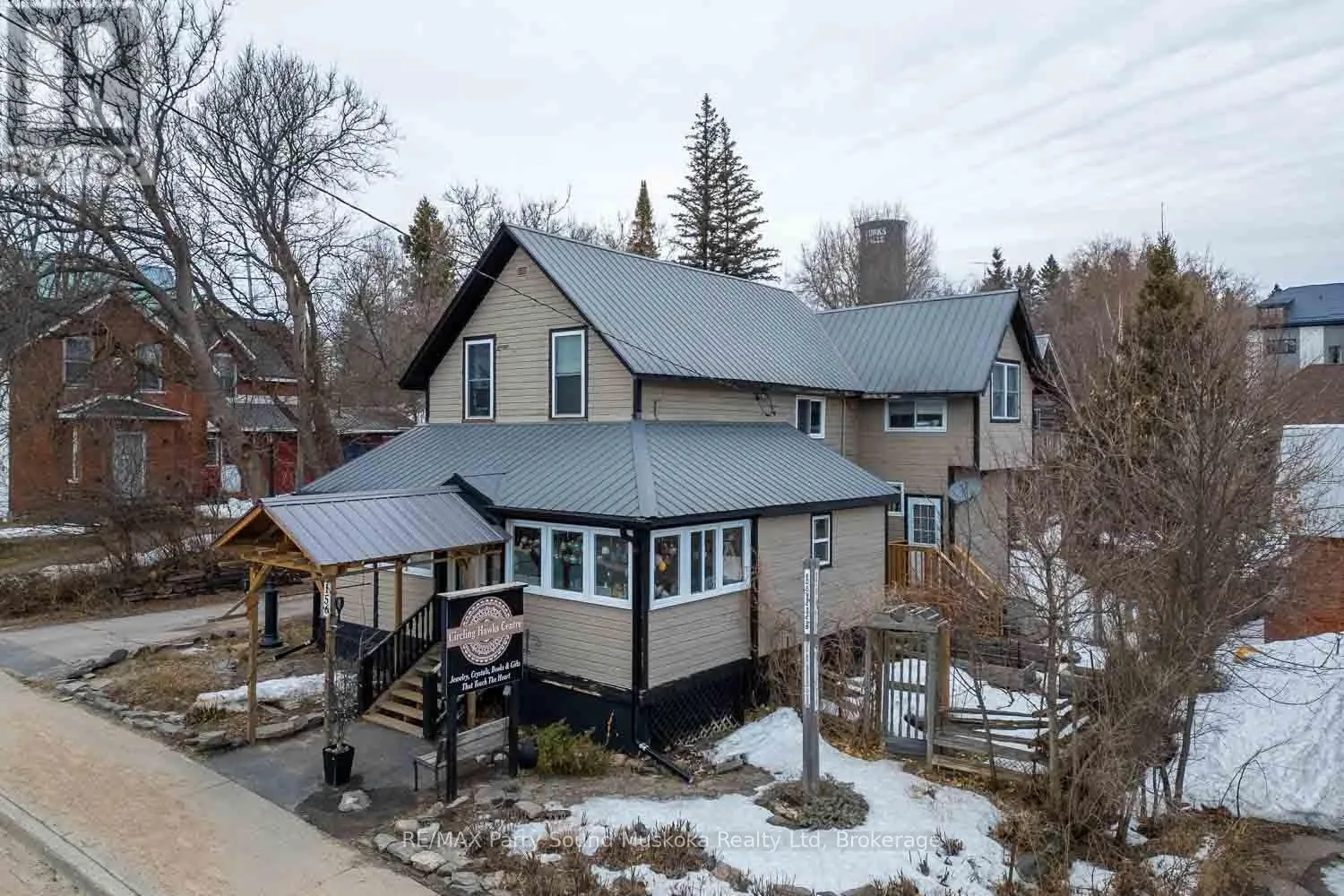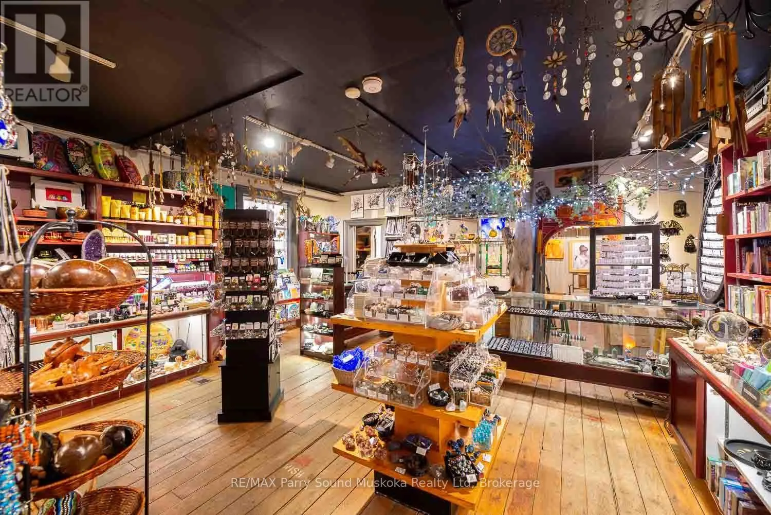 Cross Streets: Ontario & Queen. ** Directions: Hwy #11 to Ontario St. Embrace this unique opportunity to continue the saga of an acclaimed business in the heart of the town of Burks Falls. Recognized as a destination for customers from all over North America, Circling Hawks has been grounded in the community for over 35 years. Much more than just a store, the Centre offers a peaceful retreat sharing knowledge and workshops while providing a harmonious blend of diverse spiritual products such as art, books, crystals, jewellery and gifts. Located directly on the main street, the inviting store front offers high visibility welcoming both foot and vehicle traffic with ample parking. The 800 sq.ft., one bedroom apartment above the store offers a private living space complete with a beautiful stone fire place, an office, a 3pc bathroom as well as a bright, open kitchen with a walk out to a deck overlooking the gardens. Circling Hawks is well known for this whimsical, Magic Garden that graces both the yard and area around the barn. Nestled amongst this natural space of flowers, shrubs and trees, spiritual and artistic elements help create a calming energy that invites people to pause. Explore this enchanting outdoor space at ground level or admire it from the raised deck or elevated walkway on your way to the spacious studio, located on the upper level of the barn. The ground level of the barn features a workshop and storage area. Just a over a 20 minute drive from the town of Huntsville, this property also features natural gas heat, central air conditioning and generator backup. (id:27476)
