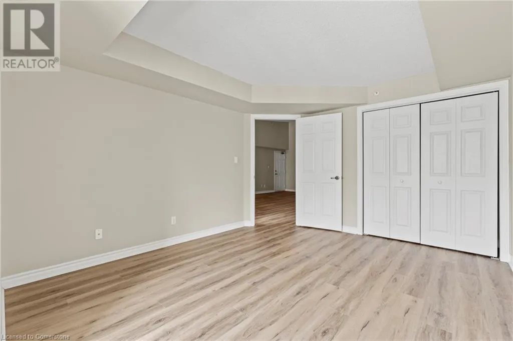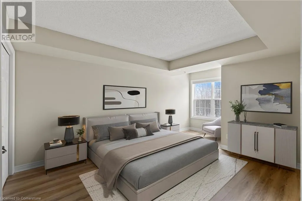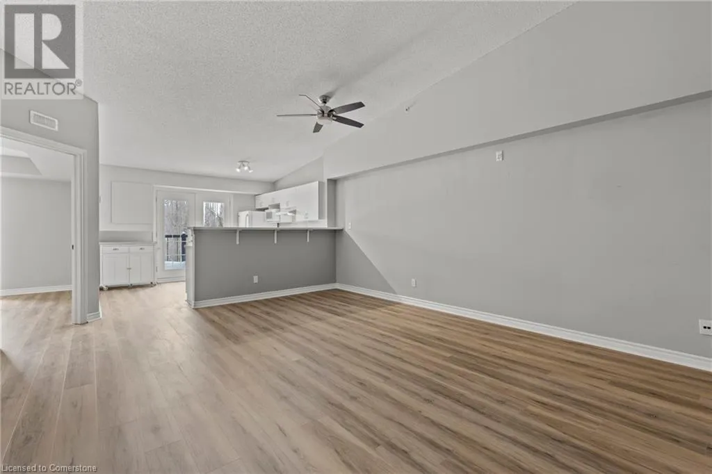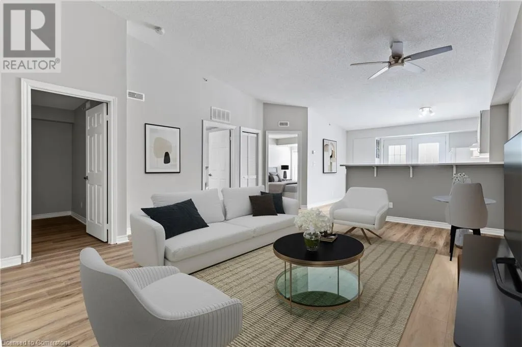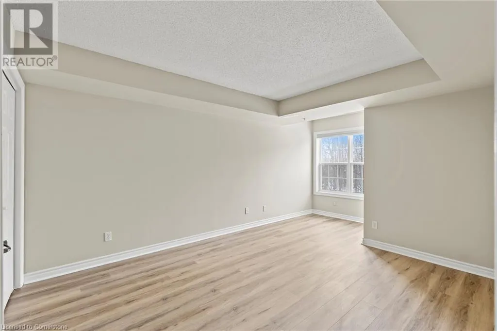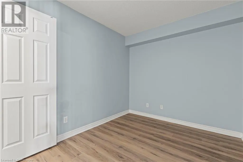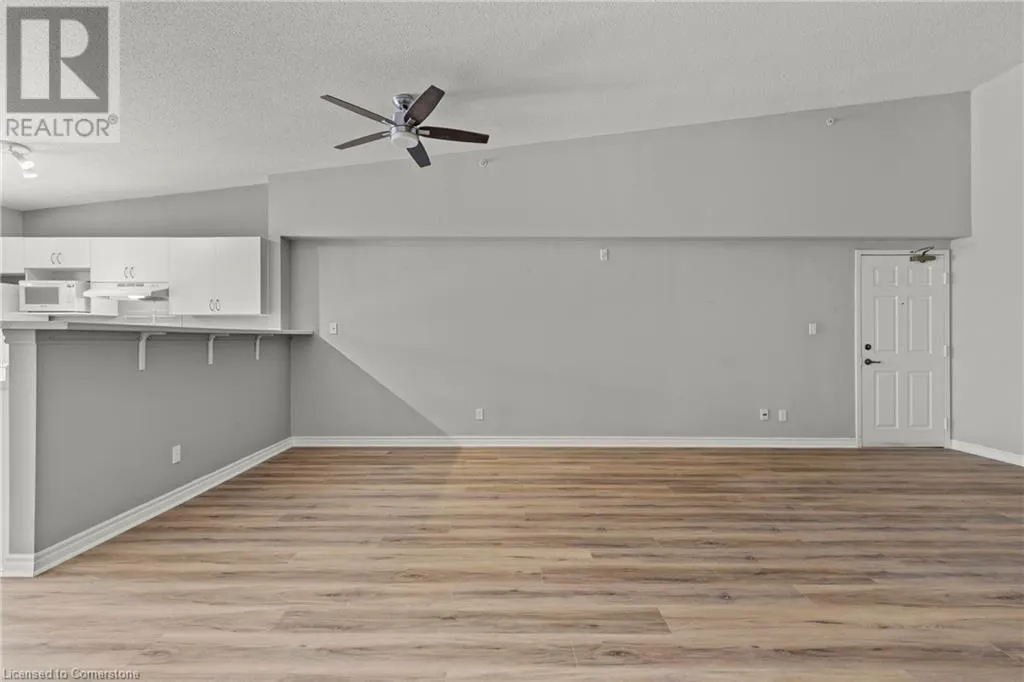 East on Appleby Line, just North of Upper Middle; entrance on RHS. Building is at the back on LHS. Welcome home to this top floor, beautifully updated, 1 + 1 bedroom open- concept luxury condo. The Hampton is a large, coveted floor-plan in the Orchard Uptown Building. This 4th floor unit has soaring vaulted ceilings, and no upper neighbours! Offering ultimate privacy, backing on to protected woodlands, perfect for birdwatching from your large, private balcony. Conveniently located across from the Millcroft Shopping Centre and with public transit available, everything you need is a few steps away. This condo has been tastefully updated in January 2025 with luxurious vinyl-plank flooring throughout, new kitchen counters, and is painted in a neutral hue. Orchard Uptown Complex has an auxiliary building which houses a fully equipped gym, sauna, and party room. Included with this unit is a storage locker, 1 underground parking spot (climate-controlled garage), which even has a car washing station! There is ample visitor parking on the surface above, and this building has an elevator. This location cannot be beat, and this condo is move-in ready! Quick access to highways and GO train. (id:27476)