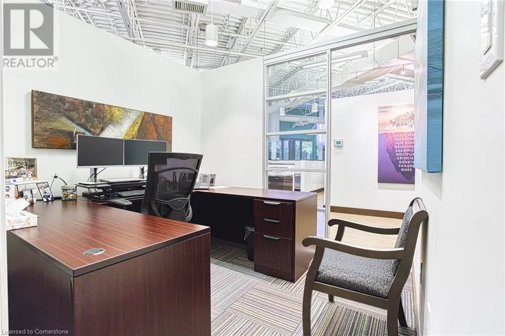 Fraser Drive and Harvester Road Introducing a sleek and contemporary office space poised at 980 Fraser Drive suite 105, Burlington. Nestled conveniently just off Walkers Line, this modern haven is primed to elevate your business presence. Spanning across 5,200 sqft, the layout of this office space is thoughtfully crafted to accommodate diverse business needs. From open-concept work areas to private offices and meeting rooms, every corner is optimized for efficiency and collaboration. The sleek finishes and contemporary fixtures add a touch of sophistication, while ergonomic furniture ensures comfort during long work hours. State-of-the-art technology infrastructure caters to the demands of modern businesses, keeping you seamlessly connected and productive. Located in the heart of Burlington, the convenience of the location cannot be overstated. With easy access to major transportation routes and ample parking facilities, commuting to and from the office is a breeze for both employees and clients alike. Whether you're a budding startup, an established corporation, or anything in between, this office space offers the perfect canvas to realize your business aspirations. Elevate your brand presence and unlock endless possibilities at 980 Fraser Drive suite 105. Book your viewing today and step into the future of workspace excellence. (id:27476)