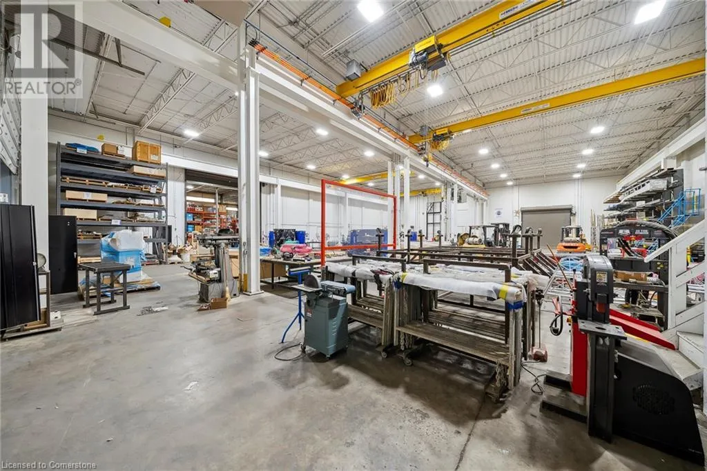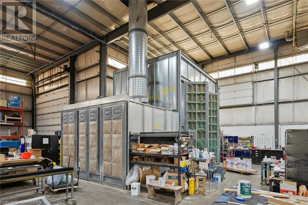 North Service Rd / Heritage Rd A freestanding building featuring heavy power with three separate services to the building (1,600 Amps, 600 amps, and 400 amps), oversized doors, cranes, and a paint booth, with a dust collection system. Very clean white boxed warehouse and epoxy floors, with the ability to have outside storage in the rear. Five-ton cranes, with ten-ton tandem lifting capacity. Conveniently located at QEW and Appleby Line, great access to Hwy 403 and many amenities. (id:27476)