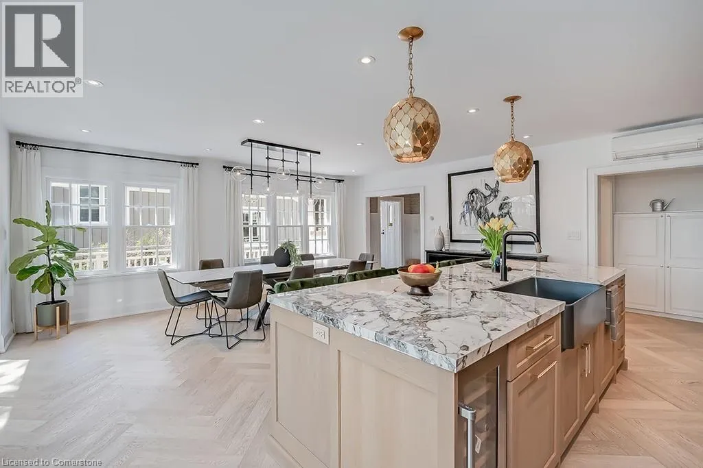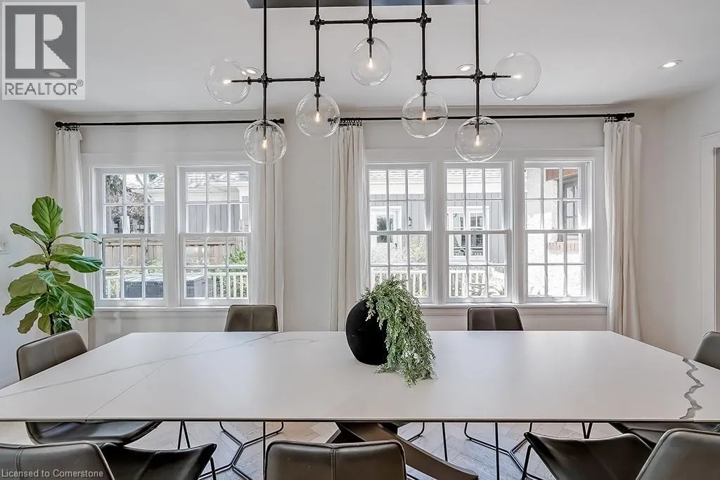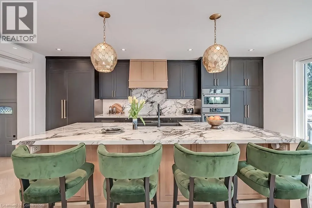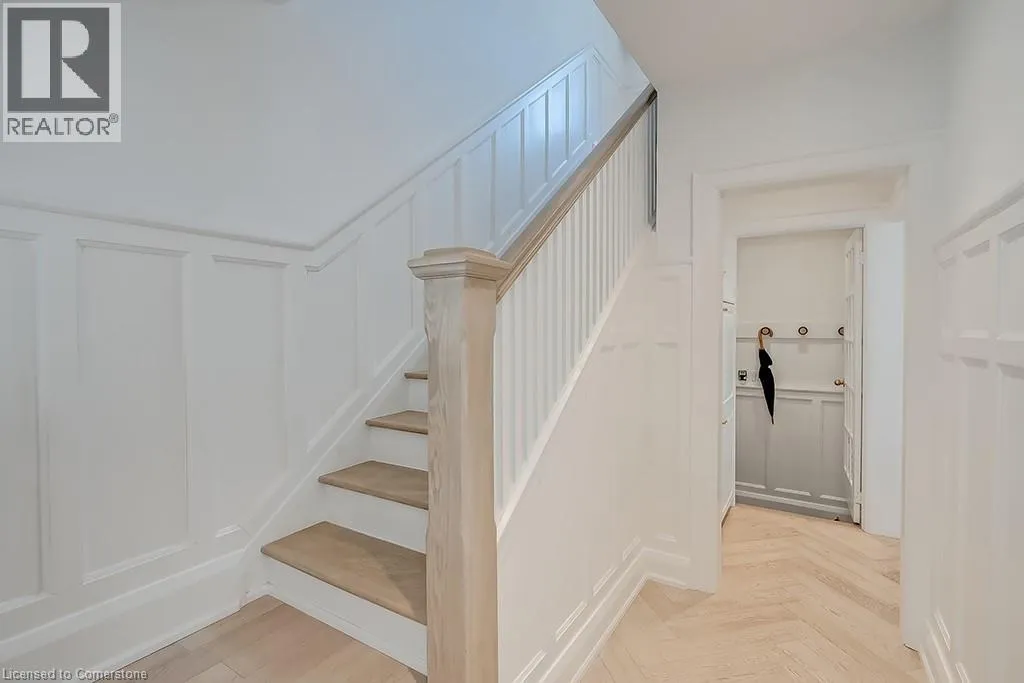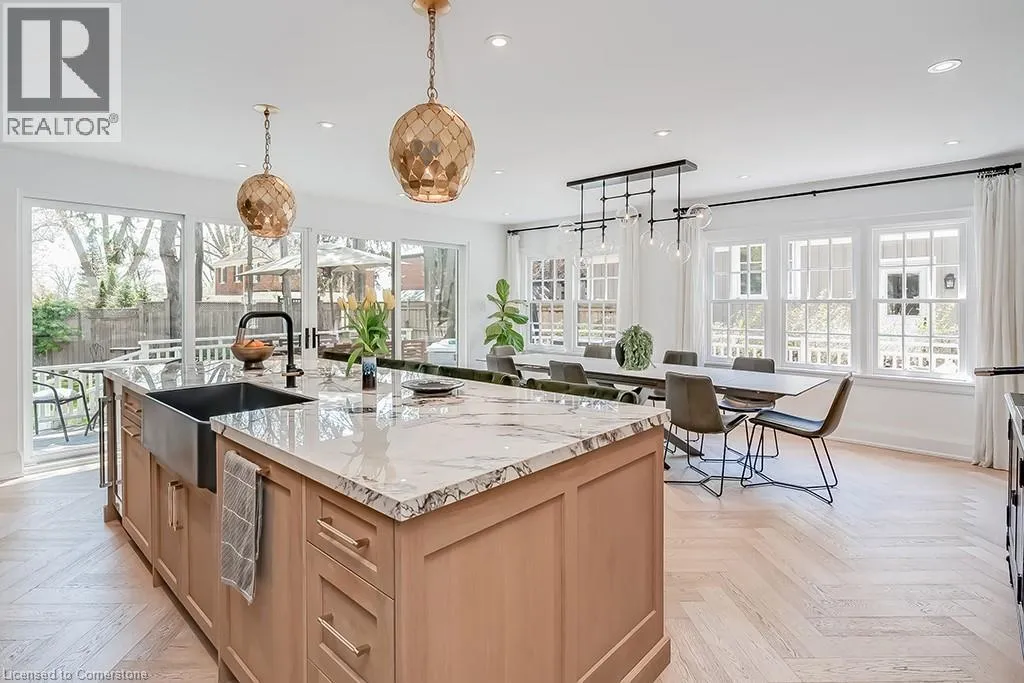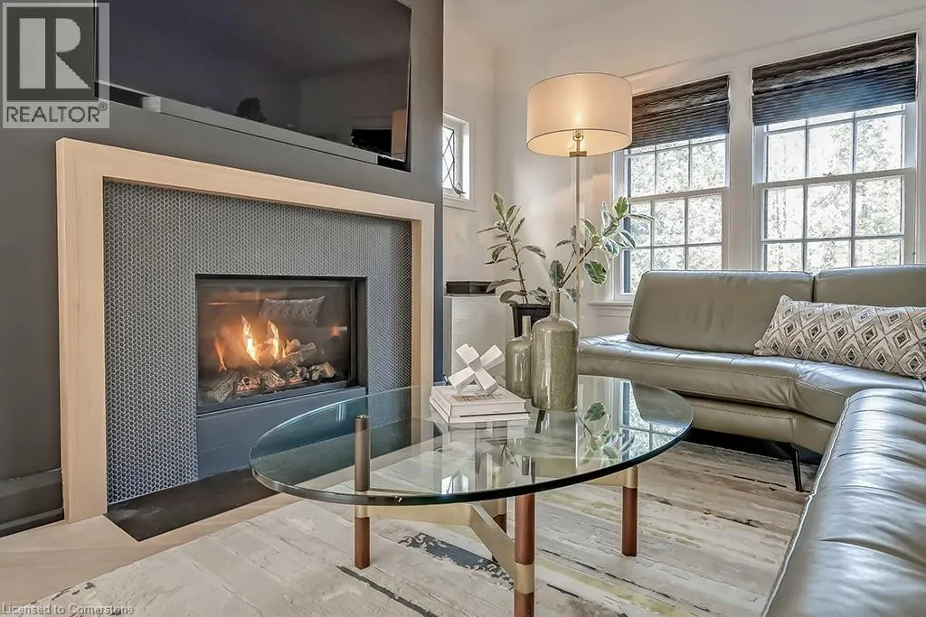 North Shore Blvd to Mohawk Road Welcome to this beautifully renovated 4-bedroom, 2.5-bath home offering over 3400 sq ft of living space, set amongst majestic trees and nestled within the historic gates of Indian Point. The main level showcases heated floors and exquisite herringbone hardwood, flowing into a custom designer kitchen featuring a large island, wall ovens, paneled fridge and dishwasher, and striking light fixtures. Oversized sliding patio doors open wide to create seamless indoor-outdoor living. The cozy living room features a gas fireplace with a floor-to-ceiling surround and inset for your TV. The second floor includes three generous bedrooms with walk in closets, hardwood throughout and a stunning updated main bath with heated floors. The third level offers a private bedroom retreat with a den area and walk-in closetâideal for guests or a home office. The finished lower level has a spacious recreation room, 3-piece bath, and ample storage. A double garage provides convenience, while the prime location offers quick access to Spencer Smith Park, major highways, downtown Burlington, and its vibrant shops and restaurants. This home combines luxury, location, and lifestyle! (id:27476)