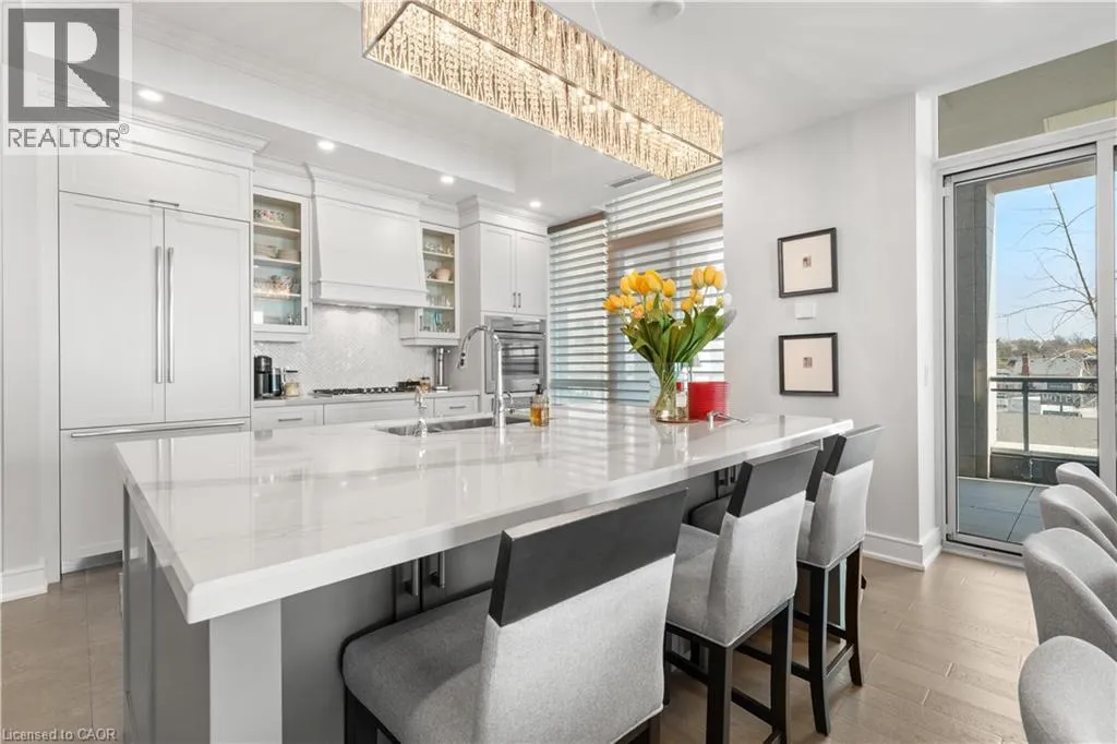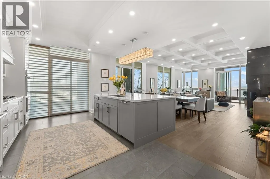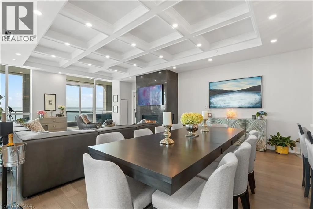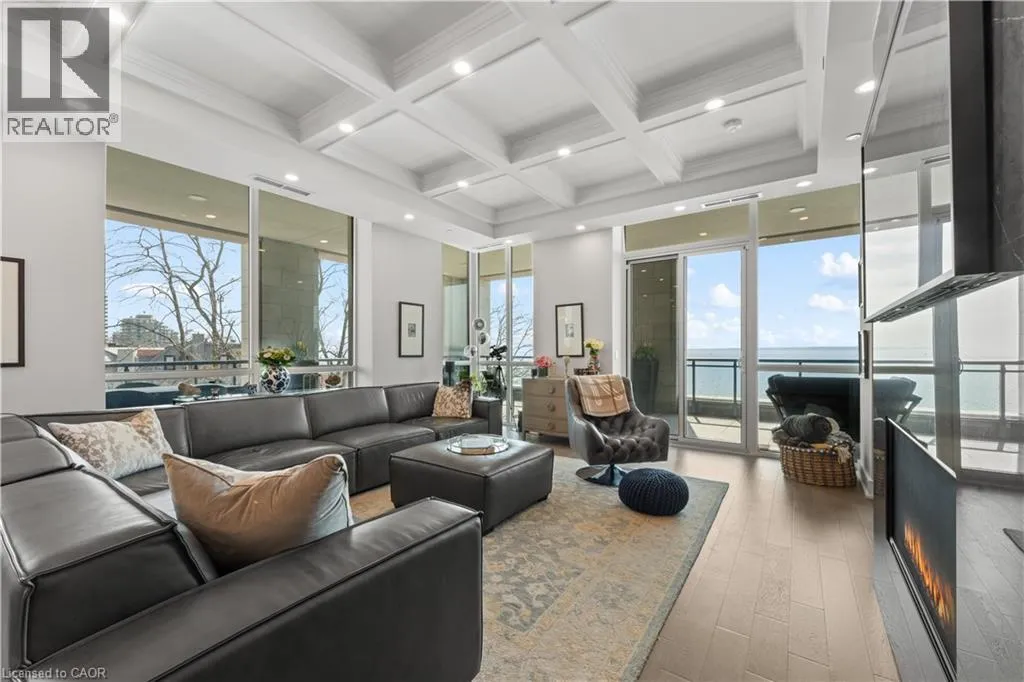 South on Brant St then East on Lakeshore to 2060 Lakeshore Rd on the South side Where Water Meets Luxury Living! This spectacular waterfront condominium offers three bedrooms, three bathrooms, and three parking spaces. Coffered ceilings, state-of-the-art appliances, beautiful chandeliers, a fireplace, and automatic window coverings are among the many upgrades throughout. The primary suite features his-and-hers closets and an oversized bathroom. Over 1,100 square feet of outdoor living space overlooking the lake, complete with a built-in barbecue, provides ample space for entertaining. Do not miss out on this exclusive, one-of-a-kind property! (id:27476)