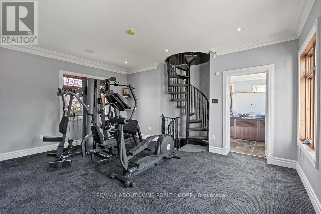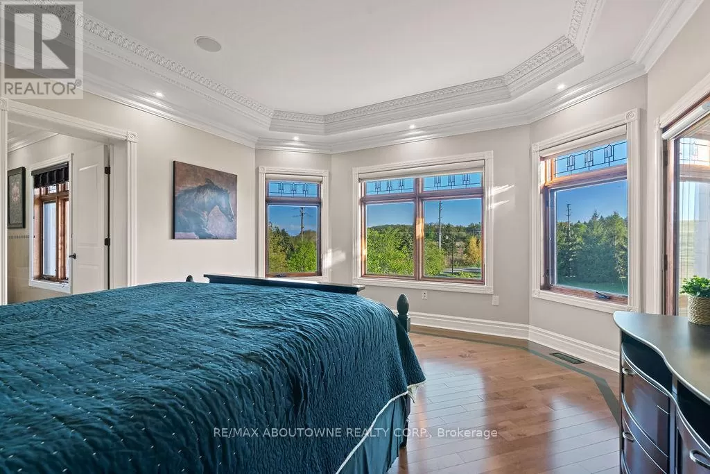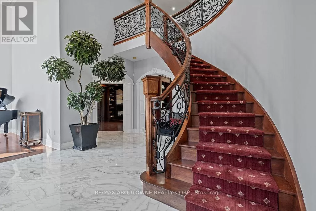 Cross Streets: Guelph Line / 2 Side Rd. ** Directions: Guelph Line / 2 Side Road. Experience Elevated Living at this Spectacular North Burlington Masterpiece in an Exclusive Enclave of Prestigious Estates. Set on a serene 2.5-acre lot, this luxurious home offers approx. 8,700 SF of exquisitely finished living space, where sophistication meets comfort and innovation. Designed for discerning buyers, this 4-bedroom, 7-bathroom residence delivers the ultimate lifestyle. Gourmet custom kitchen by Gravelle, with extensive solid wood cabinetry, granite counters, hidden doors to large pantry and high-end SS appliances. The walk-out basement is a next-level entertainment hub with Star Wars Sci-Fi theme. Featuring a cutting-edge games room, a dedicated home theatre with immersive 7.1 Dolby surround sound, 12' screen and starlight ceiling. Including flexible space that could easily serve as a 5th bedroom, complete with generous storage. Step outside to a peaceful retreat gather around the stone fire pit or take a scenic stroll along the nearby Bruce Trail. Despite the private, nature-filled setting, you're only minutes from the schools and amenities of Burlington, blending secluded luxury with urban convenience. This remarkable home defines upscale living. Whether you're hosting grand celebrations or enjoying quiet moments, this is where modern luxury meets timeless tranquility. Please click on more information for all luxury features and all inclusions and click on more photos for floorplans. 10+++ (id:27476)