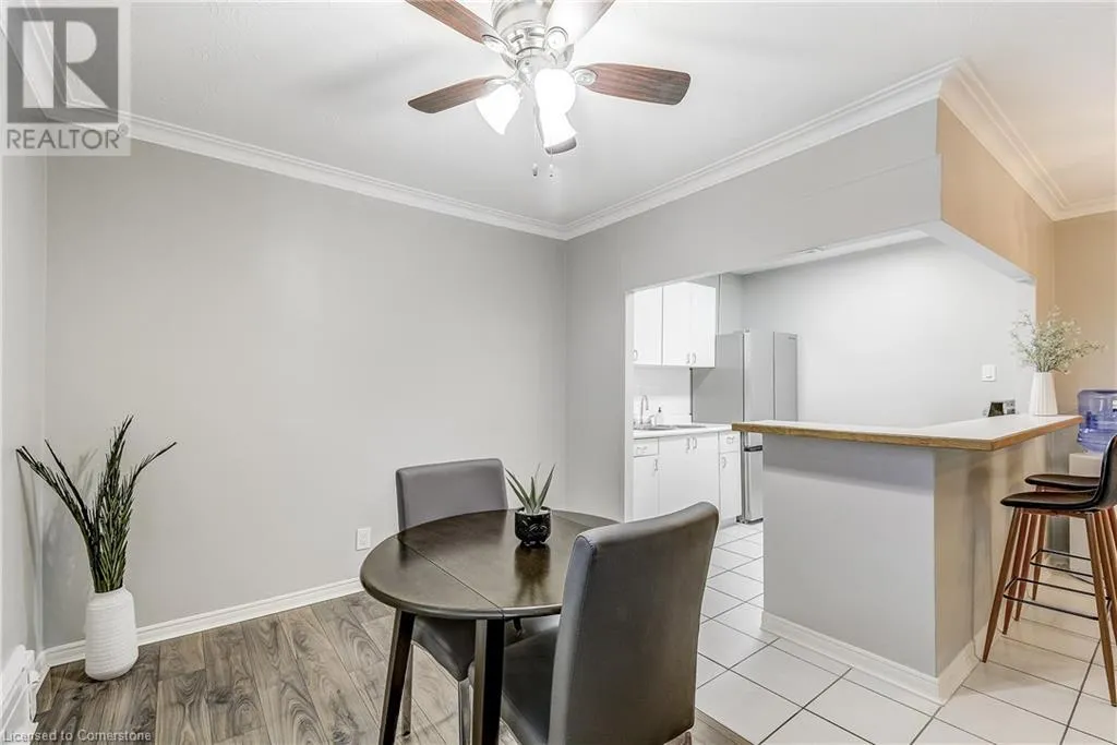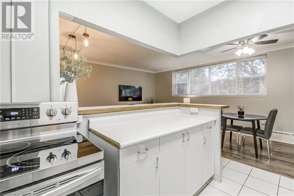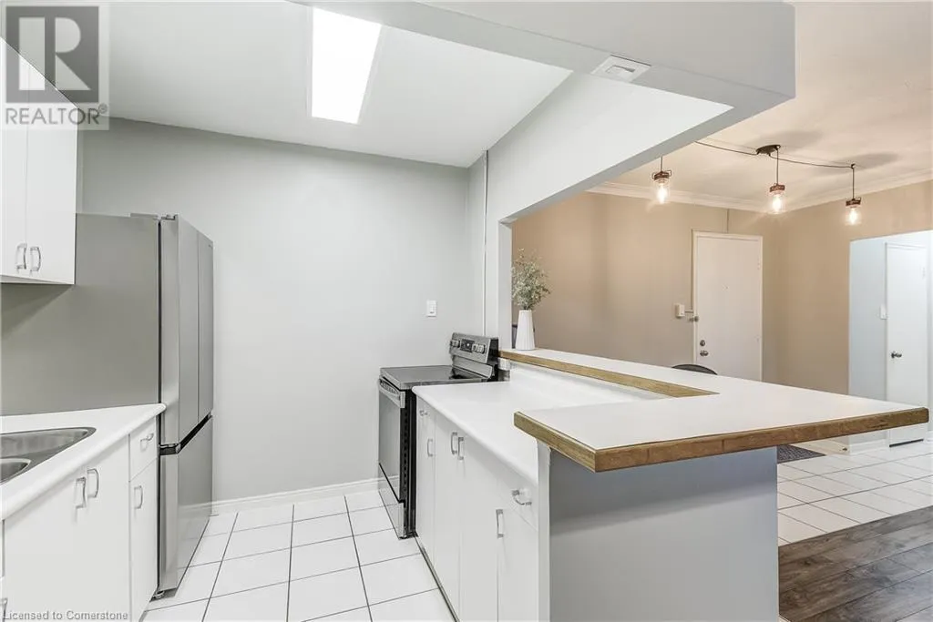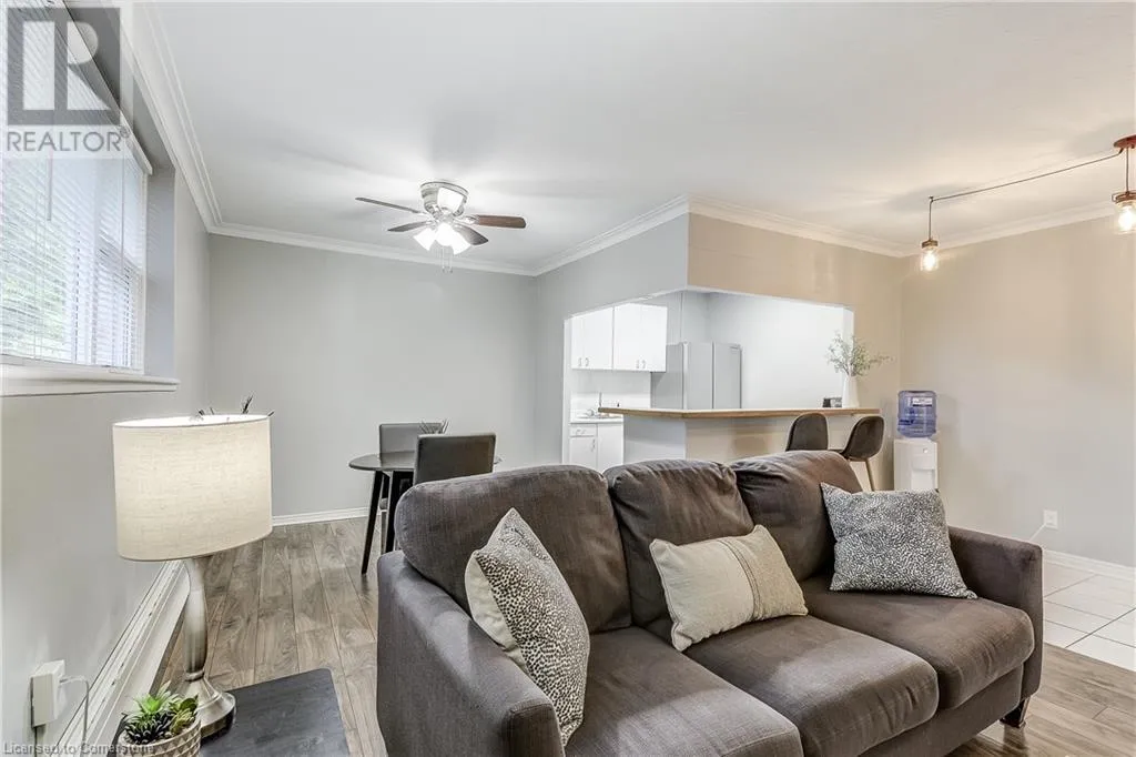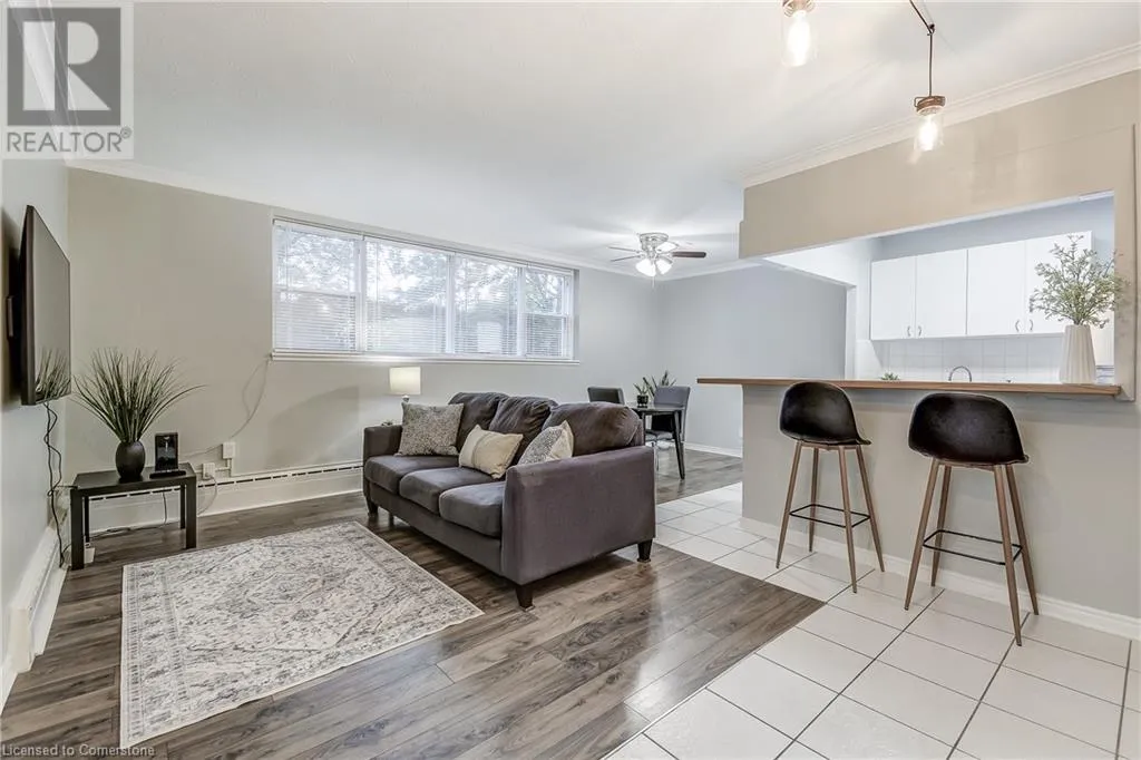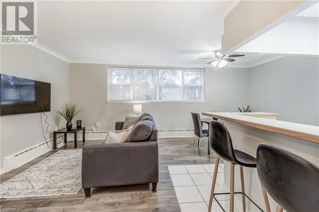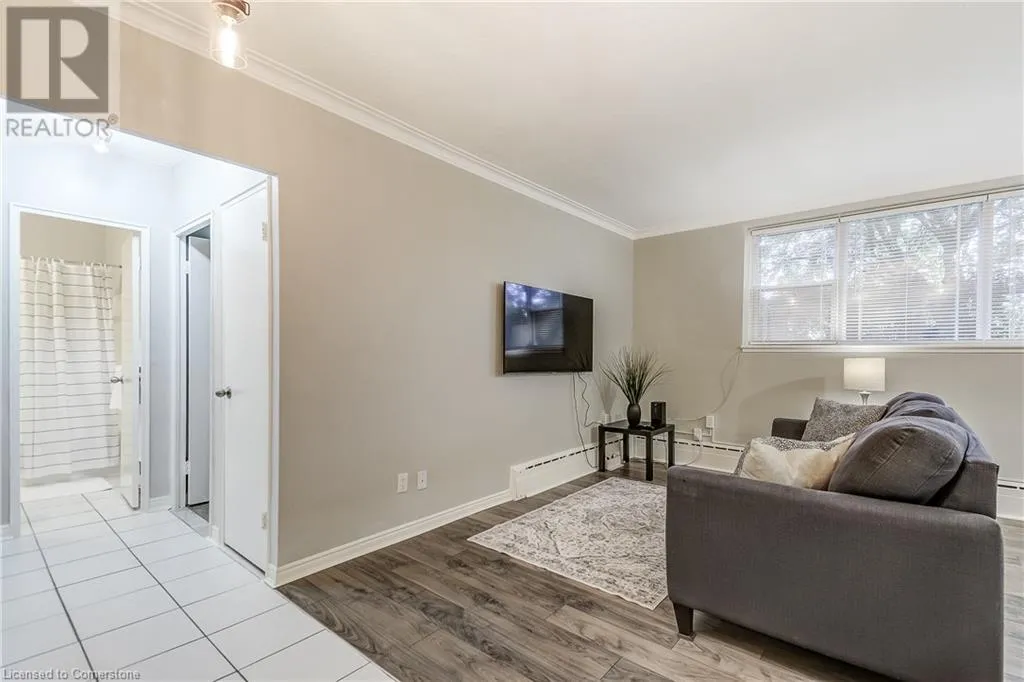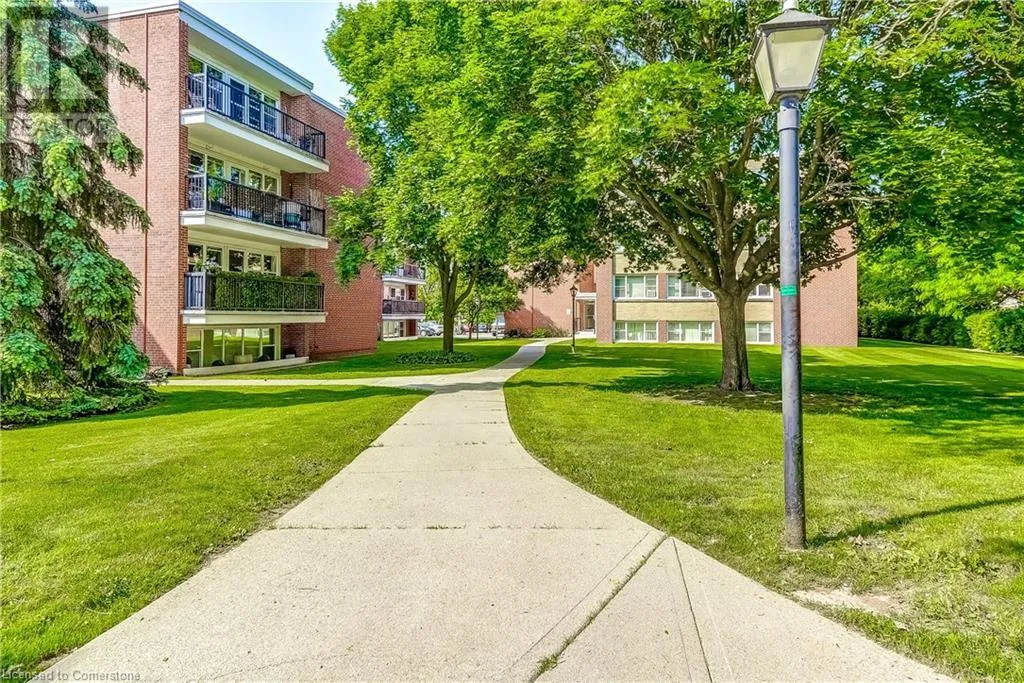 brant/ blairholm/courtland Tucked away in the heart of South Burlington, this quiet low-rise condo is truly a hidden gem. Situated on a quiet and tree lined residential street, it's an opportunity for affordable living in one of Burlingtonâs most desirable neighbourhoods. Whether you're a first-time buyer or looking to downsize, this spacious 1 bed, 1 bath unit offers bright, open living and just a few minutes from downtown Burlington. Newly renovated with brand new appliances, new large 55 TV (included), new flooring, this carpet free home is filled with natural light. This condo is move in ready! Walk to schools, shops, restaurants, Spencer Smith Park, and the Lakeshore â everything you need is within reach. Plus, you're just a short walk to the GO station and minutes from the highway for added convenience. Condo fees cover heat, water, exterior upkeep, building insurance, parking, and a lockerâconveniently located just across the hall. Exclusive parking space - #56. Discover why this is one of Burlingtonâs best-kept secrets. (id:27476)