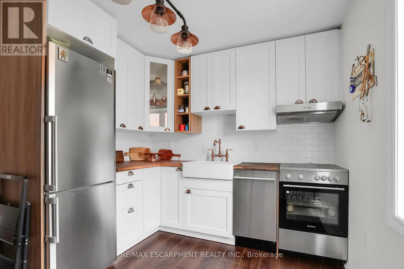 Cross Streets: Nelson St/Lakeshore Rd. ** Directions: From QEW, take Exit 97 toward North Shore Blvd, Use right lane to turn right on North Shore Blvd E, Continue onto Lakeshore Rd, Left onto Nelson Ave. URBAN ELEGANCE BY THE LAKE ... Welcome to 37-1347 Lakeshore Road, a meticulously reimagined 2-bedroom, 1-bath co-operative apartment nestled in the heart of vibrant downtown Burlington. With 832 sq ft of fully transformed living space, this unit blends modern functionality with vintage flair - directly across from Spencer Smith Park, the lakefront trail, and views of Lake Ontario. This home is not just renovated - its reborn. Taken down to the concrete, every inch has been carefully reconstructed, beginning with all-new drywall and a full electrical overhaul, ensuring safety and tech-readiness. New swing-out windows invite fresh lake breezes, while the dark wood-style flooring anchors the space in timeless warmth. The kitchen is a showstopper: burnished copper fixtures, chopping block countertops, and a classic white farm sink create an inviting space to cook and gather. Matching the aesthetic, the bathroom has been redone top to bottom in a striking 1949 film noirinspired palette, featuring full tiling in black and white and a vintage-style farm sink. Every detail speaks to thoughtful design - from the burnished bronze door handles, modern wainscotting, and floor trim, to the deep French-door closet offering ample storage. Appliances include premium, compact Blomberg German-made units, designed to fit seamlessly in a modern lifestyle. Finished with a black fire-rated front door and iconic Deco silver numbering, this unit marries history with contemporary flair. Steps to the lake, trails, restaurants, and with easy highway access, this is Burlington living at its besta rare gem for the discerning buyer who values style, quality, and location. Your Lakeside Lifestyle Starts Here. (id:27476)