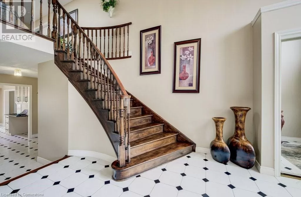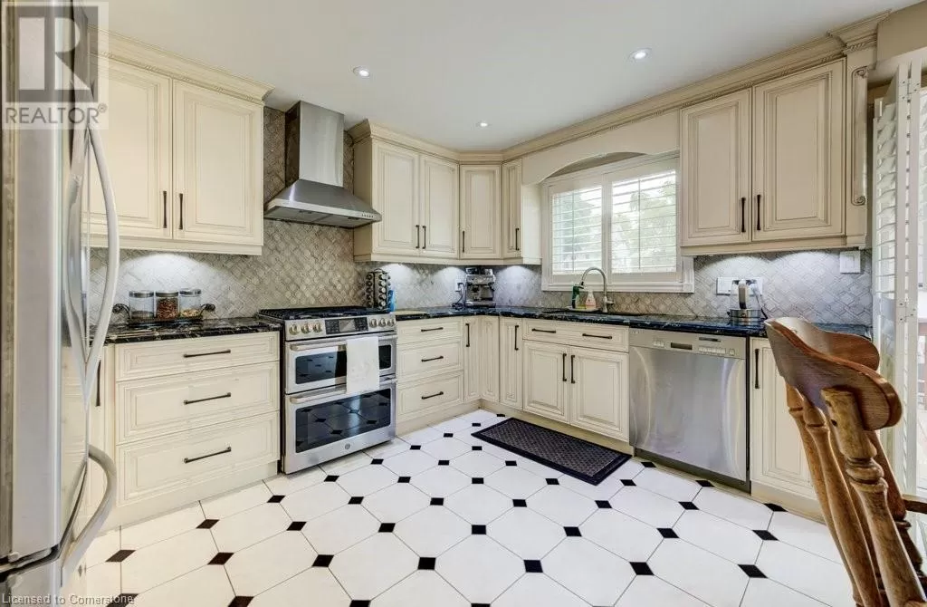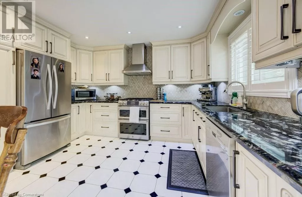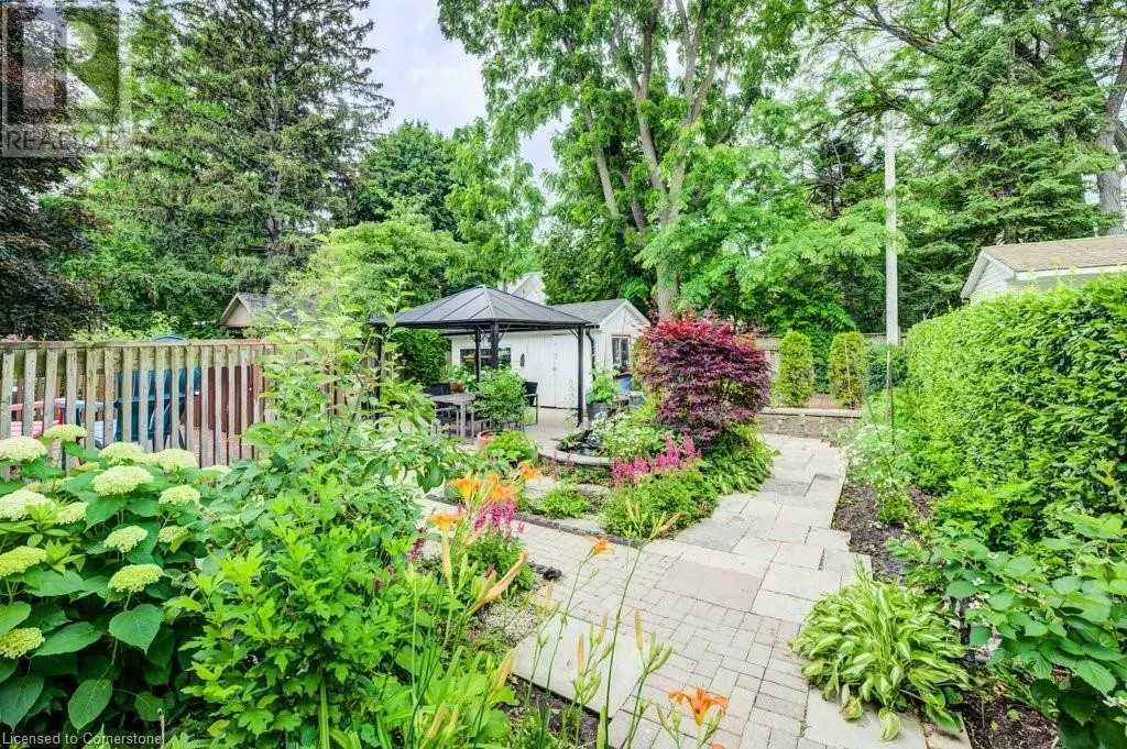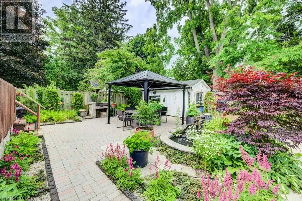 Plains Road to Grand View Ave. Welcome to 1056 Plains View Avenue â Elegance, Comfort & Nature in the Heart of Burlington! Tucked away on a quiet, tree-lined street just steps from the Royal Botanical Gardens, Burlington Bay, and some of the cityâs most scenic nature trails, this stunning 3 +2-bedroom, 4-bathroom home is a perfect blend of sophistication and serenity. As you arrive, you're greeted by a beautifully landscaped front yard and timeless brick exterior. Step inside to a grand double-door entrance and be wowed by the sweeping hardwood staircase and sun-filled foyer with soaring ceilings. The elegant main floor features multiple spacious living areas, ideal for both entertaining and everyday family life. The formal dining room boasts character with custom ceiling details and flows seamlessly into a chef-inspired kitchenâcomplete with granite countertops, premium appliances, classic cabinetry, and a stylish tile backsplash. Upstairs, you'll find 3 well-appointed bedrooms, including a primary suite with ensuite bath and ample closet space. The fully finished lower level offers versatile bonus space with a cozy fireplace, wet bar, office, and additional living areaâideal for guests, teens, or a media room. Step out back to your very own backyard retreatâa private, garden-loverâs paradise with a patio, gazebo, mature trees, and tranquil pond feature. Whether hosting summer gatherings or enjoying your morning coffee under the canopy of trees, this space is pure magic. (id:27476)